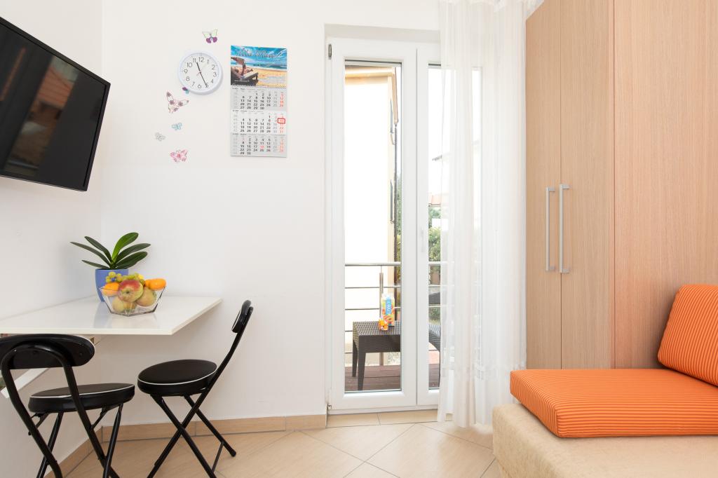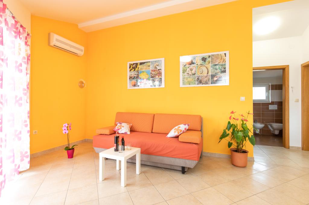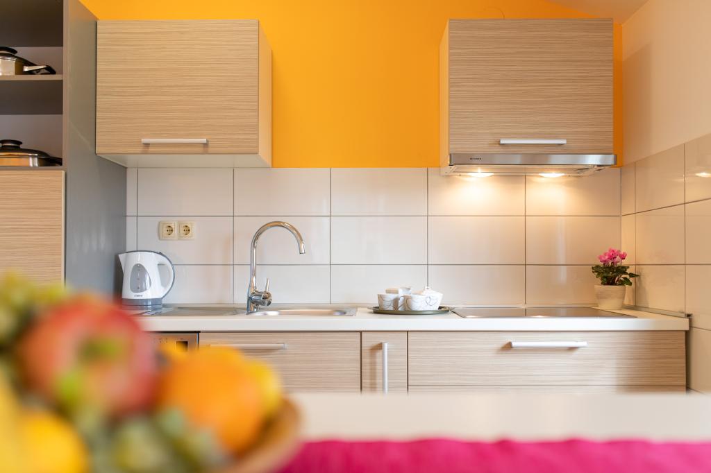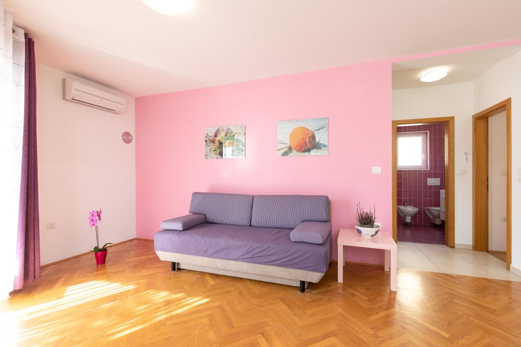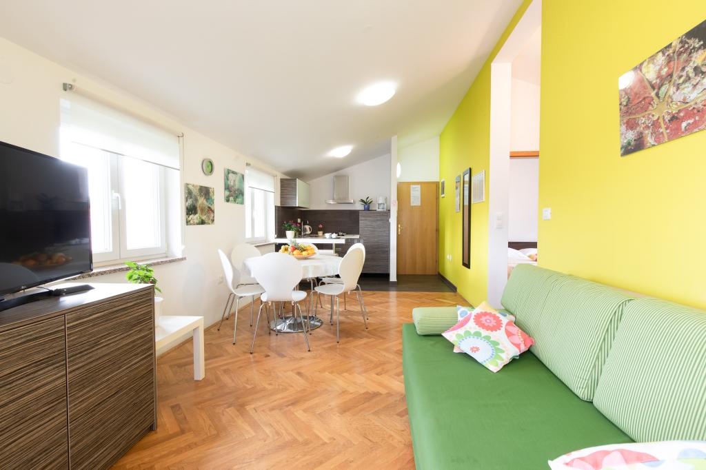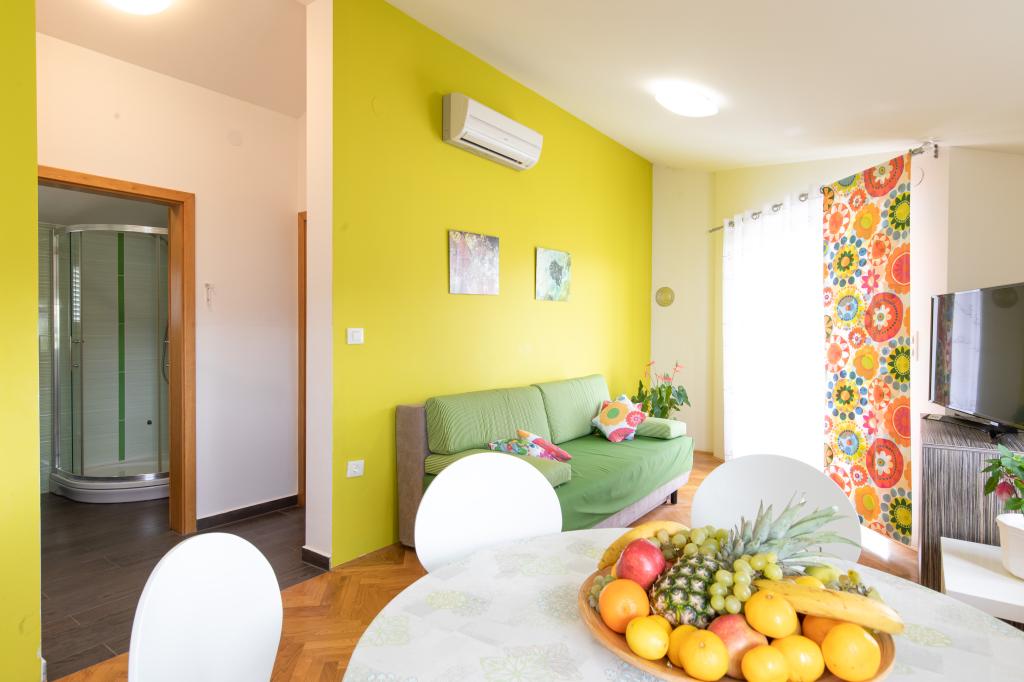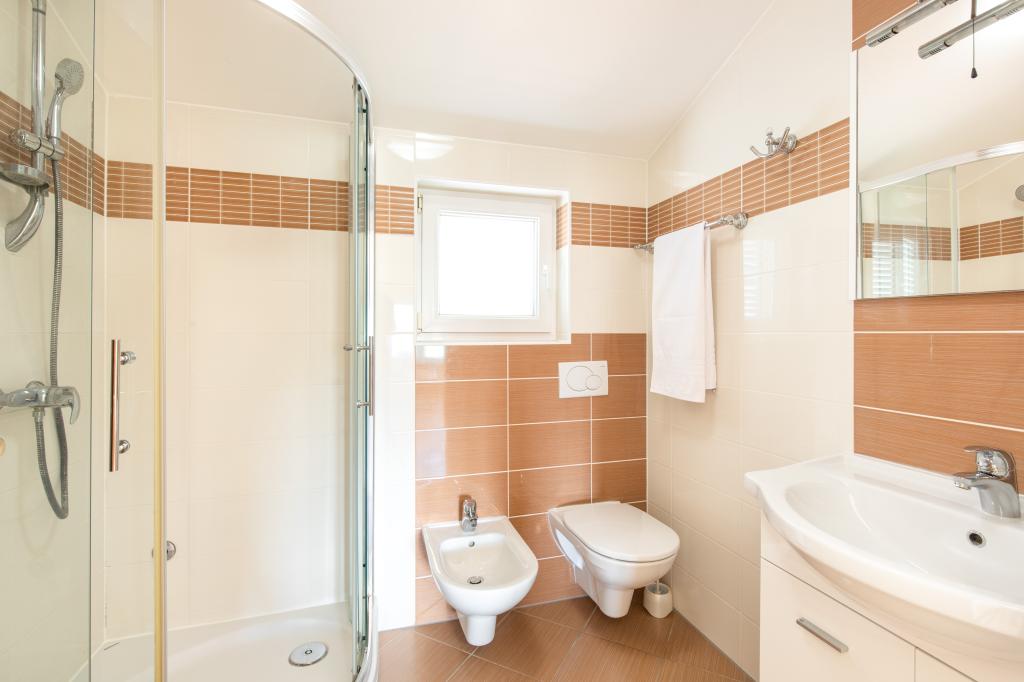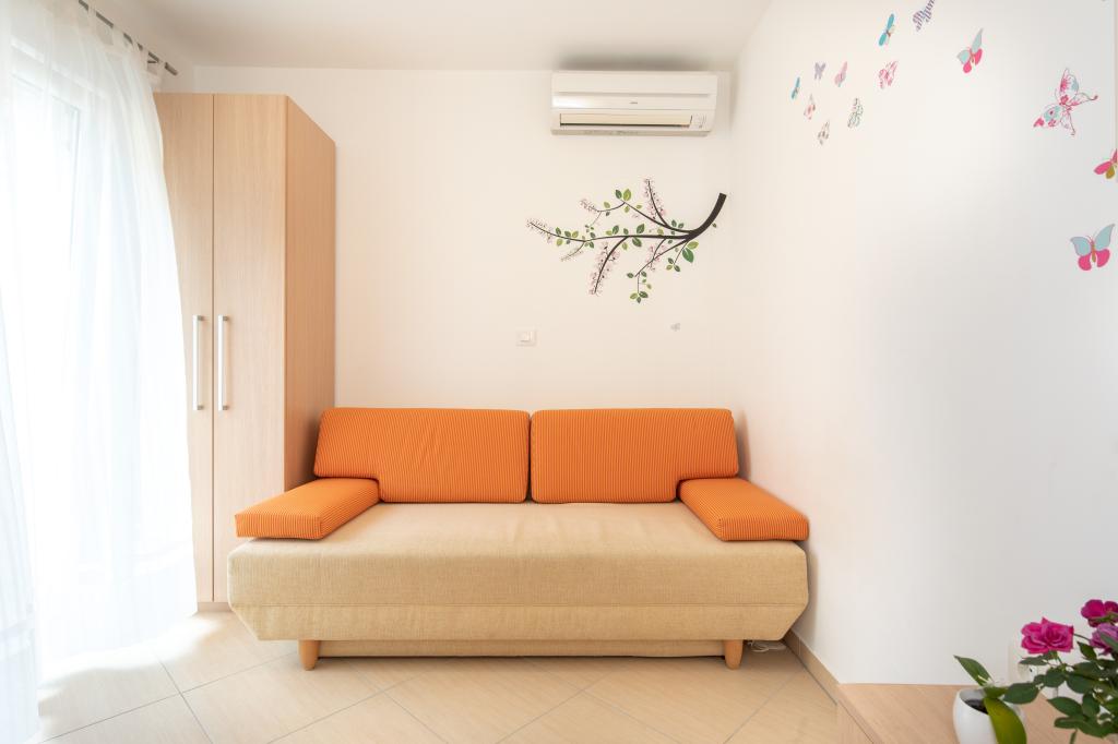Apartamentele VillaMare sunt situate într-o zonă liniștită din Baška, la 5-7 minute de mers pe jos de o frumoasă plajă de nisip, precum și de centrul însuși cu toate facilitățile oferite de un oraș turistic. Sunt 5 apartamente in categoria 4****: 4 x A/4+2 pentru max 4-6 persoane, 1 x A/2+2 pentru max 2-4 persoane si o garsoniera frumoasa pentru max 1-2 persoane . Toate apartamentele sunt dotate cu aer condiționat și utilate modern, WiFi gratuit, TV prin satelit, 1 loc de parcare per apartament; în partea de curte, o zonă de grădină cu grătar, foișor din lemn și loc de joacă pentru copii este disponibilă tuturor oaspeților. La cerere sunt disponibile un pătuț, scaun înalt/masă de hrănire, mașină de spălat. Toate apartamentele din extensie au o terasă confortabilă unde vă puteți relaxa complet și vă puteți bucura de priveliștea frumoasă la Baška și muntele care o înconjoară, în timp ce apartamentul de la parter are o terasă suplimentară extinsă cu șezlonguri și acces direct la grădina frumoasă ( ...si smochini :-)
