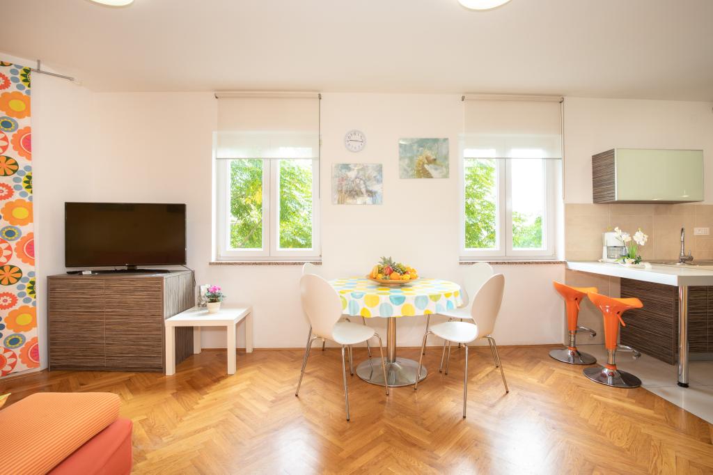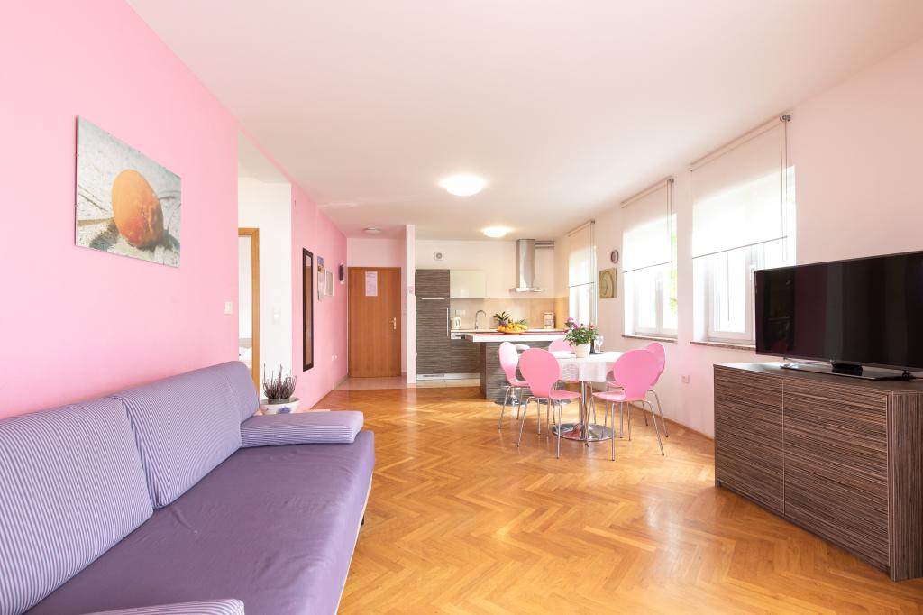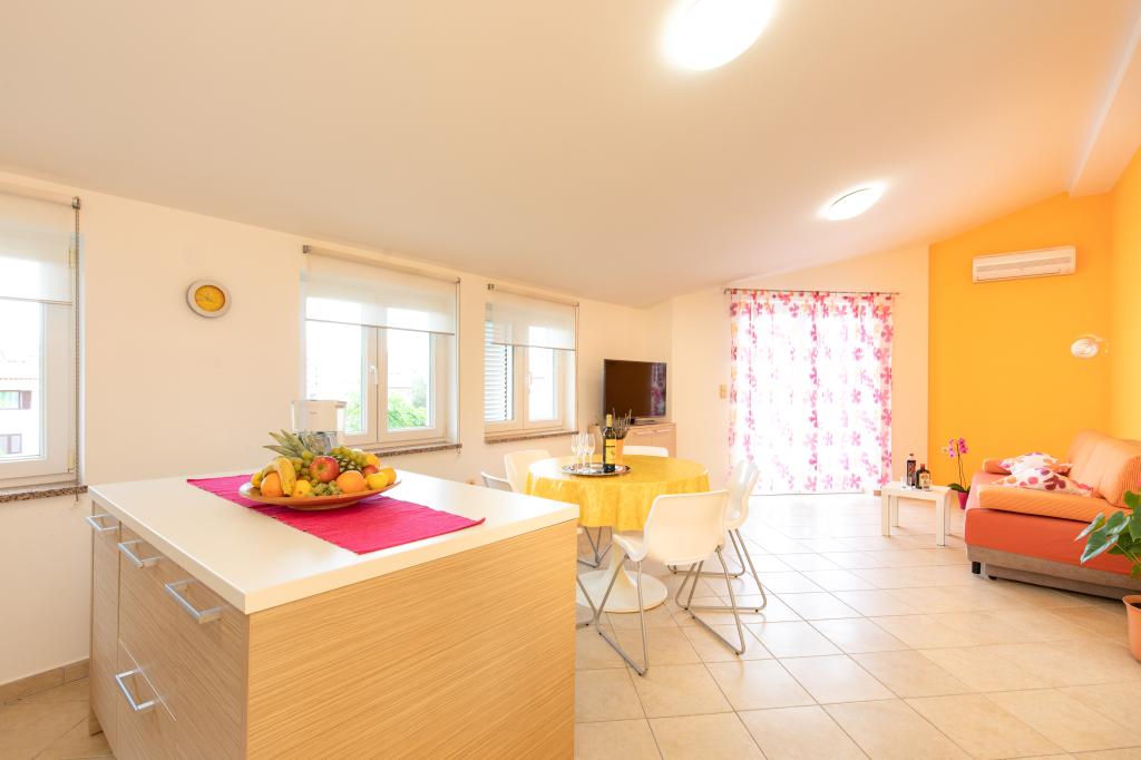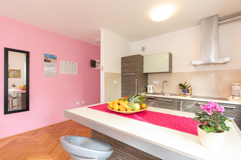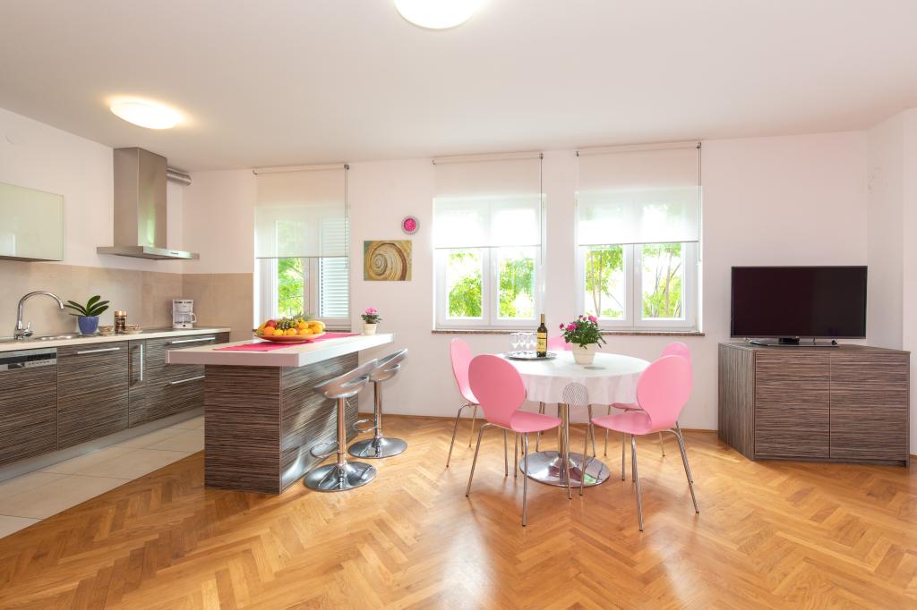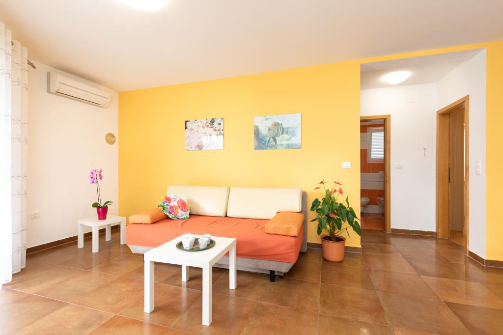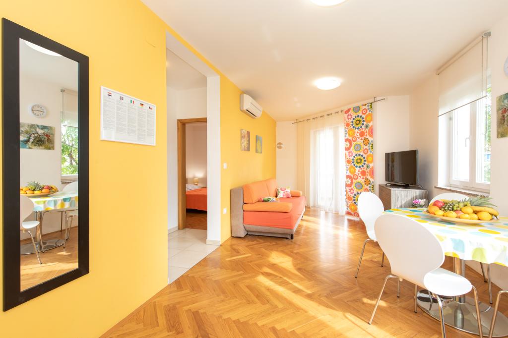 Apartamentele VillaMare sunt situate într-o zonă liniștită din Baška, la 5-7 minute de mers pe jos de o frumoasă plajă de nisip, precum și de centrul însuși cu toate facilitățile oferite de un oraș turistic. Sunt 5 apartamente in categoria 4****: 4 x A/4+2 pentru max 4-6 persoane, 1 x A/2+2 pentru max 2-4 persoane si o garsoniera frumoasa pentru max 1-2 persoane . Toate apartamentele sunt dotate cu aer condiționat și utilate modern, WiFi gratuit, TV prin satelit, 1 loc de parcare per apartament; în partea de curte, o zonă de grădină cu grătar, foișor din lemn și loc de joacă pentru copii este disponibilă tuturor oaspeților. La cerere sunt disponibile un pătuț, scaun înalt/masă de hrănire, mașină de spălat. Toate apartamentele din extensie au o terasă confortabilă unde vă puteți relaxa complet și vă puteți bucura de priveliștea frumoasă la Baška și muntele care o înconjoară, în timp ce apartamentul de la parter are o terasă suplimentară extinsă cu șezlonguri și acces direct la grădina frumoasă ( ...si smochini :-)