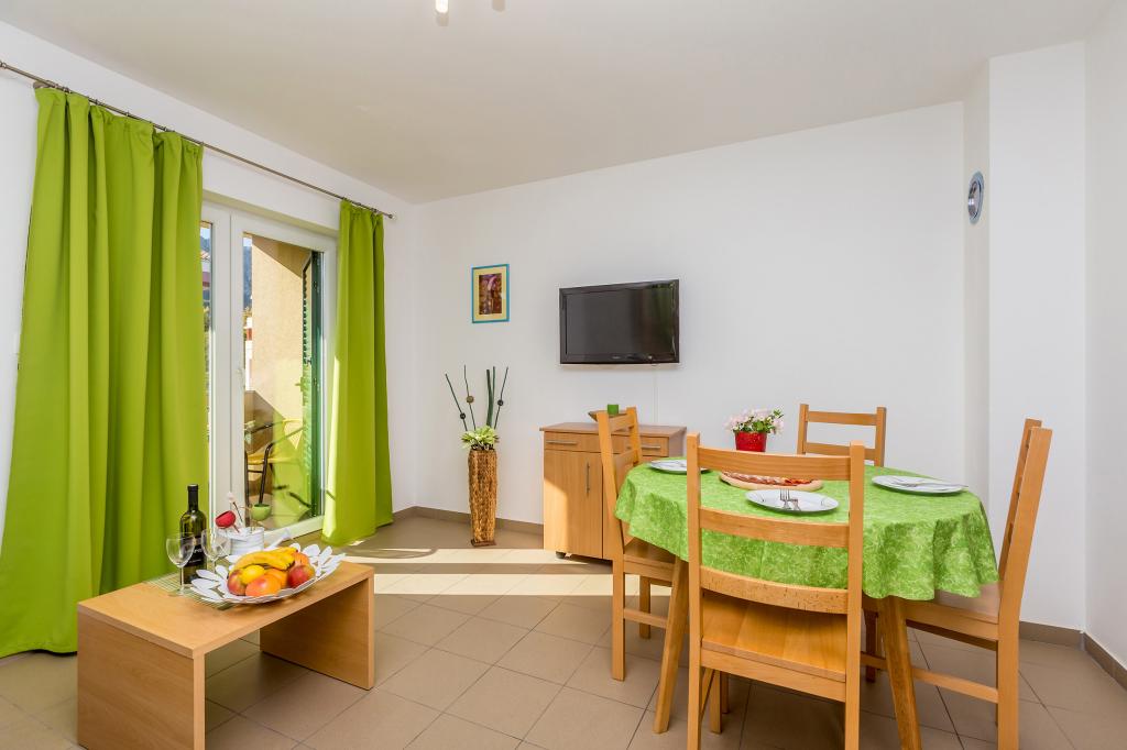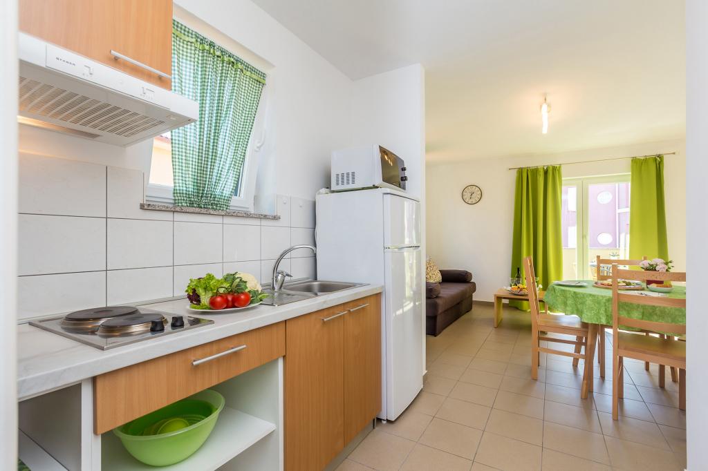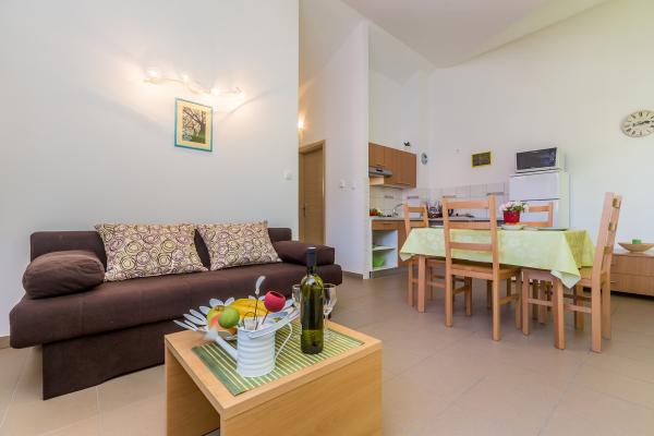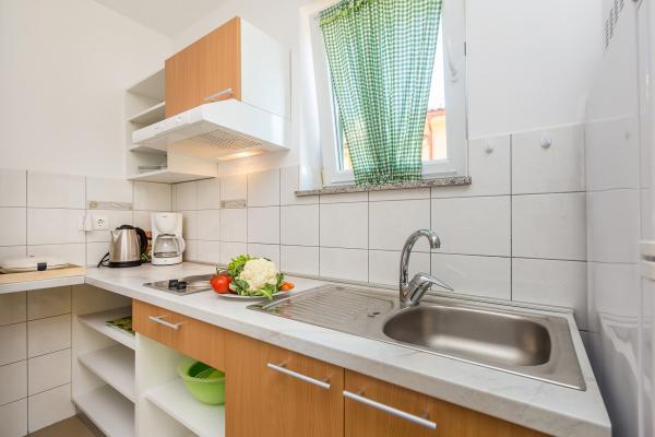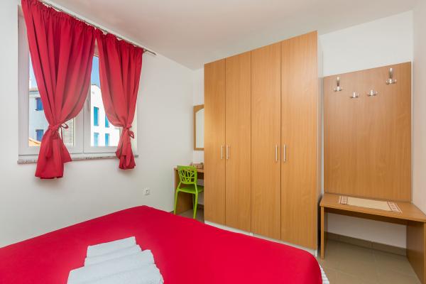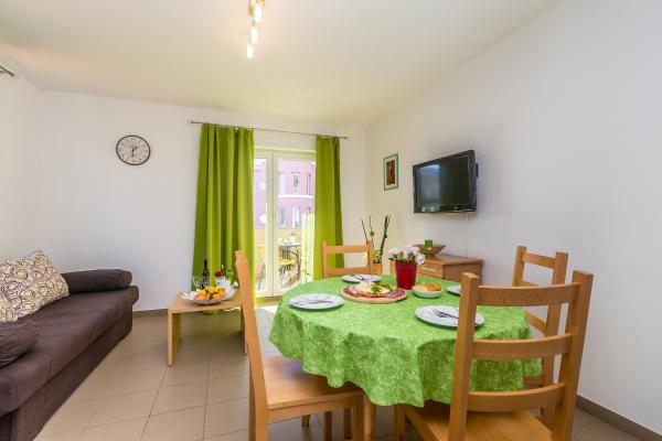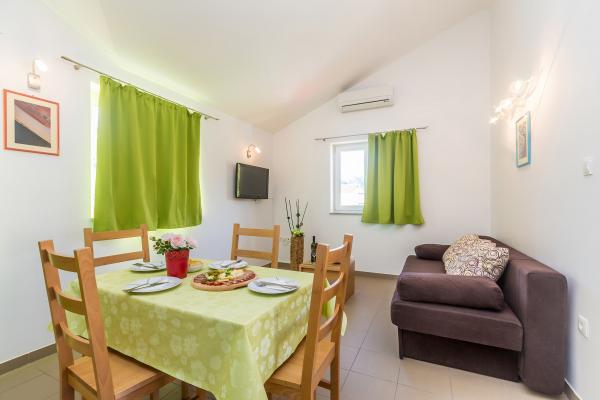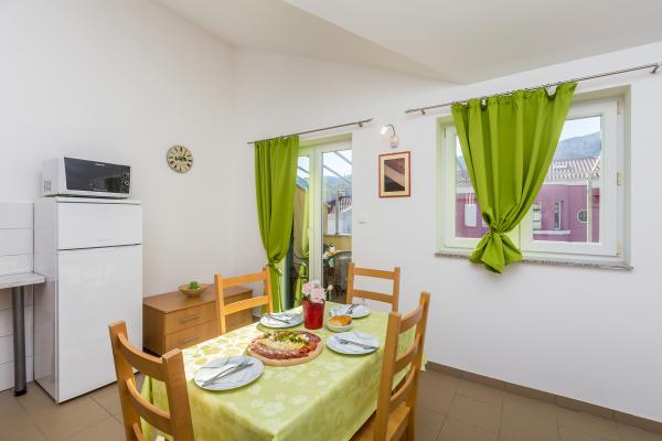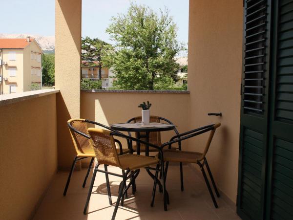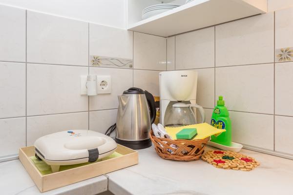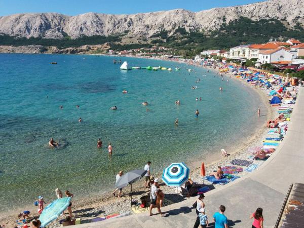 Villa Mirica 4 stele - dispune de 4 apartamente moderne, complet utilate și contemporane (2 și 2 paturi). Suprafață: 40 m² și terasă privată acoperită de 10 m², într-o zonă liniștită din Baška, cu vedere la grădină și la o stradă liniștită. Facilitatea este situată la 5 minute de mers pe jos de plaja Vela și de toate facilitățile. Frumoasele apartamente Mirica au un dormitor dublu, baie cu duș, uscător de păr, mașină de spălat și detergent, bucătărie cu mașină de spălat vase, frigider și uscător de păr, living cu canapea extensibilă și saltea de 5 cm pentru confort, masă și fier de călcat, prăjitor de pâine, fierbător, cuptor cu microunde, friteuză cu aer cald. Un apartament poate găzdui până la 4 oaspeți. Apartamentele sunt modern utilate, cu Wi-Fi gratuit, parcare gratuită acoperită cu panouri solare, aer condiționat, terasă privată, TV, satelit, seif, lenjerie de pat, prosoape. Toate cele 4 apartamente ale noastre sunt identice și echipate identic. Există o stație de încărcare gratuită pentru vehicule electrice în parcare - la cerere! Există un grătar în grădină pentru uzul oaspeților. Un pătuț și un scaun înalt sunt disponibile la cerere.