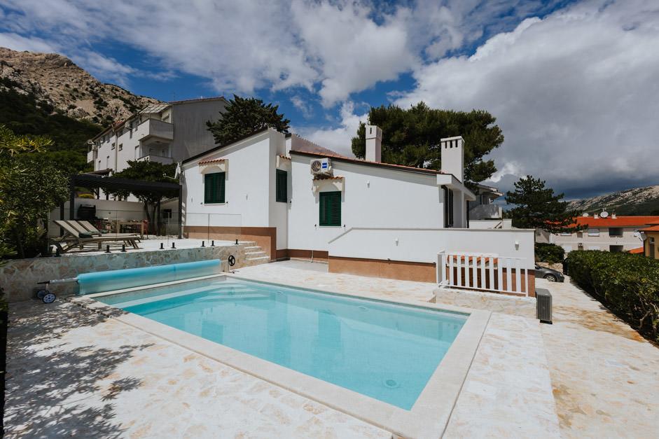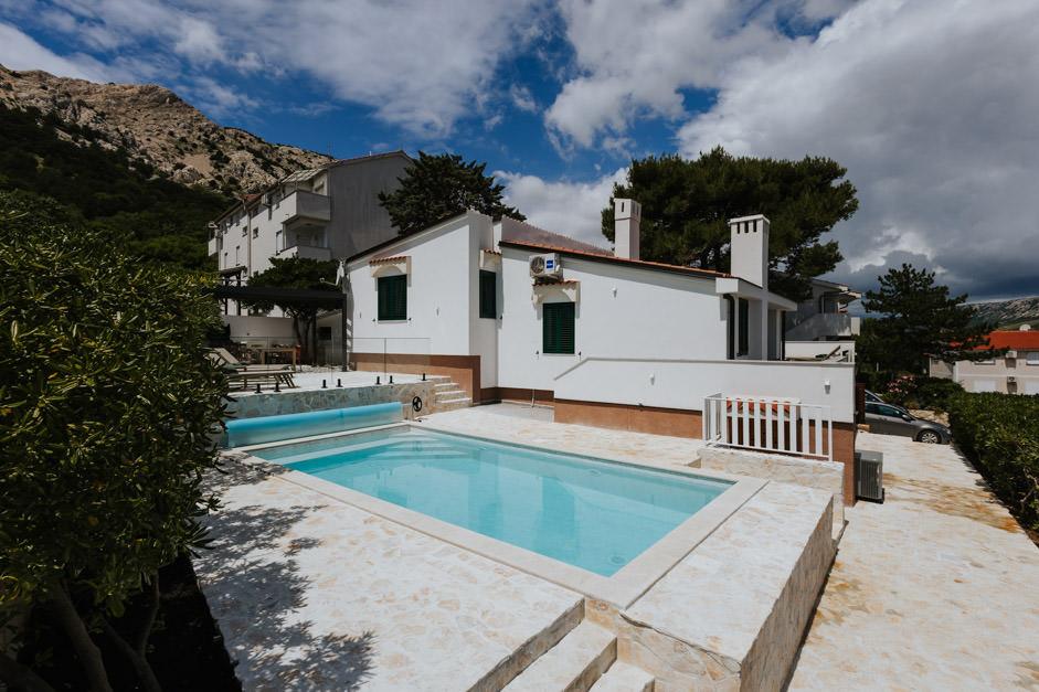 Vila noastră recent renovată Zlata este situată în Baška, perla turistică a golfului ascuns al insulei Krk. Casa este la 400 m de centrul orașului și la 200 m de mare, ale cărei valuri lovesc plaja cu pietriș lungă de 1800 m. Baška este un loc cu un trecut bogat și moștenire culturală, iar nu departe, în Jurandvor, se află faimosul Bašćanska ploča, unul dintre cele mai vechi monumente scrise în limba croată. Vila Zlata ofera cazare pentru 4+2 persoane, este si pet friendly, asa ca va fi bucuros sa va gazduiasca si animalul dvs. de companie. Este complet decorată și utilată și este situată într-un mediu intim al unei păduri de pini unde vă veți putea bucura de piscina privată încălzită recent construită. Poți simți plăcerea deosebită a vacanței stând cu grătarul în aer liber și foișorul, în timp ce cei mai mici se pot distra în siguranța locului de joacă pentru copii. Pentru finalul ideal al unei zile de vară, relaxează-te pe două terase cu miros de pin și priveliște spre golful încântător unde albastrul blând al mării și al cerului se îmbină cu asprimea uriașului Velebit din depărtare.
