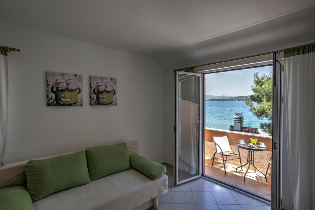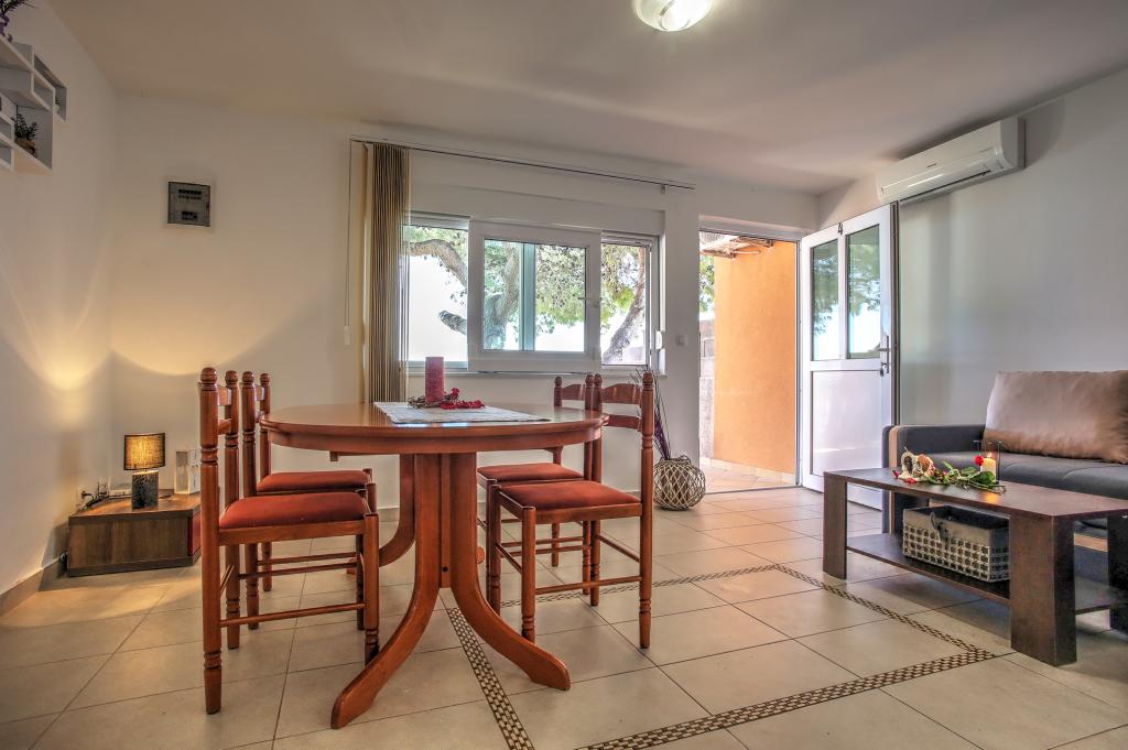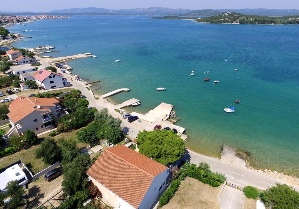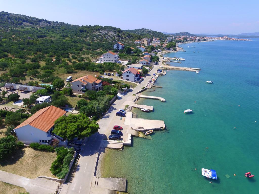 Apartamentele Ena sunt situate lângă mare în Obala Petra Krešimira IV. Locația este liniștită și cu trafic redus, ideală pentru înot, odihnă și recreere. În fața casei există un mal al apei unde puteți înota și vă puteți bronza, iar barca vă poate acosta la balizele din fața casei. Lângă casă se află o plajă și o tabără numită Plitka vala. Centrul orașului Betina este la aproximativ 1,2 km distanță. Există o parcare mare în fața casei.