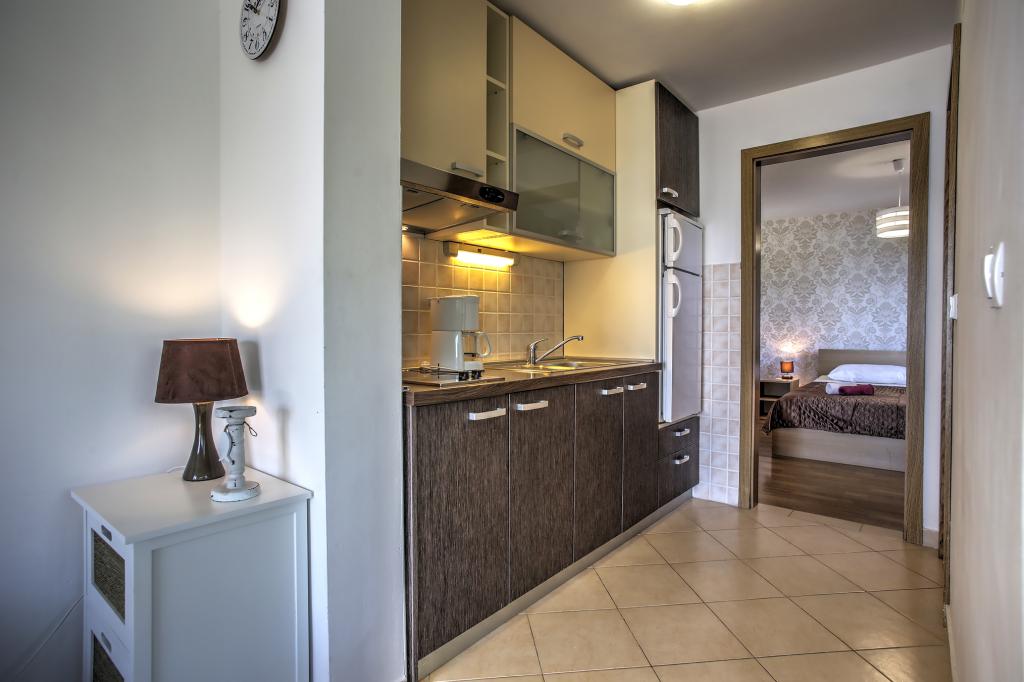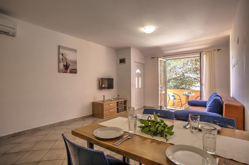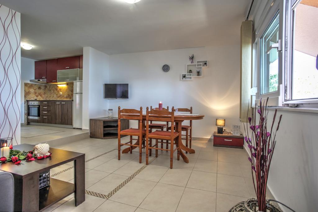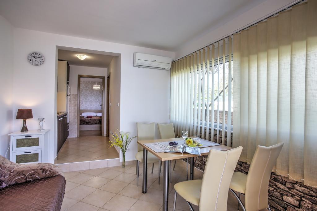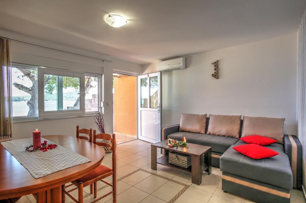 Apartamentele Ena sunt situate lângă mare în Obala Petra Krešimira IV. Locația este liniștită și cu trafic redus, ideală pentru înot, odihnă și recreere. În fața casei există un mal al apei unde puteți înota și vă puteți bronza, iar barca vă poate acosta la balizele din fața casei. Lângă casă se află o plajă și o tabără numită Plitka vala. Centrul orașului Betina este la aproximativ 1,2 km distanță. Există o parcare mare în fața casei.