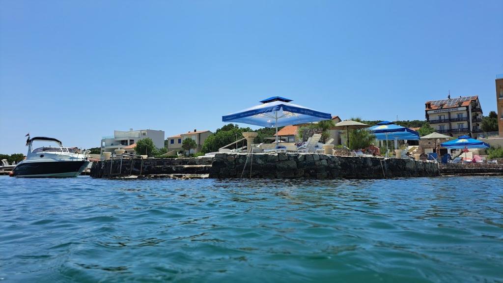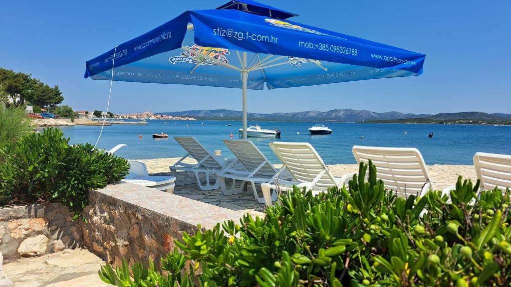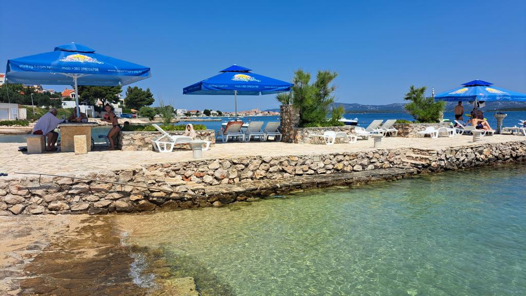 Taxa de rezidenta este inclusa in pret.Plajă bine întreținută și facilități pentru o experiență completă! Nu trebuie să căutați un loc ideal pentru înot - plaja bine întreținută este chiar în fața casei noastre! Plaja este pavată cu piatră naturală, iar în mare există nisip fin, care permite intrarea ușoară și sigură în apă. Pe plajă, puteți folosi gratuit șezlonguri și umbrele mari pentru a vă relaxa lângă mare. Există un garaj mare cu toaletă lângă plajă, unde vă puteți lăsa echipamentul, cum ar fi SUP, caiace, plăci de windsurfing, bărci gonflabile... Pentru oaspeții care vin cu o barcă (până la 7 m), oferim posibilitatea de a lansa barca direct pe plaja noastră. Puteți acosta barca de-a lungul țărmului sau pe o geamandură, în timp ce există și o parcare mare pentru o mașină și o remorcă în curtea împrejmuită. În grădina noastră verde, vă așteaptă un grătar mare cu echipament complet pentru pregătirea unor mese delicioase, care vă stă la dispoziție. În plus, o băutură de bun venit vă așteaptă la sosire.