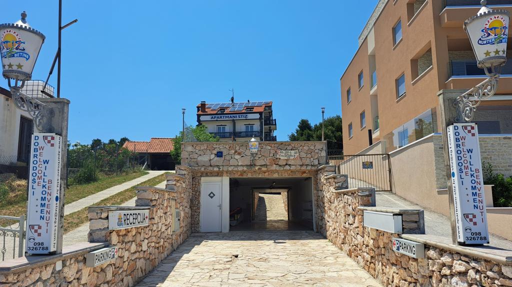 Casa de apartamente ŠTIZ-BETINA – Vacanța ta ideală la mare! Situată direct pe coasta din Betina, pe insula Murter, casa de apartamente ŠTIZ-BETINA oferă cadrul perfect pentru o vacanță relaxantă. Plaja noastră cu piatră bine întreținută este dotată cu șezlonguri și umbrele mari pe care le puteți folosi gratuit. Veniți cu barca? Oferim o rampă de lansare și un loc de acostare pentru bărci de până la 7 metri lungime, cu parcare securizată pentru o remorcă în curtea împrejmuită. Locație: Casa este situată la 1,5 km de centrul orașului Betina, unde veți găsi centrul vechi al orașului, magazine, cafenele, restaurante și plaja principală a orașului. Insula Murter este ușor accesibilă cu mașina, deoarece este legată de continent printr-un pod mobil, care se ridică de două ori pe zi. Oferim: șase apartamente (2+2) și patru studiouri (2+1). Fiecare unitate de cazare include: o bucătărie complet utilată, aer condiționat, Wi-Fi gratuit, televizor cu ecran plat HDTV prin satelit, toaletă cu duș, lenjerie de pat și prosoape. Toate apartamentele și studiourile au o vedere frumoasă la mare și la grădină.