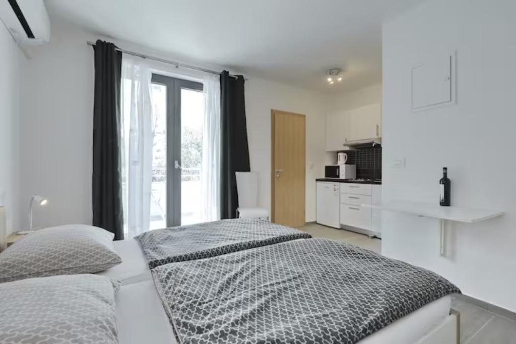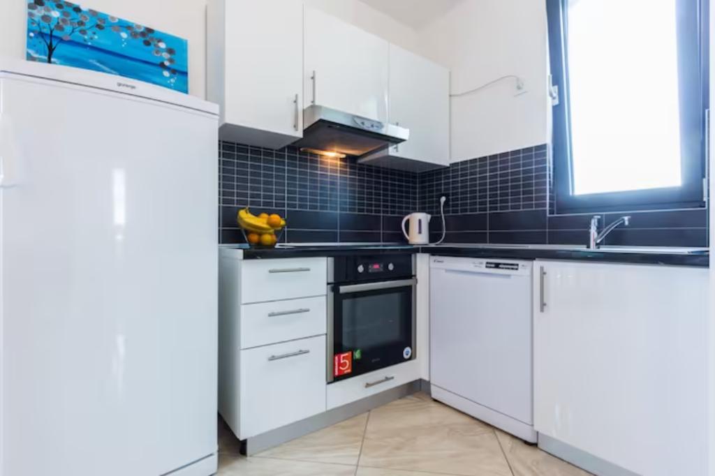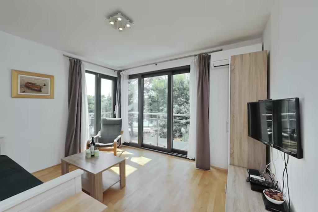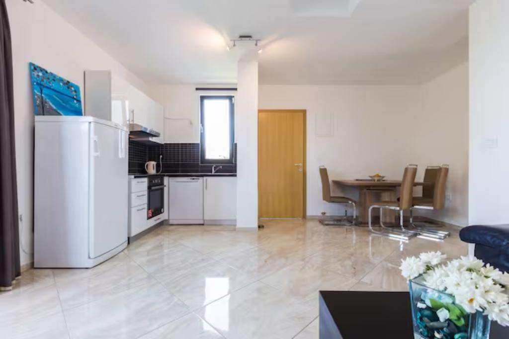 Am stat o săptămână în Bibinje cu cei 2 adolescenți ai noștri. Locația apartamentului chiar lângă mare este excelentă. Călătoria cu Google funcționează bine, dar, din păcate, nu există un număr de casă la poartă, așa că la început crezi că te înșeli. Apartamentul este destul de mare si relativ modern. Paturile sunt noi si confortabile. Din păcate, lipsesc câteva lucruri mici. Deci nu există posibilitatea de a agăța prosoapele în băi. Câteva cârlige de perete ar ajuta. Suportul pentru hârtie igienică lipsea și el într-una. În general, nu există spațiu de depozitare sau singurul raft mic era atât de liber încât nu puteai pune nimic pe el. Bucataria este destul de mica, dar are masina de spalat vase. Este posibil ca tigăile să fie înlocuite (aragazul cu inducție, nu toate tigăile sunt potrivite pentru aceasta) și aparatul de cafea trebuie detartrat. Din pacate nu merge asa. În general, a fost o vacanță frumoasă și s-ar putea să revenim. Restaurantele sunt la câțiva pași și nu este departe de brutărie sau de un mic supermarket.