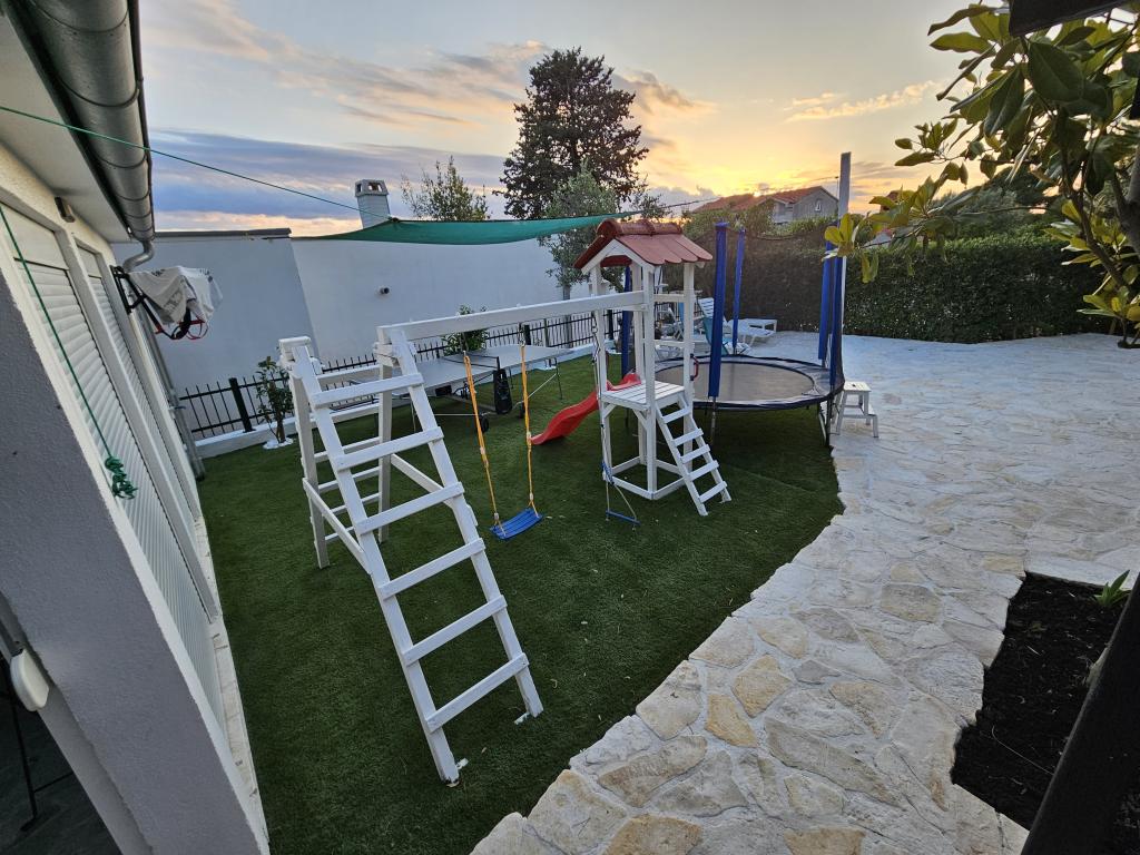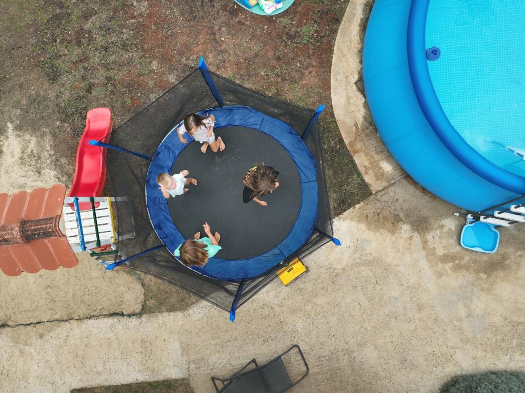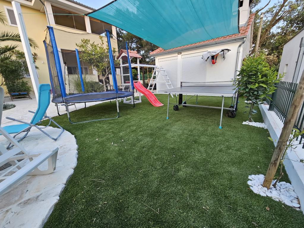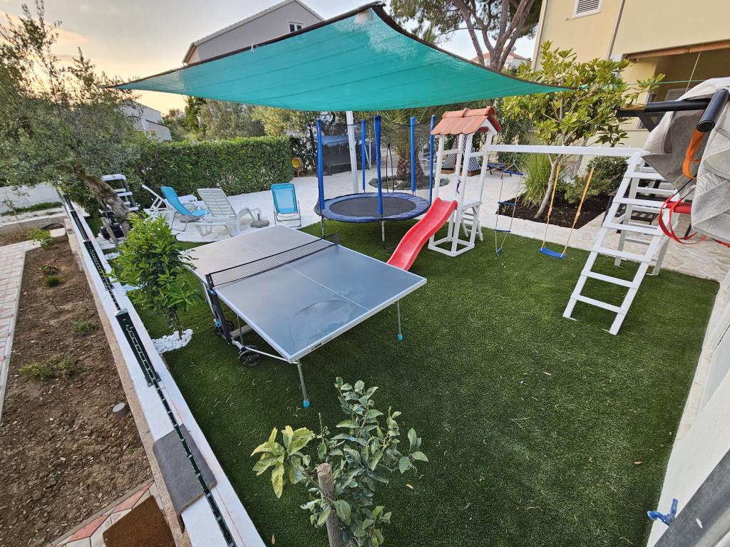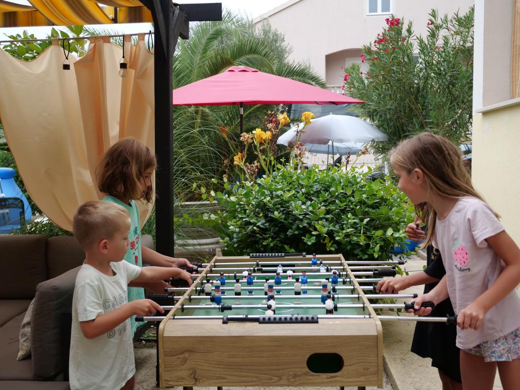 Oaspeții noștri au acces liber în curte și grădina. Poți folosi gratuit tot ce găsești în curte și grădină. Este împărtășit de toți cei care stau în casa noastră. Puteți găsi o piscină, biciclete (pentru copii și adulți, cu scaune înalte), un grătar cu grătar (sac, saće, čripnja), o mașină de gheață, o friteuză, 2 frigidere, o chiuvetă, un aragaz electric portabil, echipamente de fitness, șezlonguri cu umbrele, un duș solar, un leagăn de grădină pentru 4 persoane și mai multe piscine (de la cea mai mică pentru bebeluși până la cea mai mare), mese pentru copii din lemn și plastic, o căsuță de joacă cu tobogan, scară și leagăn, o cutie cu nisip, darts, tenis de masă, o trambulină, badminton, un leagăn pentru copii și multe alte jucării pentru copii.
