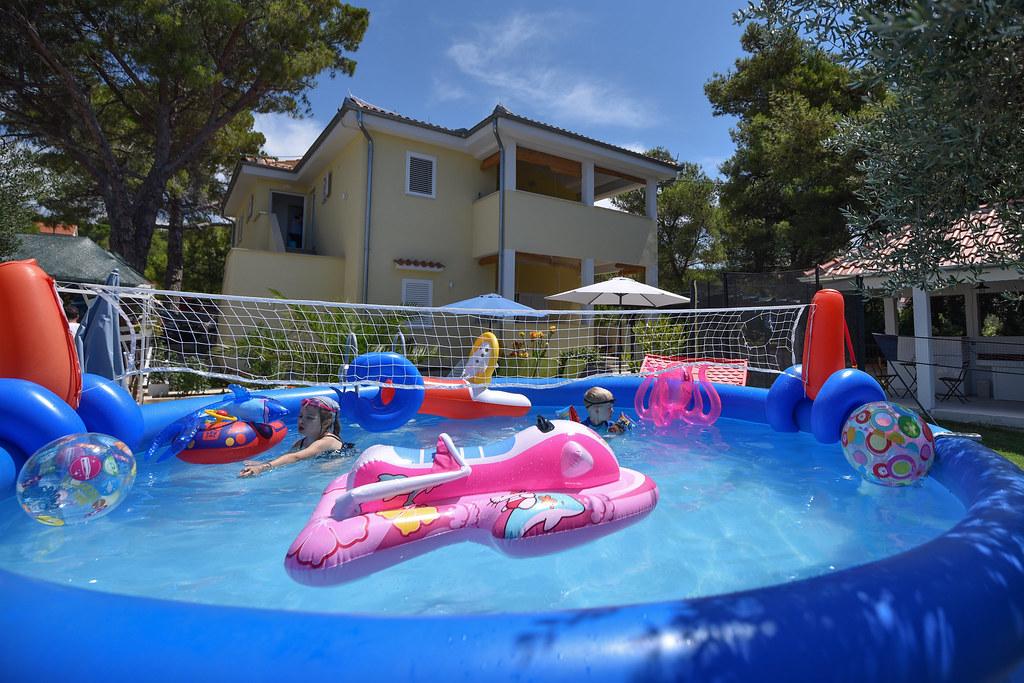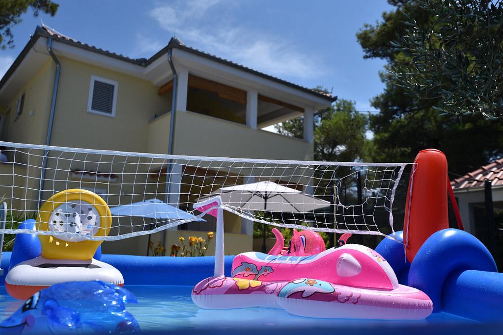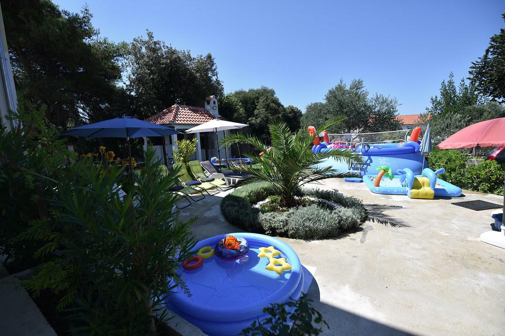 Apartamente complet utilate, cu curte, pentru până la 14 persoane. Pentru recenzii și comentarii ale oaspeților, vizitați site-ul nostru web. Recenziile și comentariile foarte pozitive sunt cea mai mare garanție a serviciilor pe care le oferim. Misiunea noastră este să vă facem vacanța de neuitat și suntem complet dedicați dumneavoastră și nevoilor dumneavoastră în timpul vacanței. Toți oaspeții noștri pot folosi gratuit și nelimitat toate facilitățile din curte, de la piscină, duș solar, șezlonguri și umbrele până la tenis de masă, badminton, trambulină, fotbal de masă, biliard, darts, grătar, bucătărie în aer liber și biciclete. Apartamentele sunt dotate cu aer condiționat, rețea wireless de mare viteză și televizor LCD cu canale prin satelit și Netflix. Verificați lista completă de condiții, reguli și reguli interne pe site-ul nostru web. Vrem să îi cunoașteți, astfel încât nimic să nu vă strice vacanța. Nu ezitați să întrebați orice nu este suficient de clar.