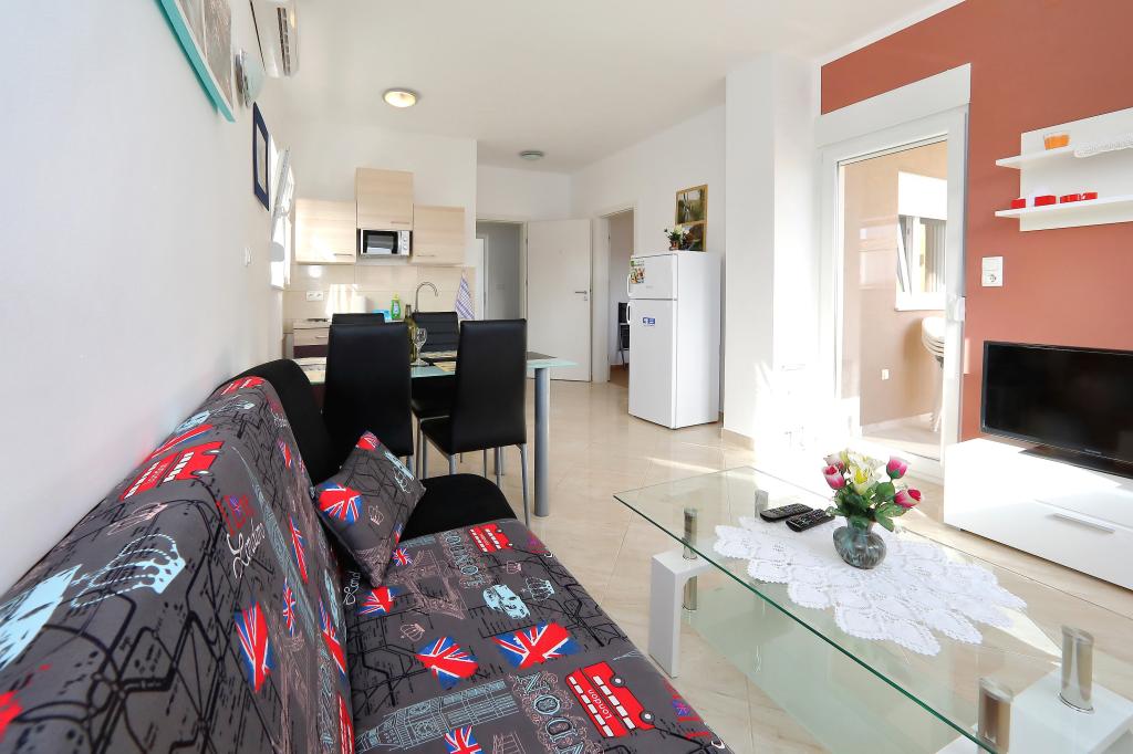 Anul acesta am ales acest apartament pentru vacanța noastră și cu siguranță am făcut ceea ce trebuia. Imediat după sosire am putut parca la casă, în spatele unei porți închise, așa că mașina a fost în siguranță. Apartamentul în sine a fost frumos, spațios, curat și complet echipat cu toate ustensilele de gătit necesare. Aerul condiționat ne-a ținut răcoriți atât noaptea, cât și ziua. Terasa mare a fost absolut ideală pentru copilul nostru mic, care s-a putut juca acolo toată ziua - la soare sau la umbră datorită umbrelelor mari. În același timp, am avut o priveliște frumoasă asupra mării. Marea era chiar la o aruncătură de băț de apartament. Recomandăm cu siguranță cazarea și cu siguranță vom reveni. Mulțumim.