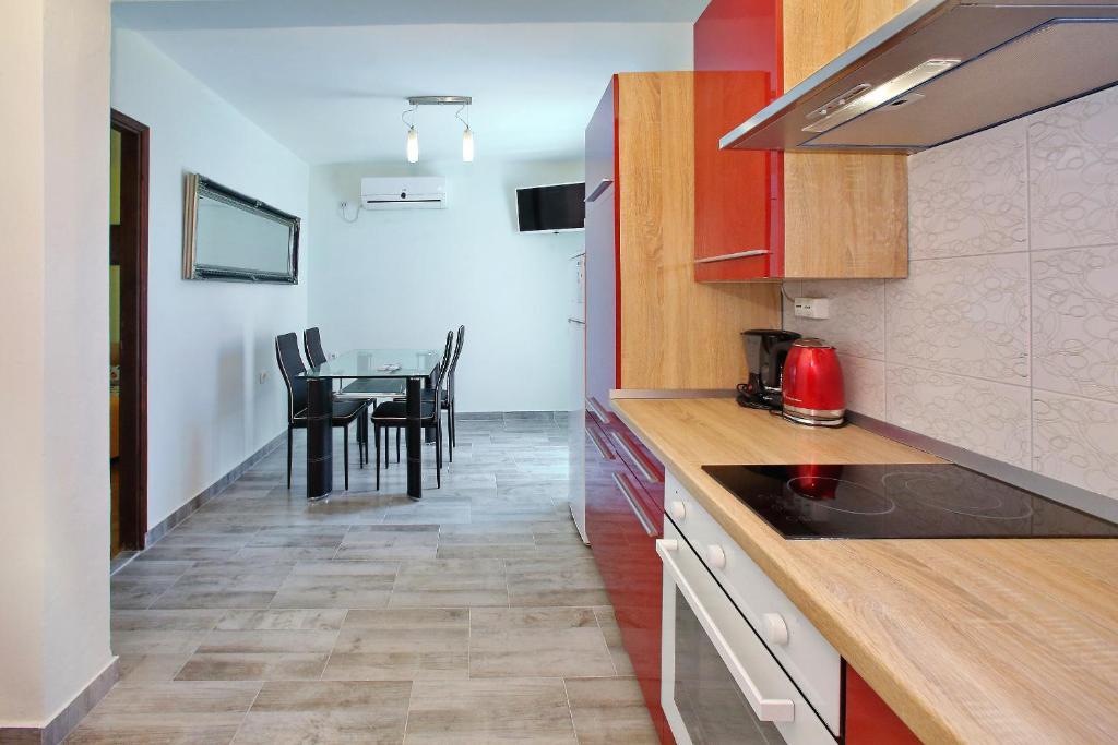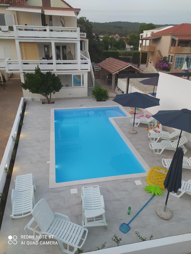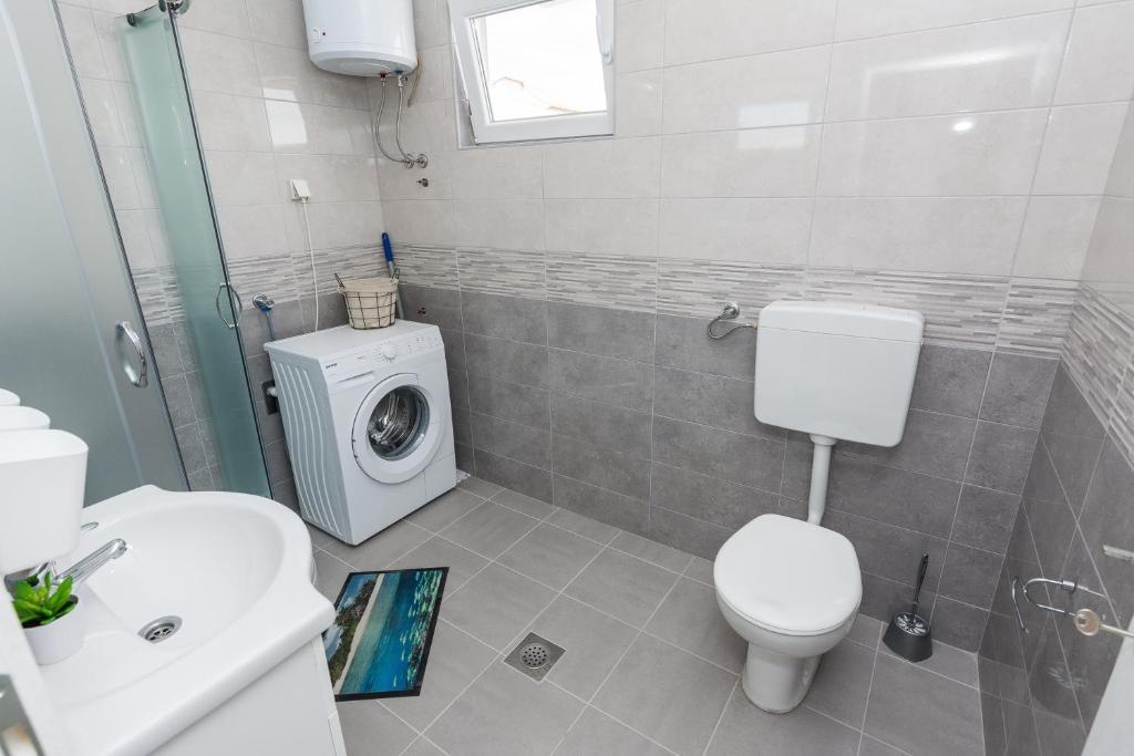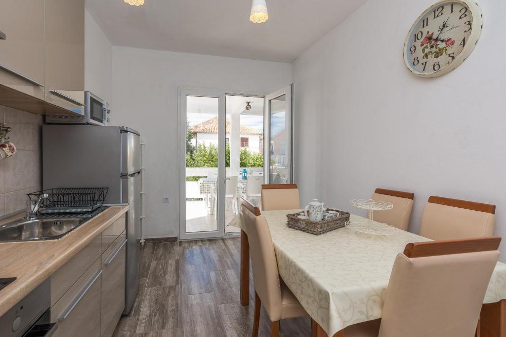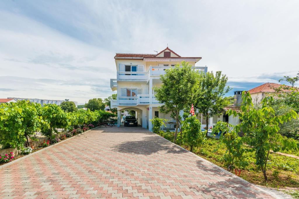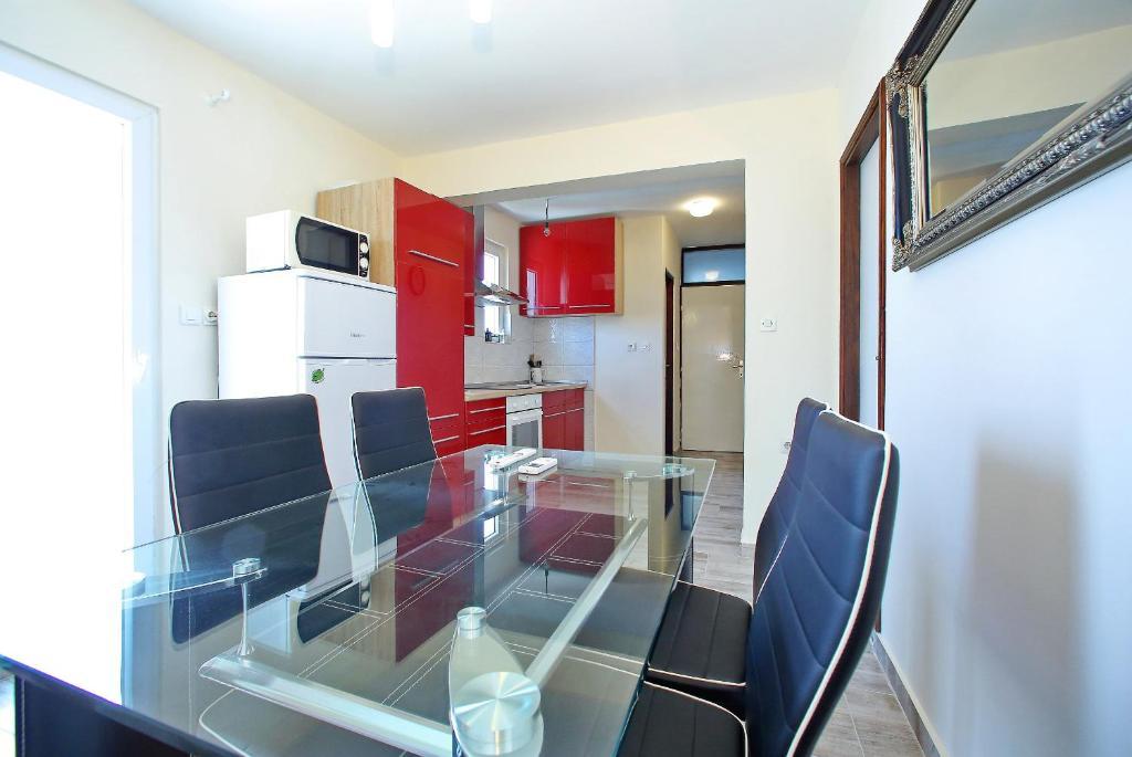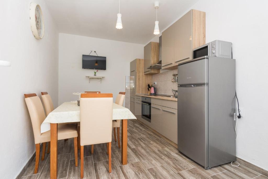 Apartamentele Mirko și Ana sunt situate la 400 de metri de plaja Punta Rožica, dotate cu aer condiționat, Wi-Fi și parcare privată. Aceste apartamente de trei stele au piscină privată. Apartamentele oferă oaspeților terase private, vedere la grădină și la piscină, o zonă de relaxare și de luat masa, TV și bucătărie utilată cu băi private. Fiecare apartament este dotat cu lenjerie de pat și prosoape. Oaspeții pot folosi și un grătar cu mobilier de grădină în curte. De asemenea, oaspeții se pot relaxa lângă piscină pe șezlonguri cu umbrele de soare. Marina Dalmacija este la 1 km de apartament, iar plaja Škaljica este la 700 de metri. Cel mai apropiat aeroport este la 9 km.