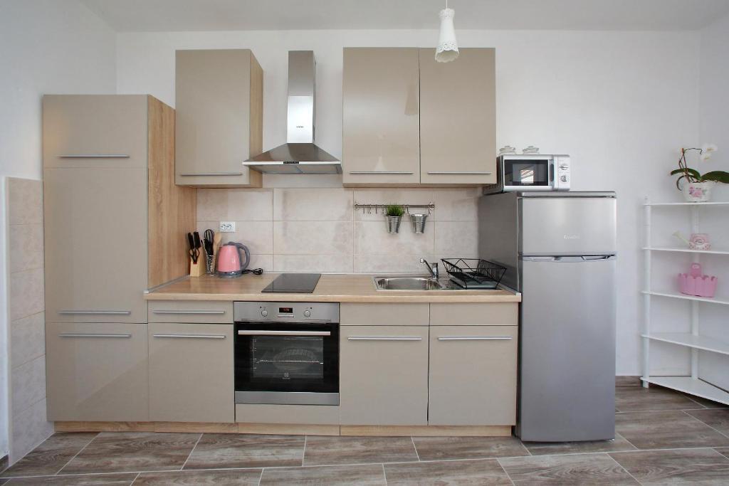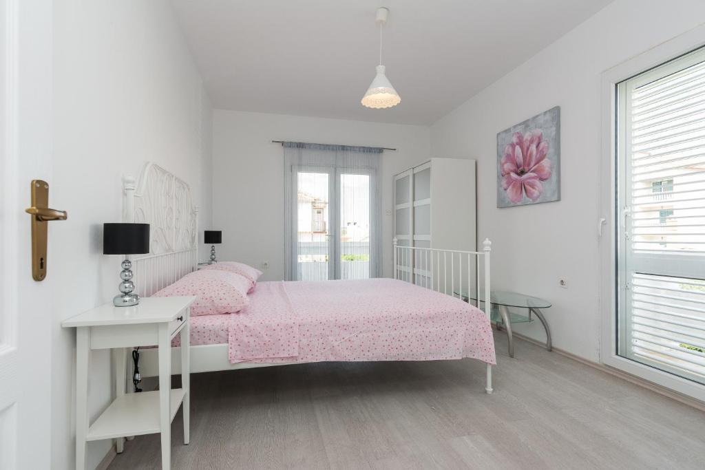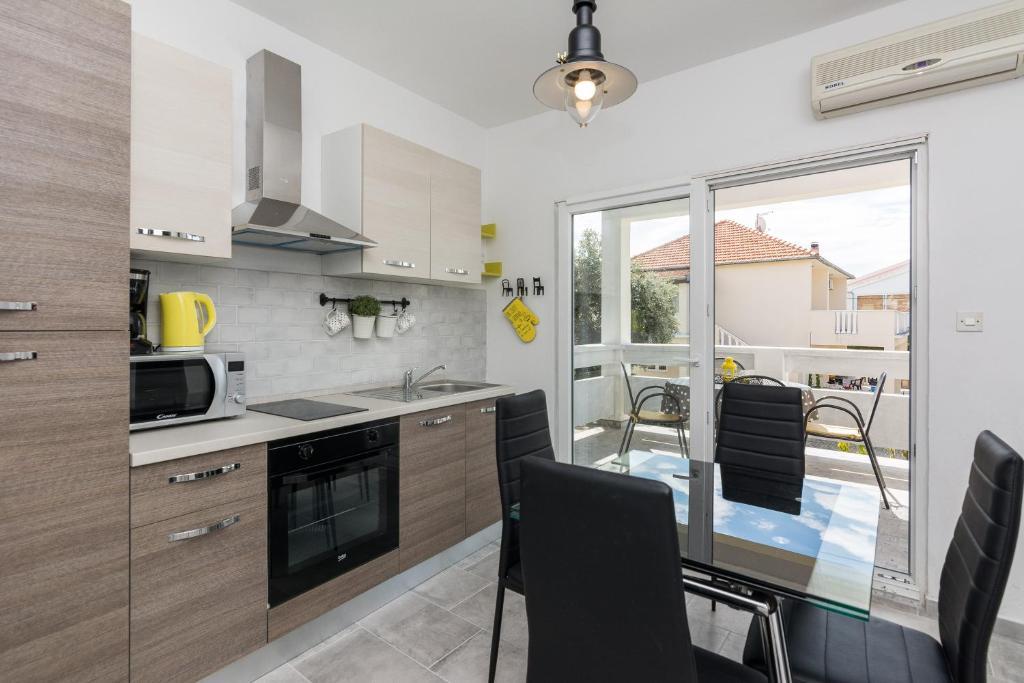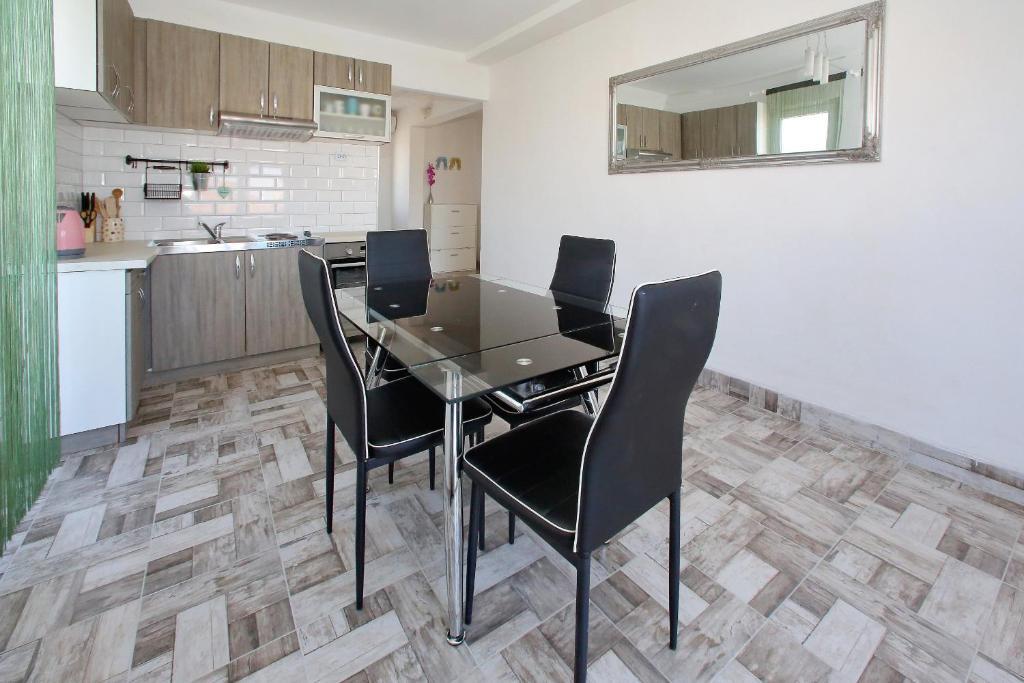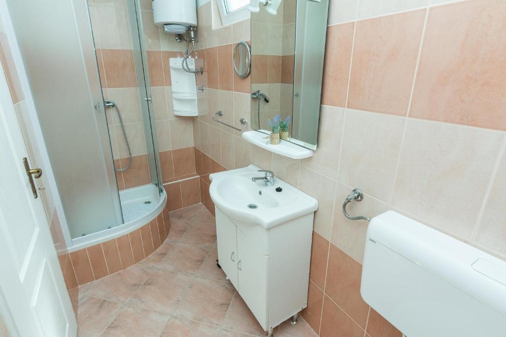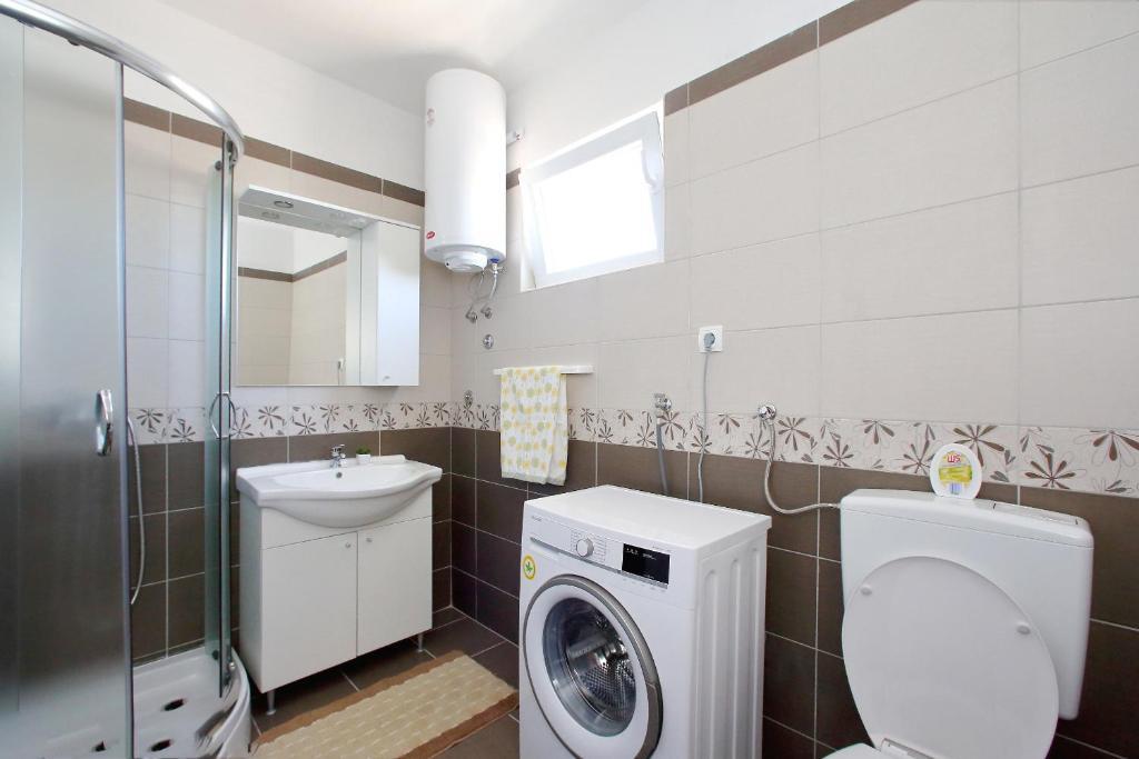 Apartamentele Mirko și Ana sunt situate la 400 de metri de plaja Punta Rožica, dotate cu aer condiționat, Wi-Fi și parcare privată. Aceste apartamente de trei stele au piscină privată. Apartamentele oferă oaspeților terase private, vedere la grădină și la piscină, o zonă de relaxare și de luat masa, TV și bucătărie utilată cu băi private. Fiecare apartament este dotat cu lenjerie de pat și prosoape. Oaspeții pot folosi și un grătar cu mobilier de grădină în curte. De asemenea, oaspeții se pot relaxa lângă piscină pe șezlonguri cu umbrele de soare. Marina Dalmacija este la 1 km de apartament, iar plaja Škaljica este la 700 de metri. Cel mai apropiat aeroport este la 9 km.