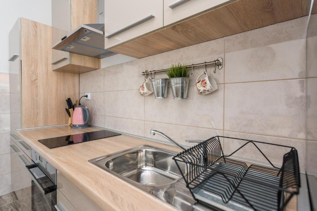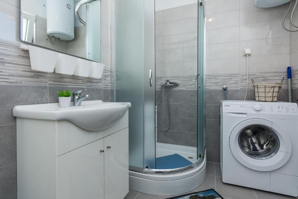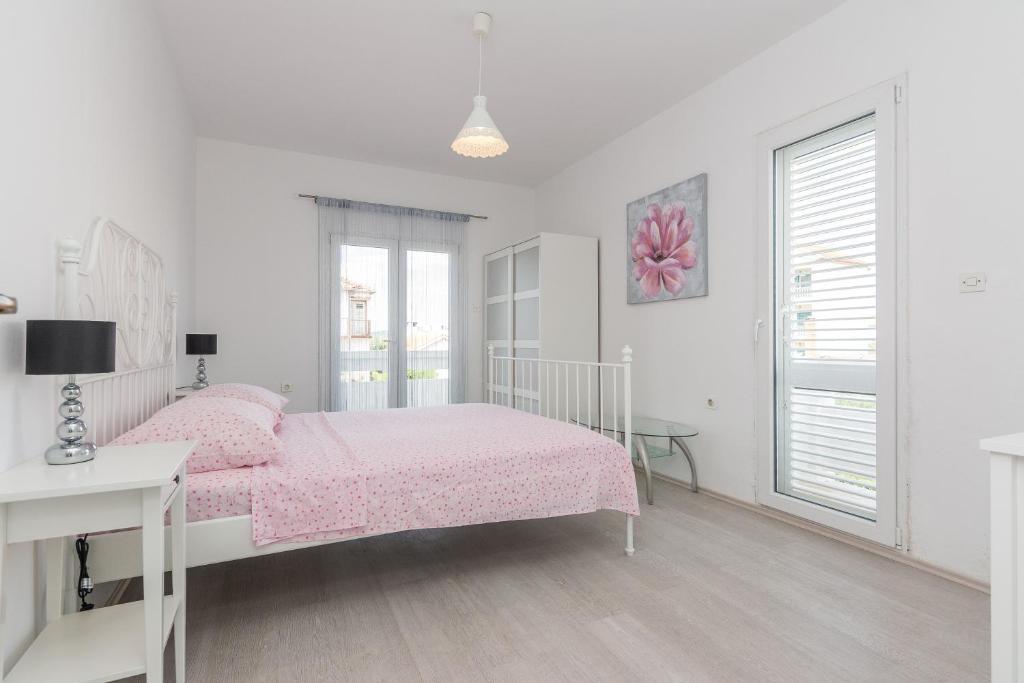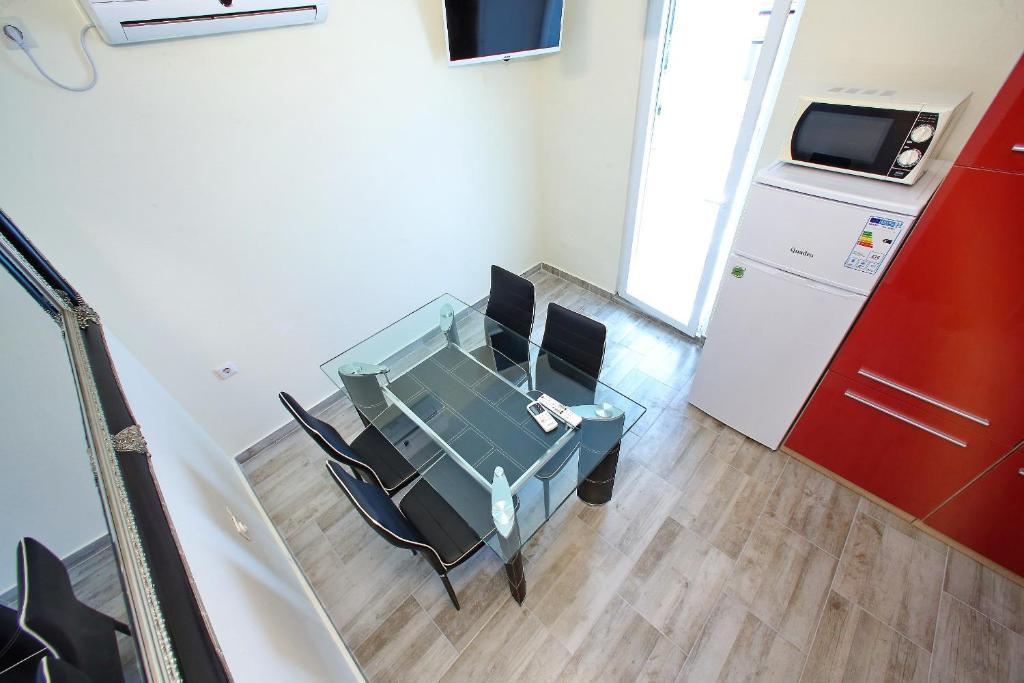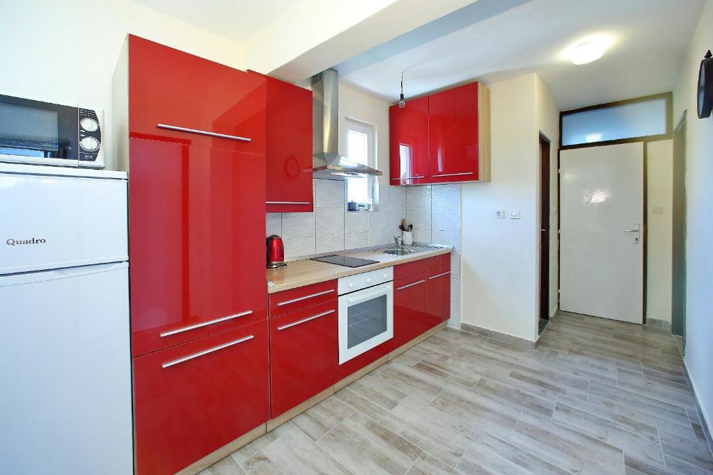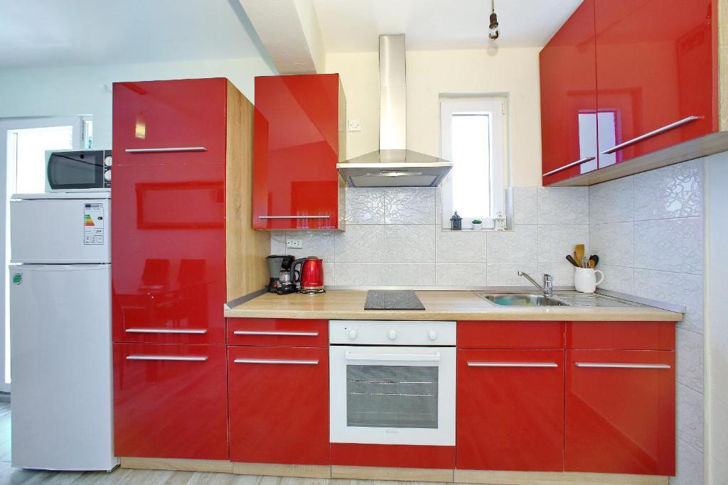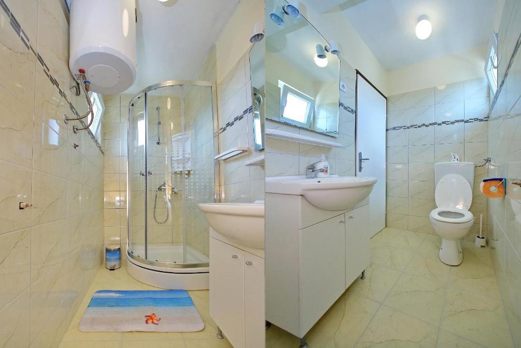 Apartamentele Mirko și Ana sunt situate la 400 de metri de plaja Punta Rožica, dotate cu aer condiționat, Wi-Fi și parcare privată. Aceste apartamente de trei stele au piscină privată. Apartamentele oferă oaspeților terase private, vedere la grădină și la piscină, o zonă de relaxare și de luat masa, TV și bucătărie utilată cu băi private. Fiecare apartament este dotat cu lenjerie de pat și prosoape. Oaspeții pot folosi și un grătar cu mobilier de grădină în curte. De asemenea, oaspeții se pot relaxa lângă piscină pe șezlonguri cu umbrele de soare. Marina Dalmacija este la 1 km de apartament, iar plaja Škaljica este la 700 de metri. Cel mai apropiat aeroport este la 9 km.