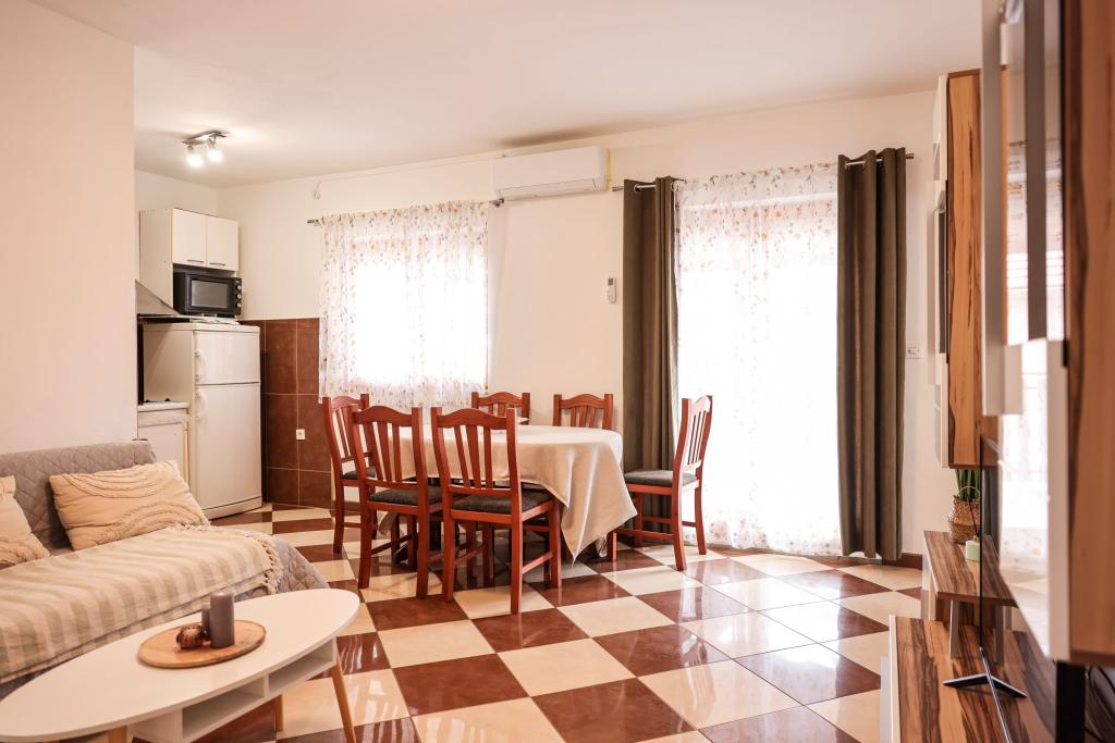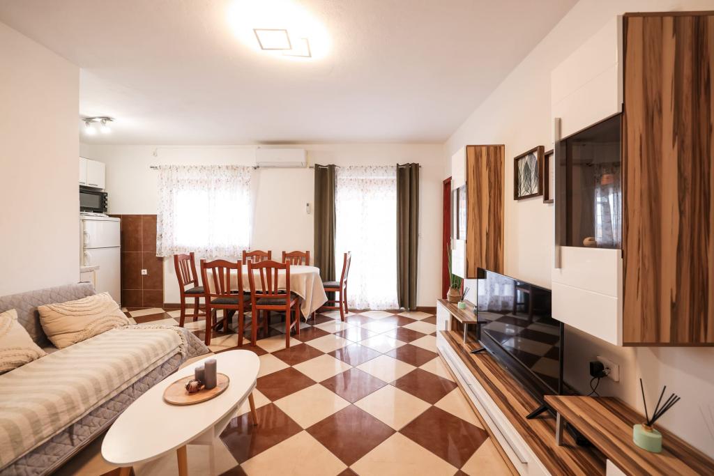 Apartamentele complet echipate sunt situate în imediata apropiere a orașului Zadar, în Bibinje, al treilea rând de la mare. Plaja este la doar câteva minute de mers pe jos. Centrul orașului cu toate facilitățile însoțitoare este la 500 de metri, în timp ce stația principală de autobuz și aeroportul sunt la aproximativ 5 km. În apropiere există și 4 parcuri naționale, la care se poate ajunge cu transportul organizat sau cu mașina. Bibinje este un loc cu o varietate de oferte. Cafenele și restaurantele cu o ofertă gastronomică bogată se întind de-a lungul întregii coaste. De asemenea, în oraș au loc aproape în fiecare zi evenimente culturale, de la festivaluri de pescuit la diverse concerte.