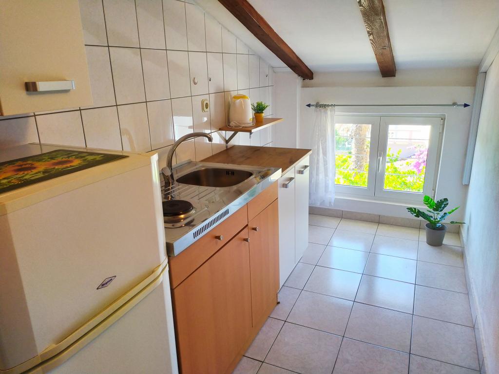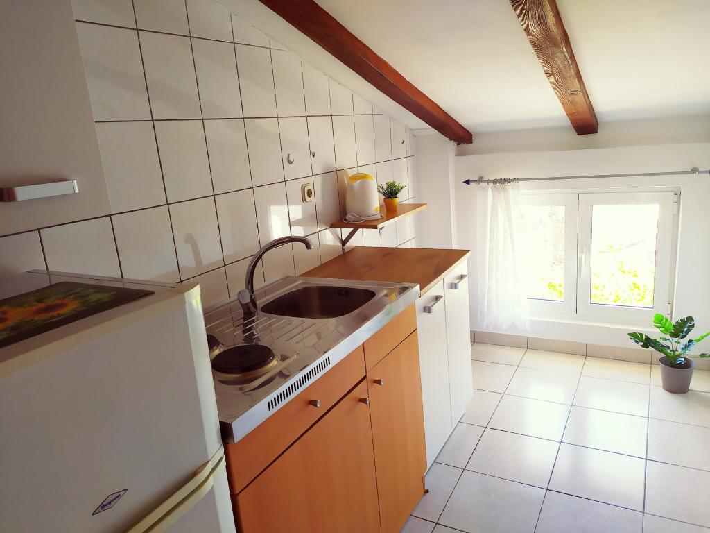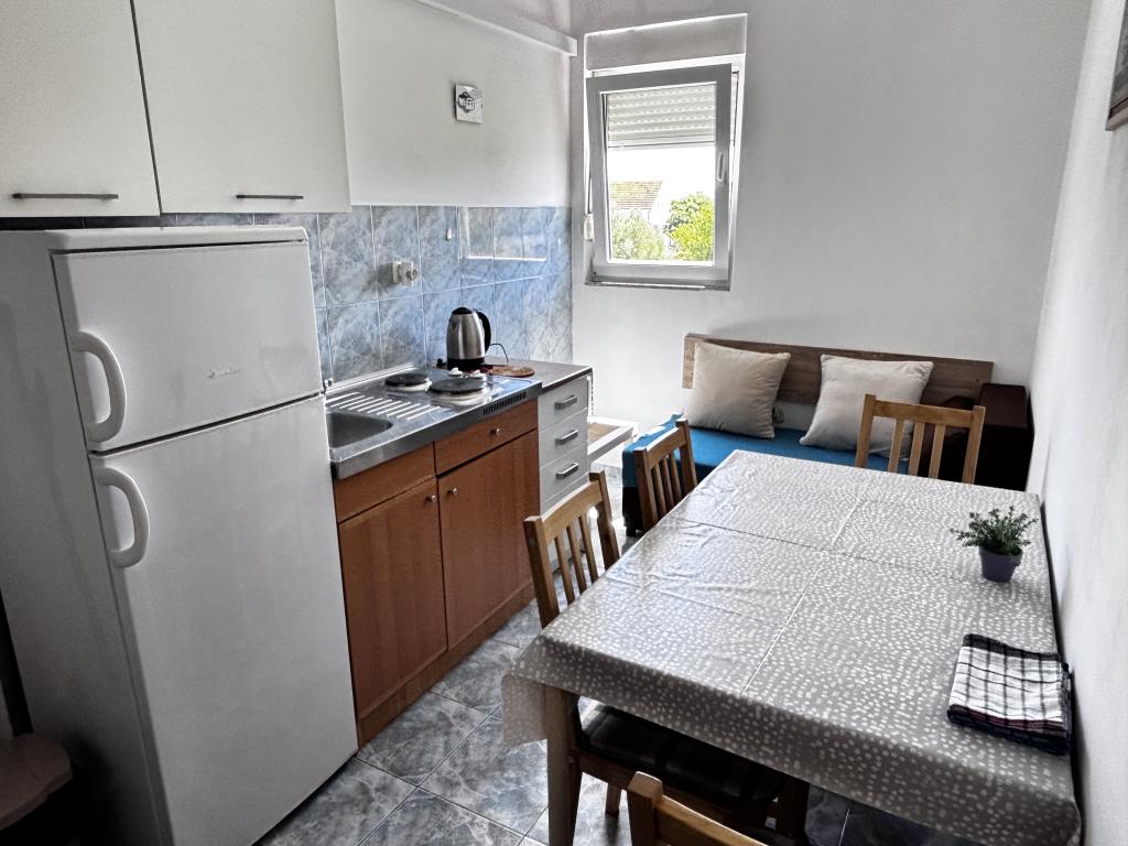 Casa de familie este situată într-o zonă liniștită a orașului, la marginea plajei Punta Rožica, primul rând spre mare. Plaja este la 10 metri. Potrivit pentru familiile cu copii. Plaja este potrivită și pentru non-înotători. Etajul 1 și 2 de închiriat. Locuim la parter, pe care nu-l închiriem. Avem 6 apartamente și o cameră dublă cu baie și bucătărie separată. În apropiere se află piețe, fast-food, restaurante, toate la 200 de metri. Parcarea este oferită ca parte a unității de cazare. Animalele de companie sunt permise în unele unități de cazare, la un cost suplimentar de 5 EUR pe zi.