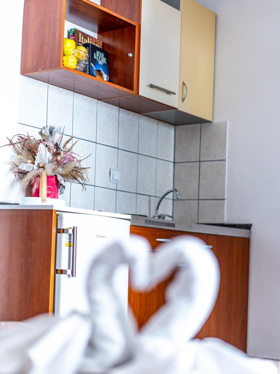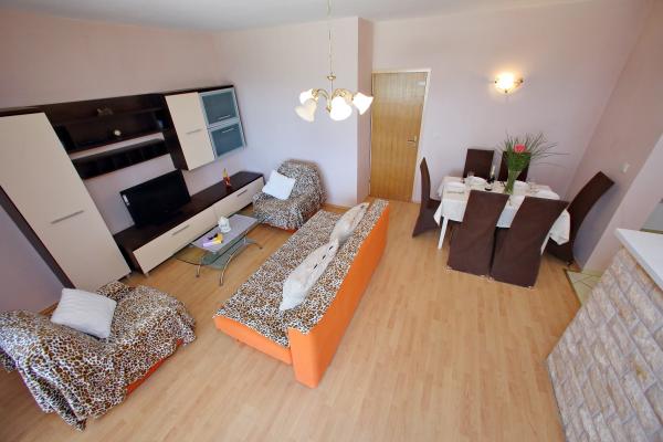 Căutăm un loc liniștit și l-am găsit. Aș dori să profit de această ocazie pentru a mulțumi familiei Lisica pentru timpul minunat! Întotdeauna vorbesc cu bucurie despre șederea noastră minunată cu tine și recomand totul! Apartamentul a fost puțin mic, dar frumos și curat. Este foarte frumos decorat. Tot ce ai nevoie ca self-catering este acolo. Ne simțeam ca acasă. Apartman este la 10m de plaja, nu era prea multa lume acolo, am avut o vacanta frumoasa. Marija chiar a avut grijă de noi. Salutări