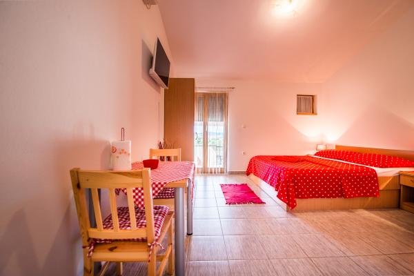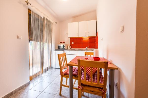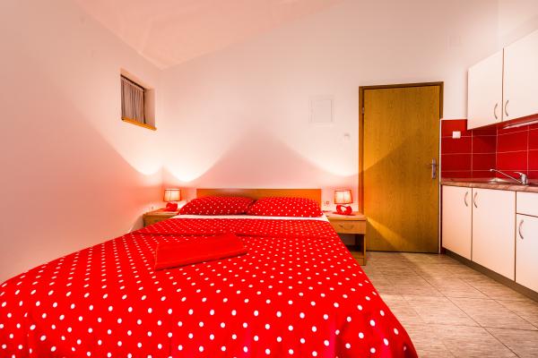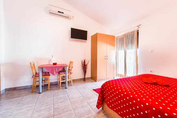 Noi oferim două apartamente studio recent decorate de diferite dimensiuni. Fiecare dintre ele fiind dotate cu accesorii de bucătărie complete, prosoape, și dacă se dorește, de asemenea, disponibil un grătar. Este posibil să se utilizeze grădină. Apartamentele au, de asemenea, televizoare cu canale prin satelit și aer condiționat. Apartamentele Duje au terase cu vedere la grădină, cu un mic apartamente de terasă oferă o vedere la mare. Pentru spațiul de parcare. Mare este de aproximativ 3 minute. mers pe jos