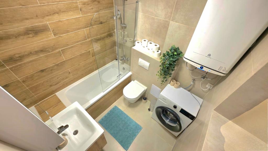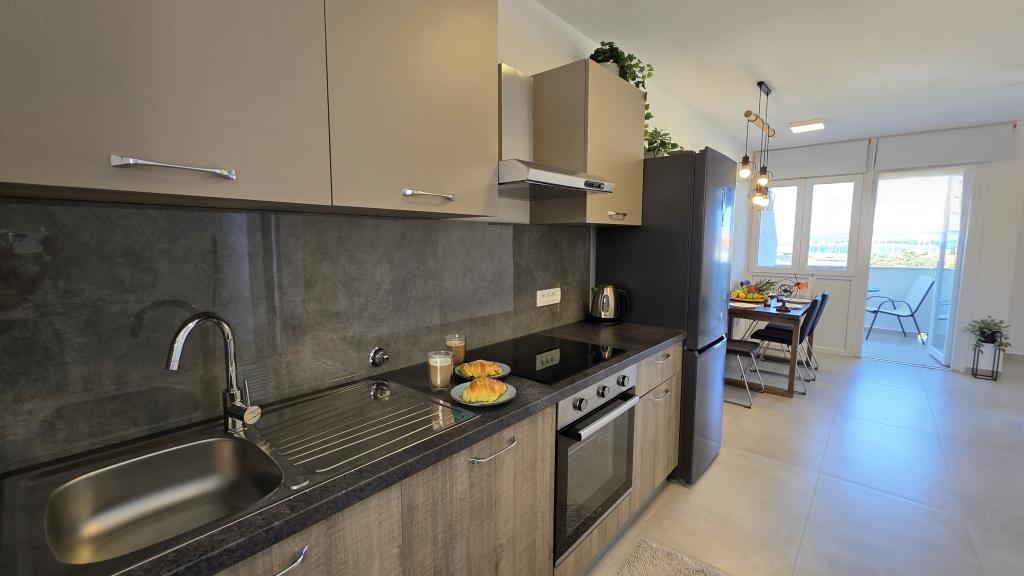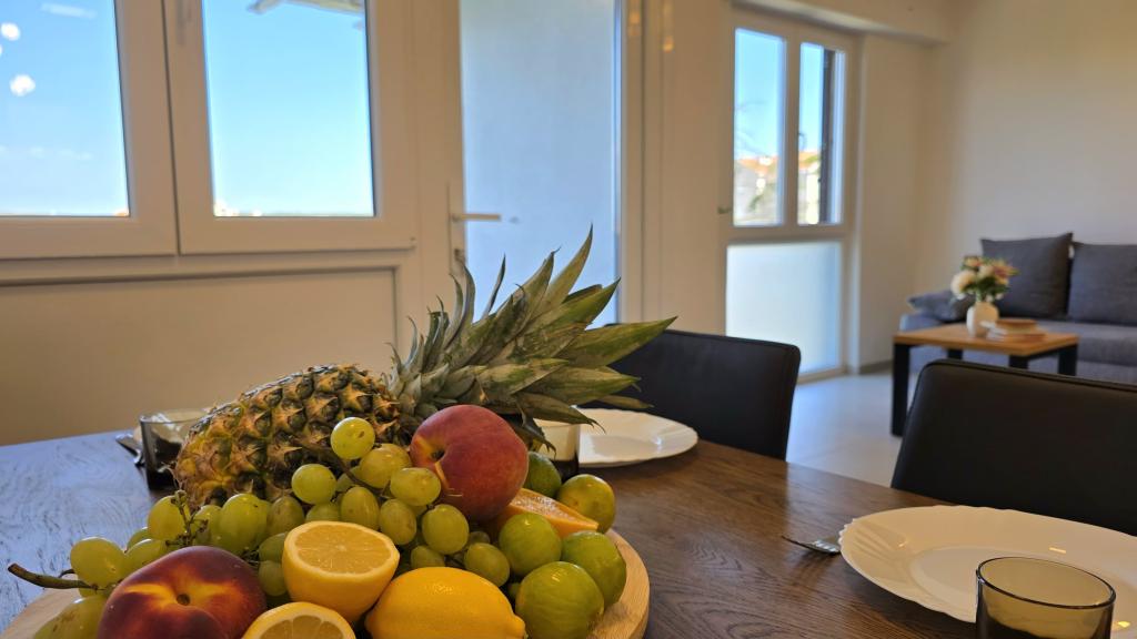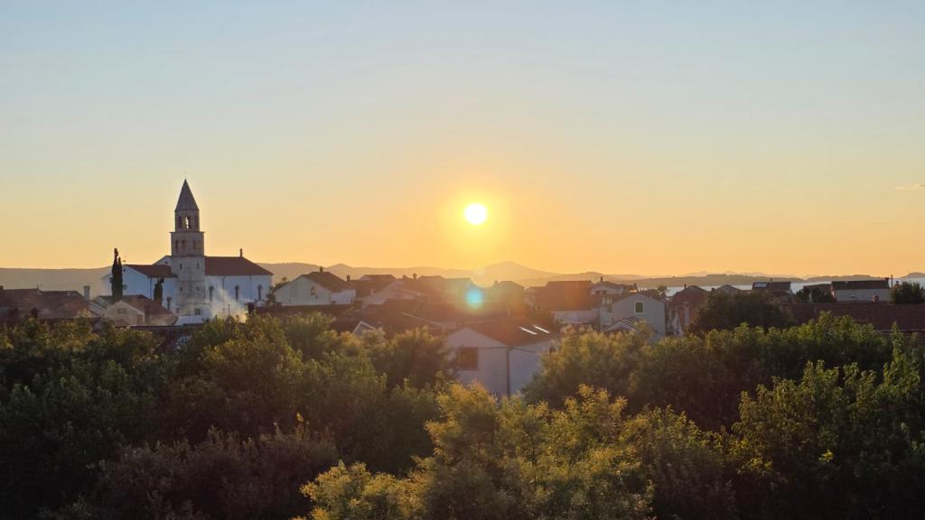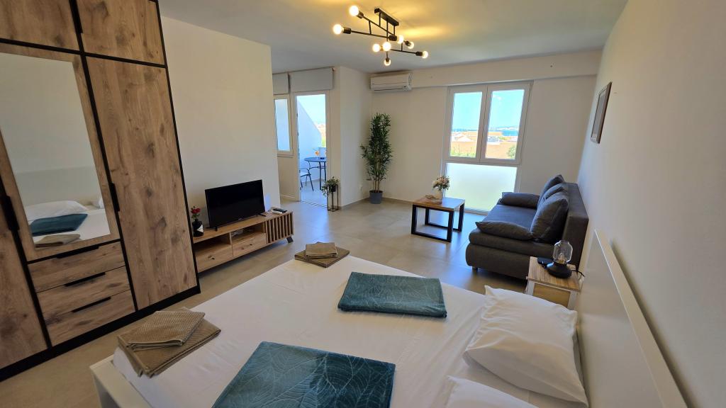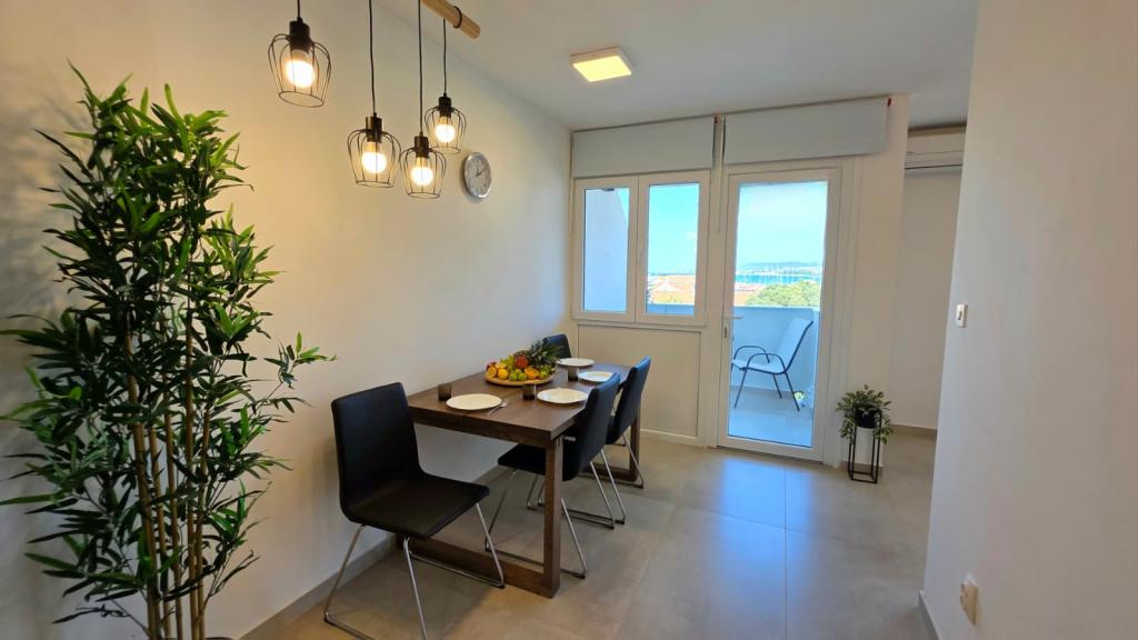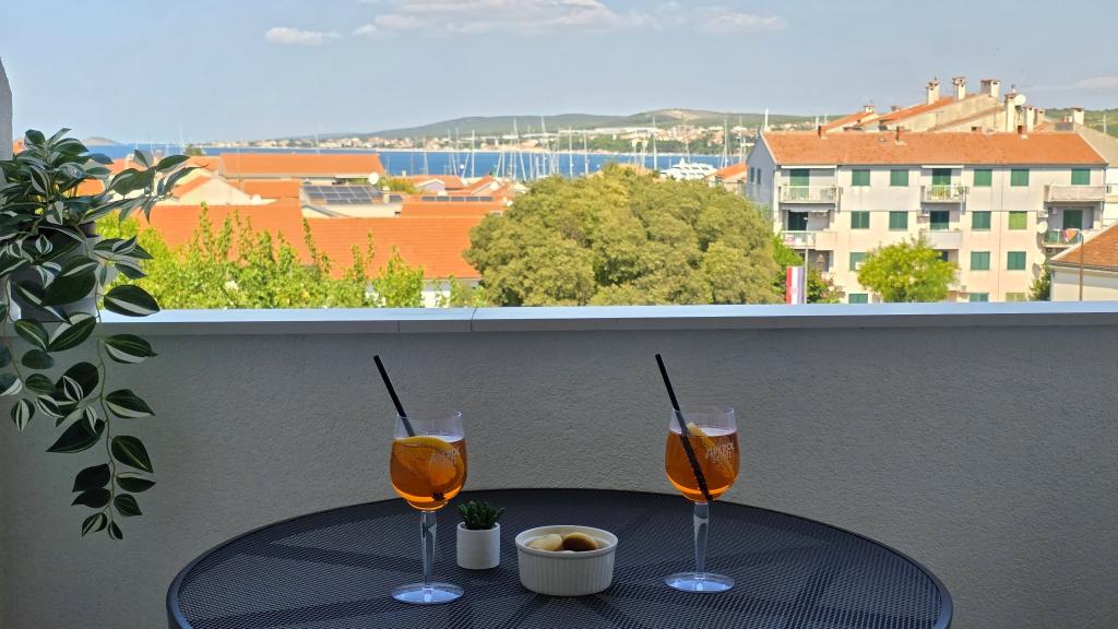Apartament recent renovat în centrul orașului Biograd. Toate facilitățile esențiale, cum ar fi restaurante, cafenele, cofetării, magazine etc., sunt în apropiere. Plaja se află la 5 minute de mers pe jos. Balconul oferă vedere la mare și la centrul orașului Biograd. Apartamentul are mașină de spălat vase și mașină de spălat rufe. Autogara este în apropiere. Apartamentul este situat la etajul patru al unei clădiri fără lift.