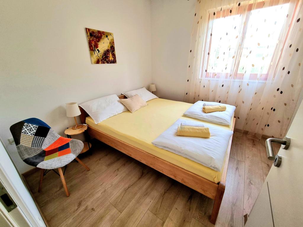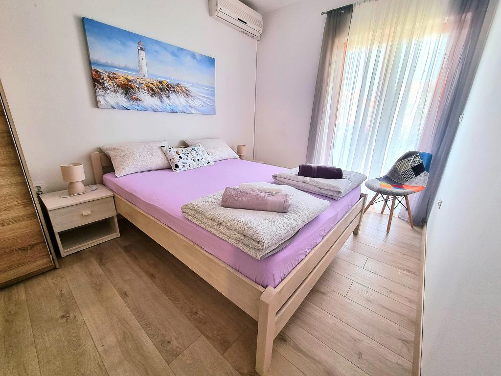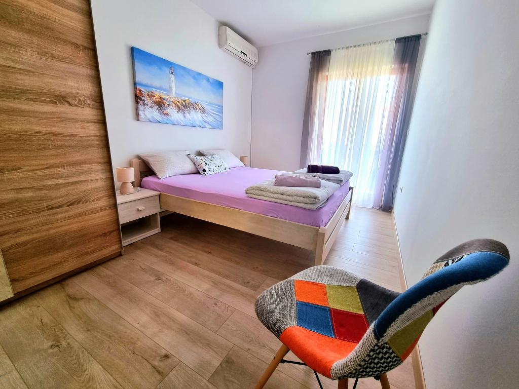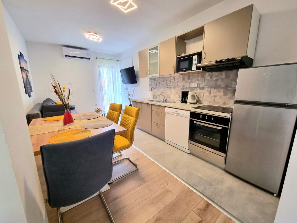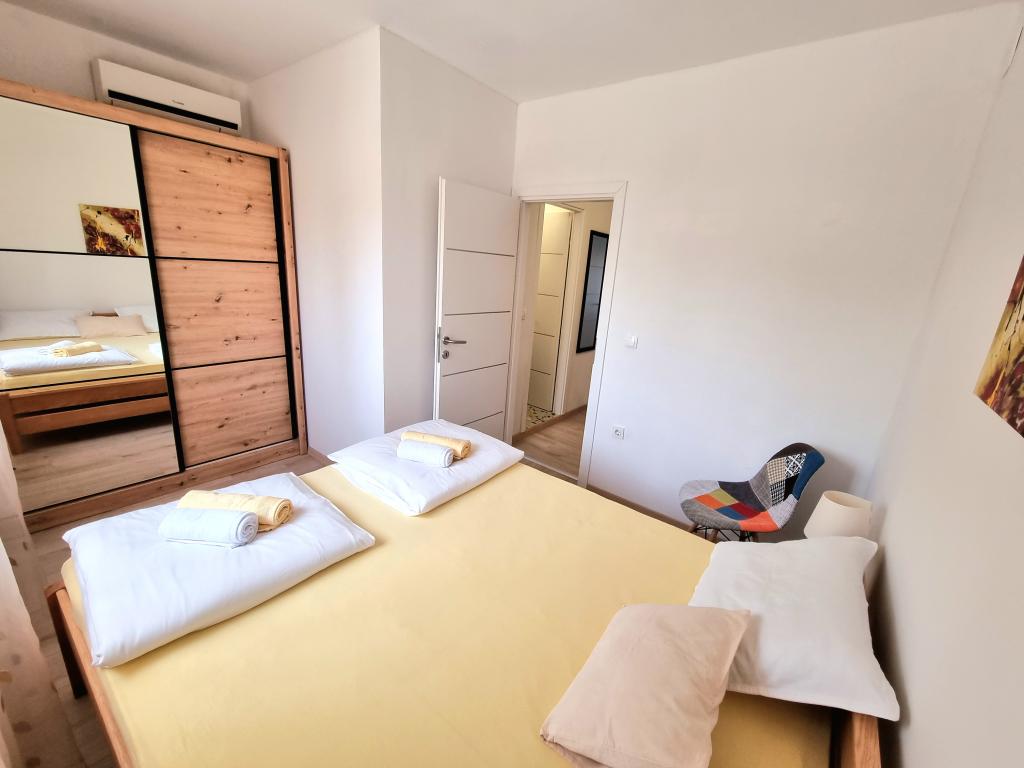 Apartament modern și complet utilat cu două dormitoare pentru 4 persoane în Biograd na Moru. Proprietatea este situată într-o zonă liniștită a centrului, la doar câteva minute de mers pe jos de plaja Dražice, iar promenada și malul apei cu restaurante și cafenele sunt la fel de departe. Parcare pentru o mașină în cadrul proprietății. Apartamentul are două camere separate, fiecare cameră având propriul aer condiționat, două băi, o bucătărie complet utilată.