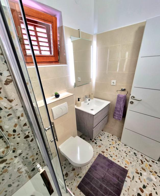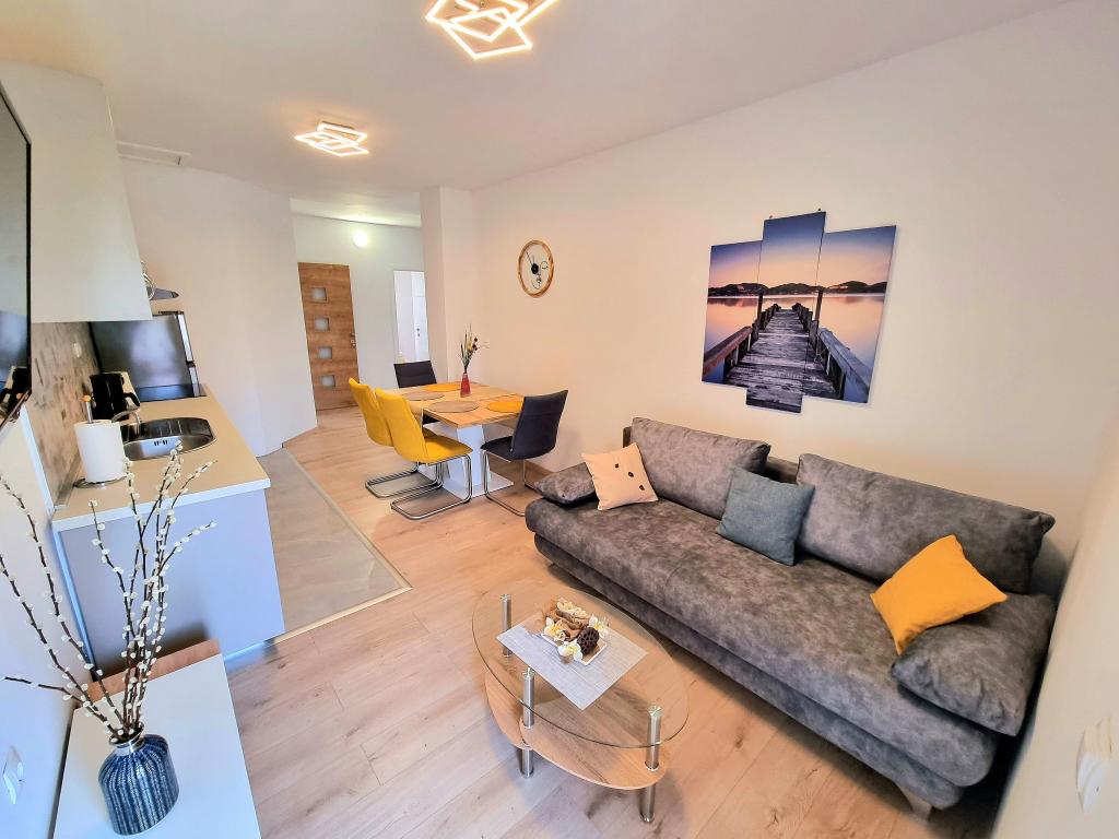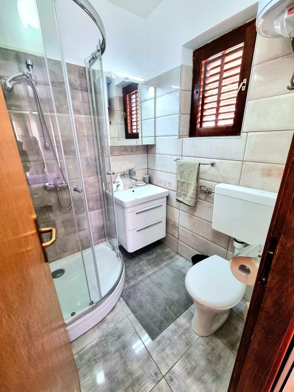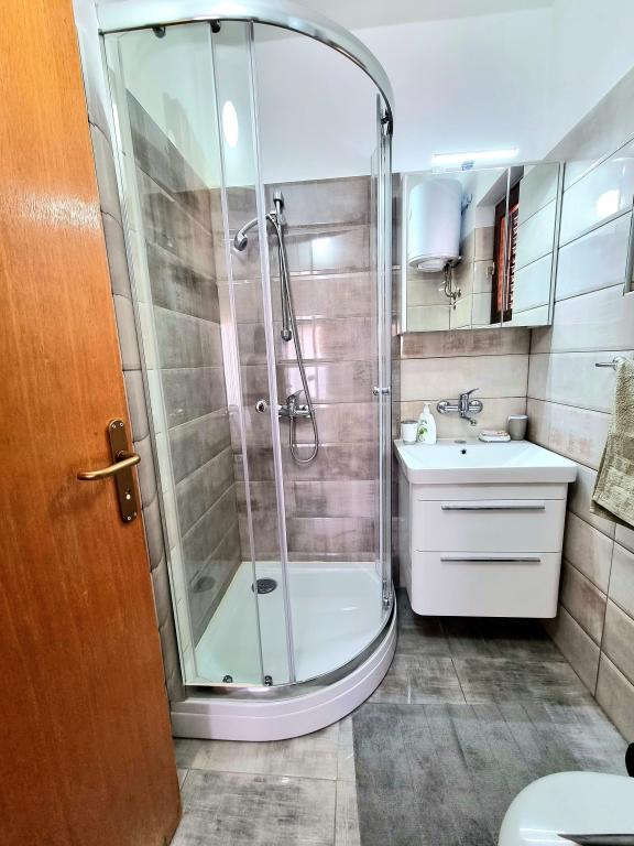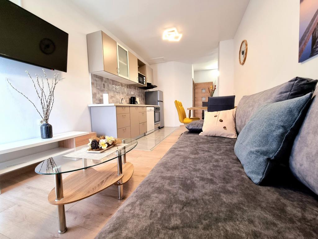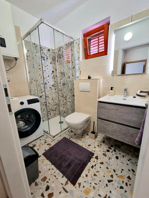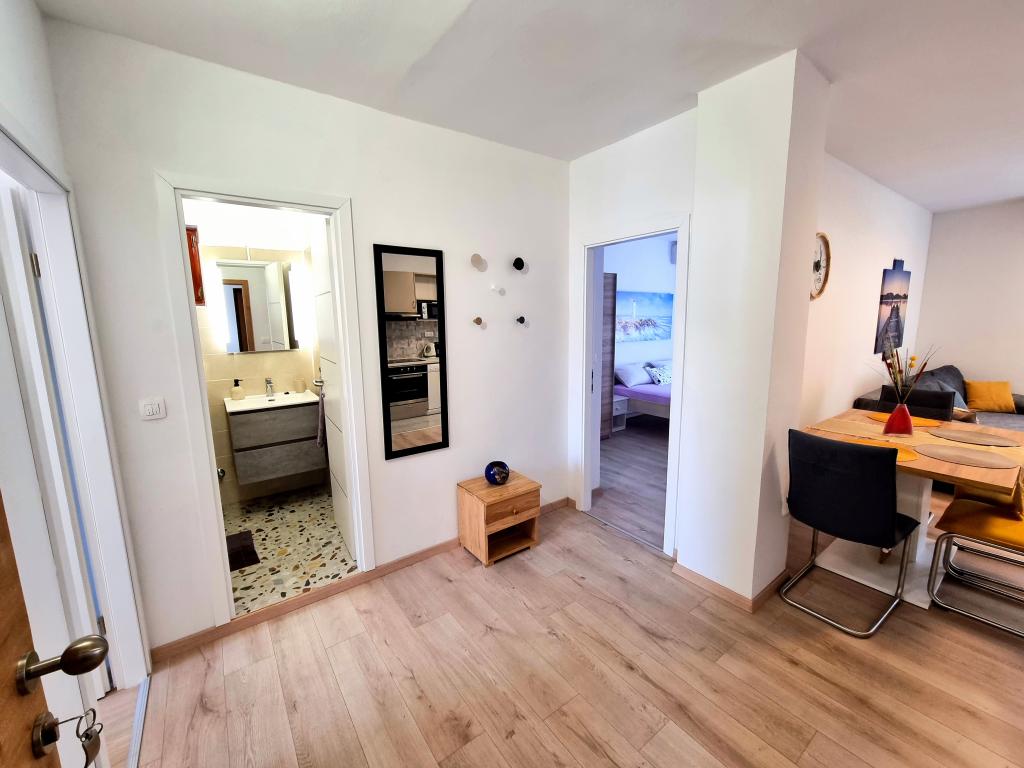 Apartament modern și complet utilat cu două dormitoare pentru 4 persoane în Biograd na Moru. Proprietatea este situată într-o zonă liniștită a centrului, la doar câteva minute de mers pe jos de plaja Dražice, iar promenada și malul apei cu restaurante și cafenele sunt la fel de departe. Parcare pentru o mașină în cadrul proprietății. Apartamentul are două camere separate, fiecare cameră având propriul aer condiționat, două băi, o bucătărie complet utilată.