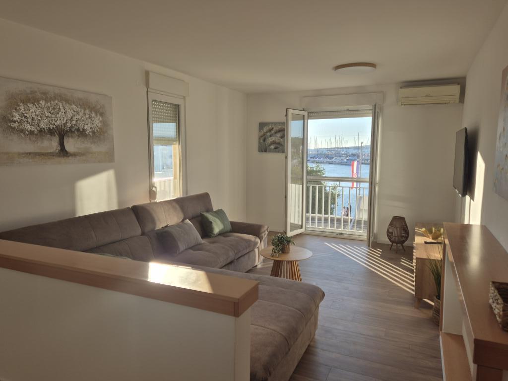 Apartament complet utilat în Biograd na Moru, în centrul orașului, pe primul rând la mare, cu o vedere frumoasă la mare. Apartamentul se află la 20 m de mare. Două balcoane de unde vă puteți bucura de o priveliște frumoasă asupra mării și a orașului. Ideal pentru o familie, toate facilitățile sunt la îndemână. Două dormitoare pentru 2+3 persoane.