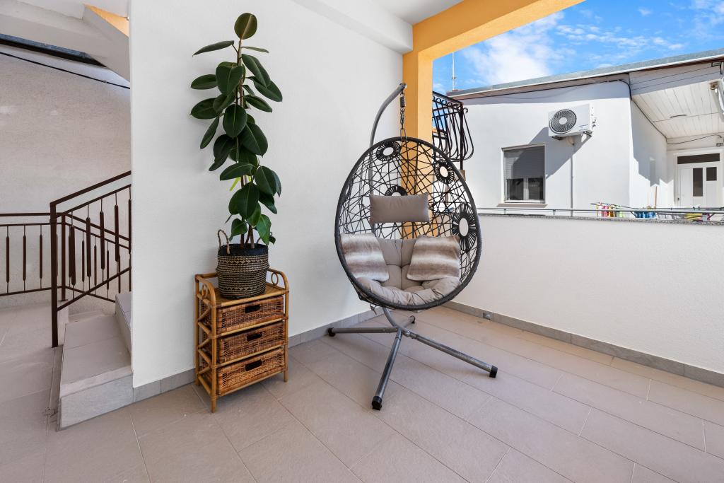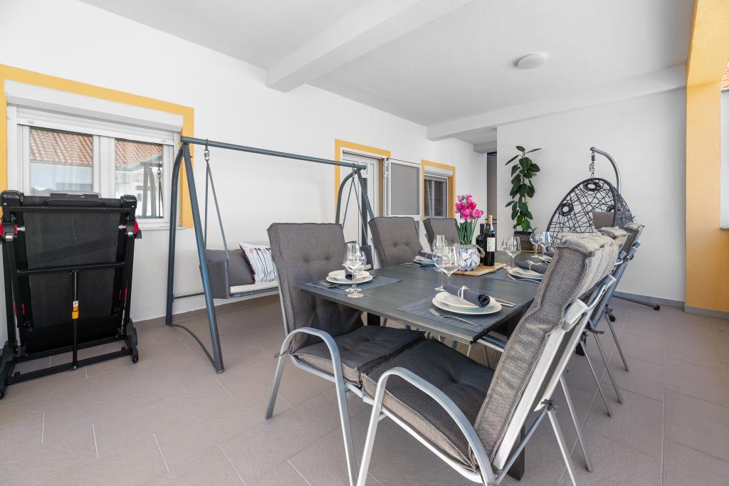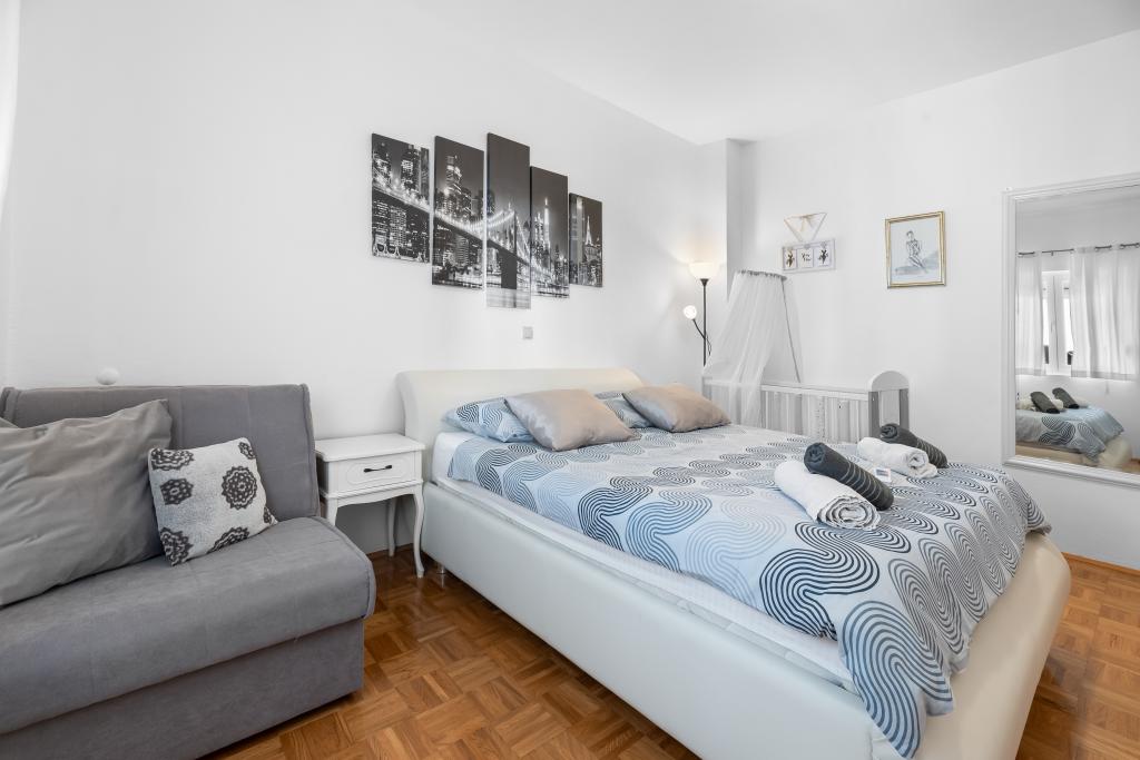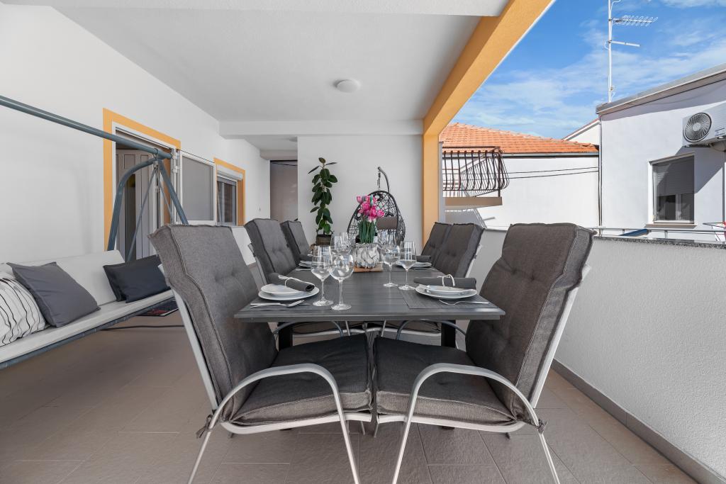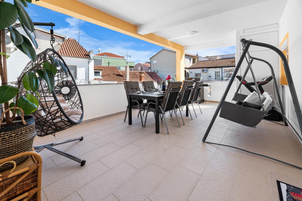 Apartament de inchiriat in centrul orasului Biograd na Moru. Ne ocupăm de turism din 1950. Apartamentul este complet utilat: aer conditionat, frigider cu congelator, cuptor, masina de spalat rufe, masina de spalat vase, max TV, Netflix, wifi, etc... In imediata apropiere de 100 de metri se afla plaja Dražica, care este si cea mai frumoasa plaja din Biograd și a primit steagul albastru pentru cele mai frumoase plaje din Marea Adriatică. Există, de asemenea, numeroase magazine, cafenele, restaurante, bănci și orice altceva în jurul nostru. Apartamentul are 3 stele si parcare pazita. Apartamentul ZARA este pentru max. 8 persoane și este situat la primul etaj al unei case de familie și are două dormitoare și un living mare cu o canapea extensibilă. În față este o terasă mare cu masă și scaune și un leagăn frumos pentru odihnă și bucurie de soare. Avem un pătuț dacă este nevoie.