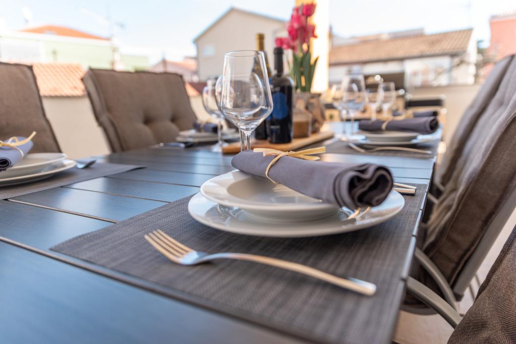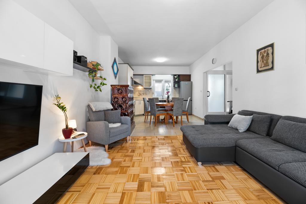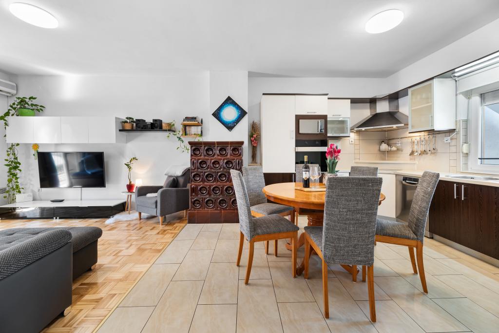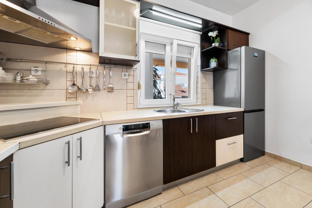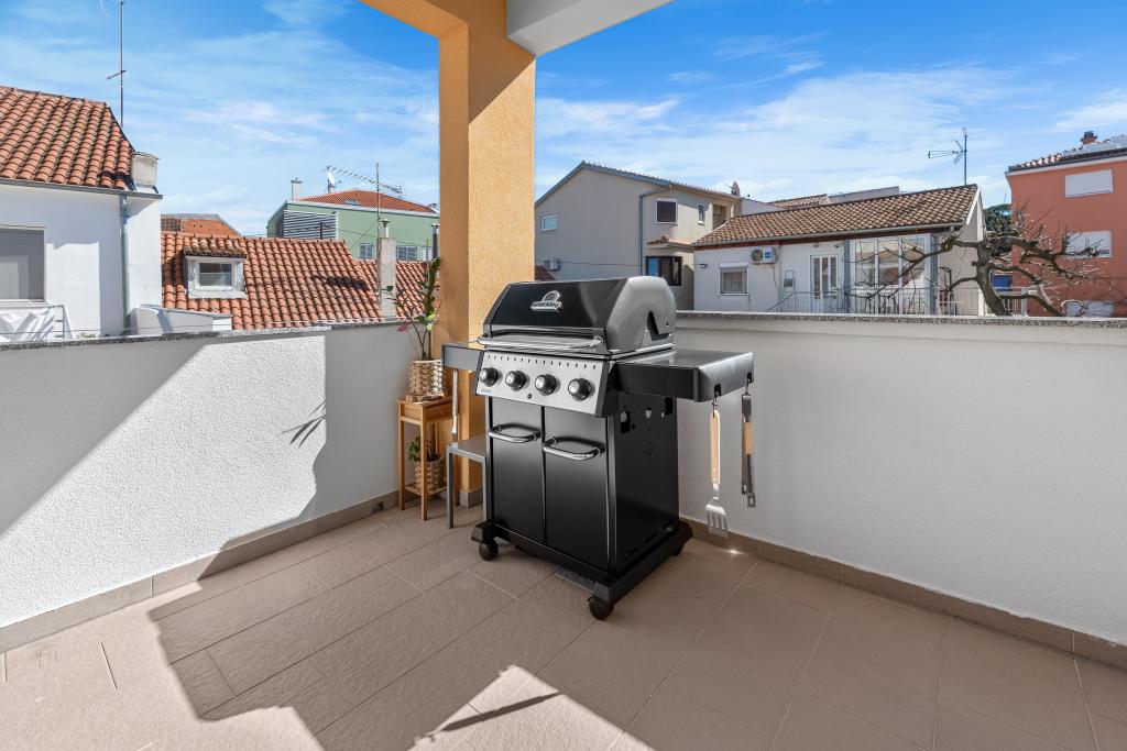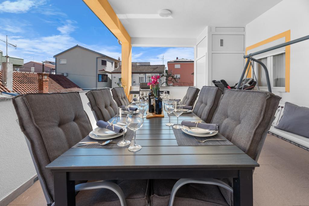 Apartament de inchiriat in centrul orasului Biograd na Moru. Ne ocupăm de turism din 1950. Apartamentul este complet utilat: aer conditionat, frigider cu congelator, cuptor, masina de spalat rufe, masina de spalat vase, max TV, Netflix, wifi, etc... In imediata apropiere de 100 de metri se afla plaja Dražica, care este si cea mai frumoasa plaja din Biograd și a primit steagul albastru pentru cele mai frumoase plaje din Marea Adriatică. Există, de asemenea, numeroase magazine, cafenele, restaurante, bănci și orice altceva în jurul nostru. Apartamentul are 3 stele si parcare pazita. Apartamentul ZARA este pentru max. 8 persoane și este situat la primul etaj al unei case de familie și are două dormitoare și un living mare cu o canapea extensibilă. În față este o terasă mare cu masă și scaune și un leagăn frumos pentru odihnă și bucurie de soare. Avem un pătuț dacă este nevoie.