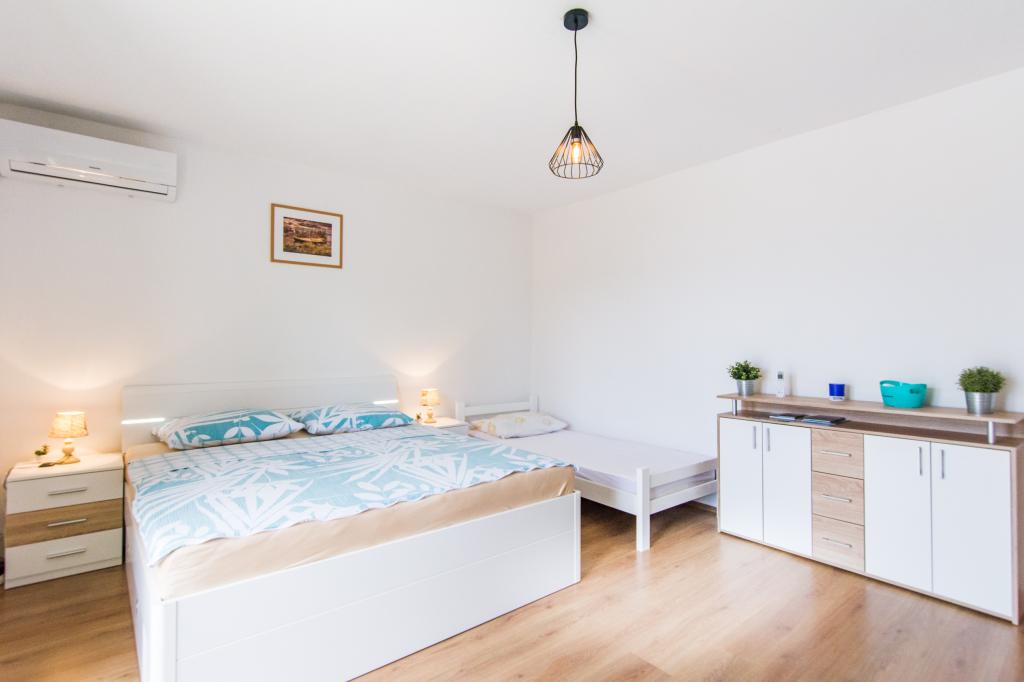 Bine ați venit la apartamentele și camerele RoLo. Plaja Bošana este situată chiar în fața casei. Pe plajă în sine, oaspeții noștri se pot angaja în activități sportive și există și facilități pentru copii - loc de joacă pentru copii, parc acvatic, sporturi acvatice. În cazul în care doriți să vă relaxați, să beți ceva sau să mâncați, o puteți face în cafenelele, restaurantele sau fast-food-urile din apropiere. Parcarea se afla chiar in fata casei, iar in curtea casei, langa gradina, este si un gratar, pe care oaspetii nostri il pot folosi liber. Recomandăm apartamentele și camerele noastre familiilor, cuplurilor și single-urilor. Pretul de cazare include taxa turistica, loc de parcare, utilizarea aerului conditionat, utilizarea internetului wireless si lenjerie de pat. Toate unitățile noastre de cazare au băi proprii cu toalete. Deoarece suntem situati aproape de centrul orasului, tot ce aveti nevoie este aproape de cazarea noastra si trebuie sa mergeti pe jos pana in centru in mai putin de 10 minute.