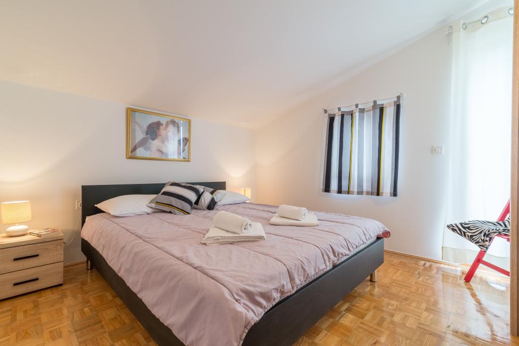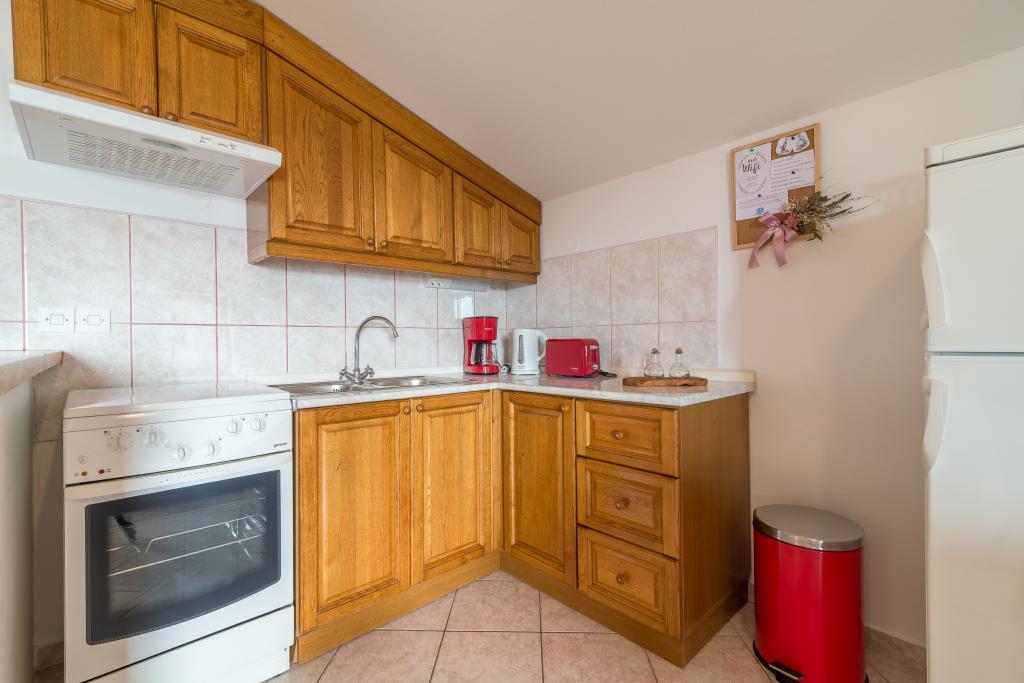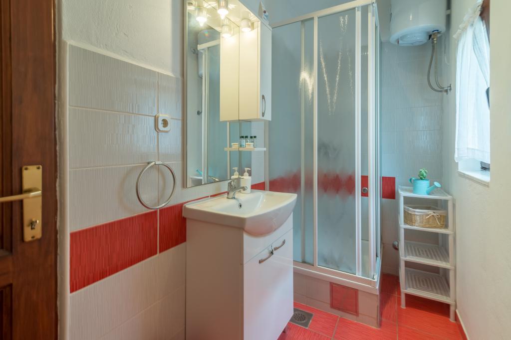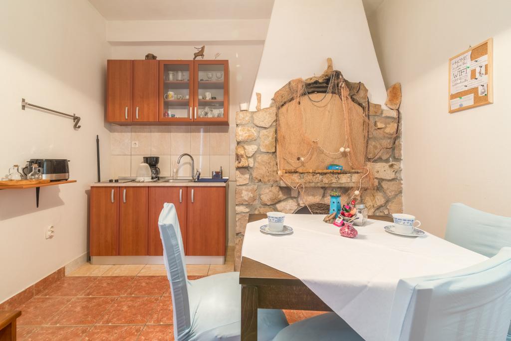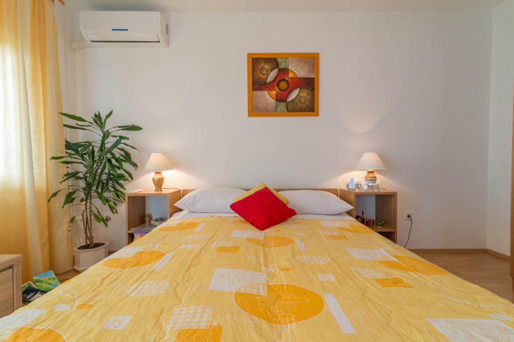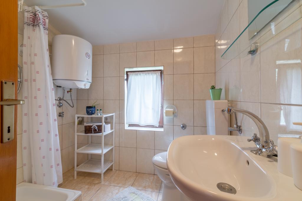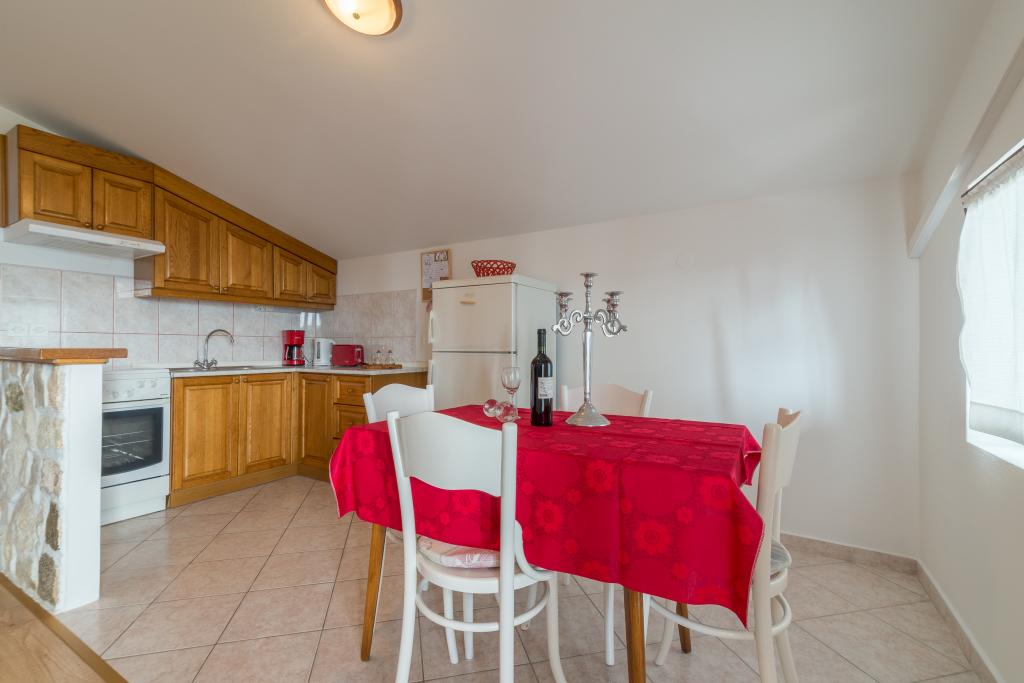 Casa de familie cu două apartamente și o clădire auxiliară cu un apartament. Apartament A2 smješšten este la primul etaj și este format din bucatarie, dormitor, baie si terasa cu vedere la mare. Apartament A4 +1 este situat la ultimul etaj, cu aer condiționat, două dormitoare cu paturi duble, baie, bucatarie si living, terasa cu vedere la mare. A2 +1 situat în clădirea auxiliară la parter, aer conditionat, bucatarie, dormitor (pat dublu cu pat suplimentar), baie, la 50 m de mare.