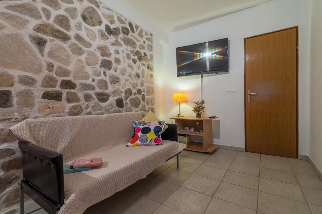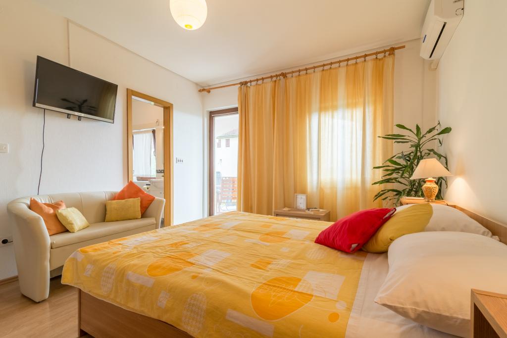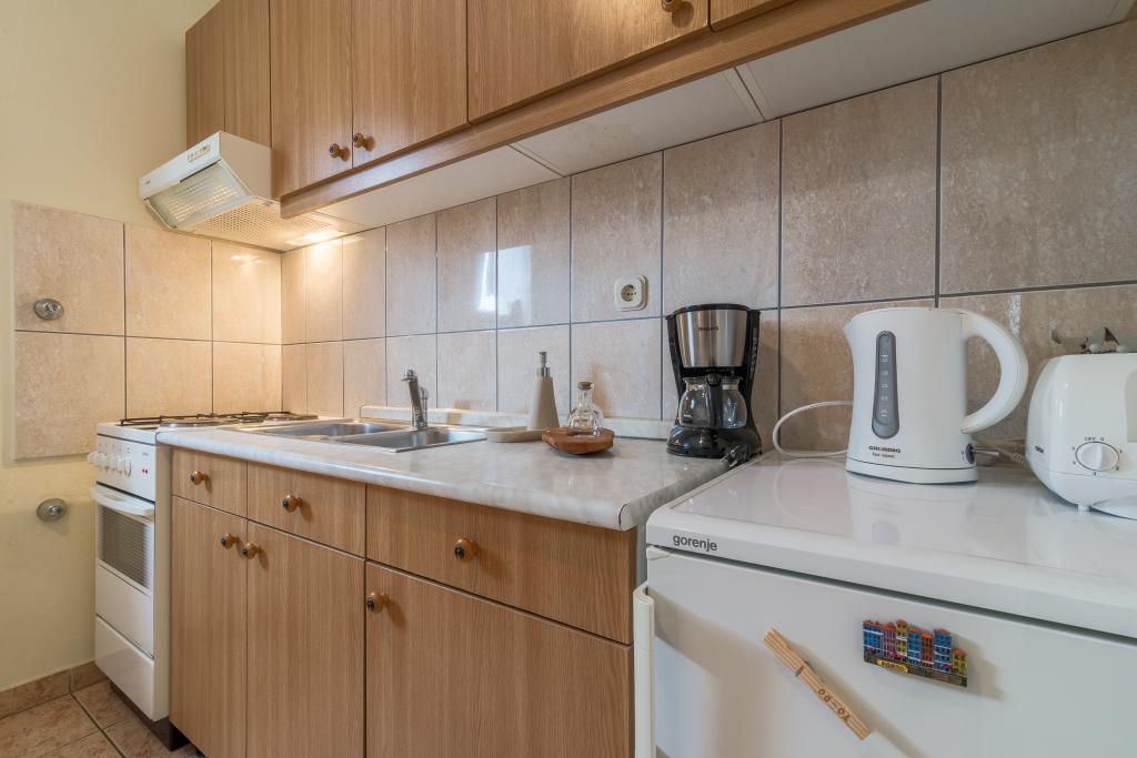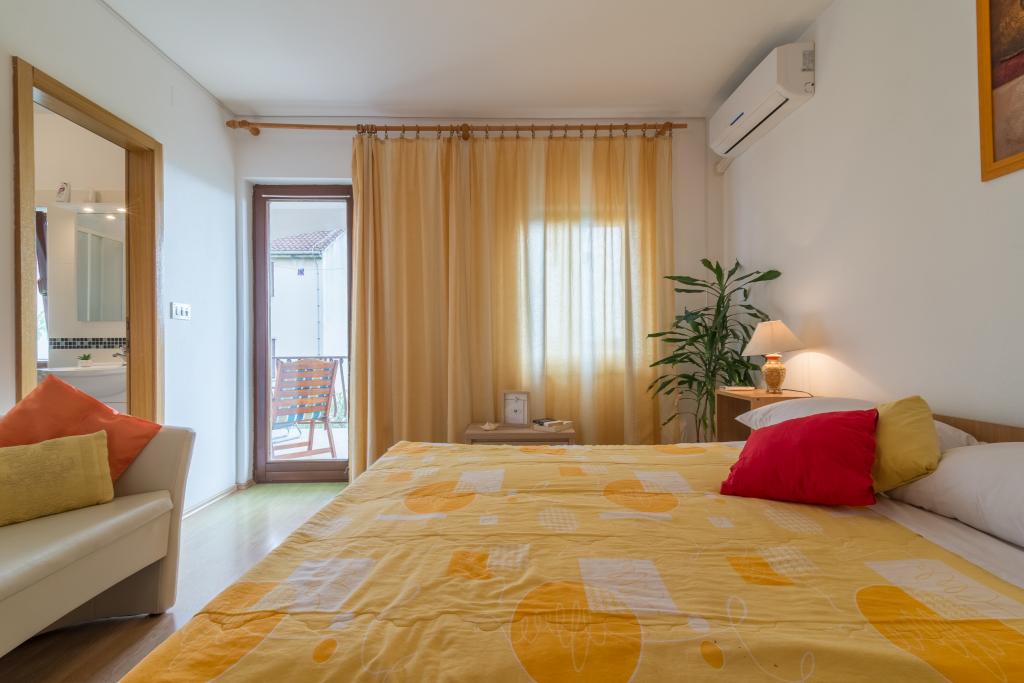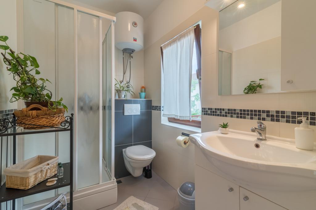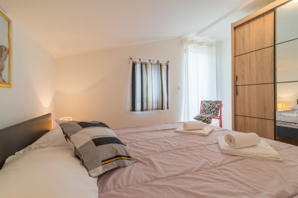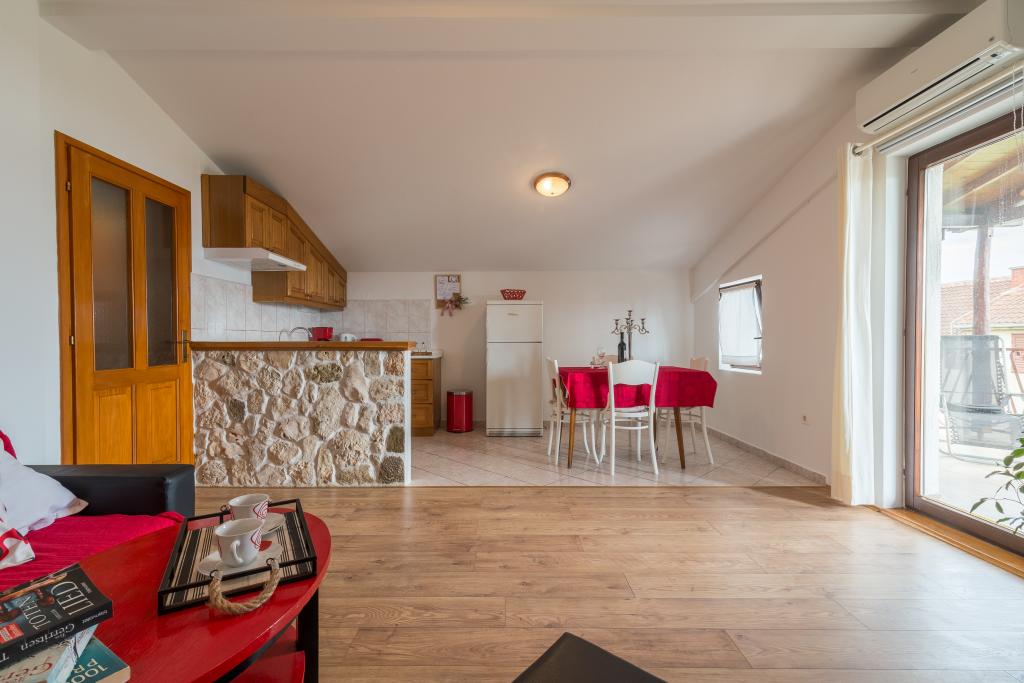 Casa de familie cu două apartamente și o clădire auxiliară cu un apartament. Apartament A2 smješšten este la primul etaj și este format din bucatarie, dormitor, baie si terasa cu vedere la mare. Apartament A4 +1 este situat la ultimul etaj, cu aer condiționat, două dormitoare cu paturi duble, baie, bucatarie si living, terasa cu vedere la mare. A2 +1 situat în clădirea auxiliară la parter, aer conditionat, bucatarie, dormitor (pat dublu cu pat suplimentar), baie, la 50 m de mare.