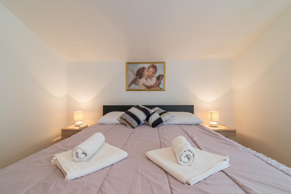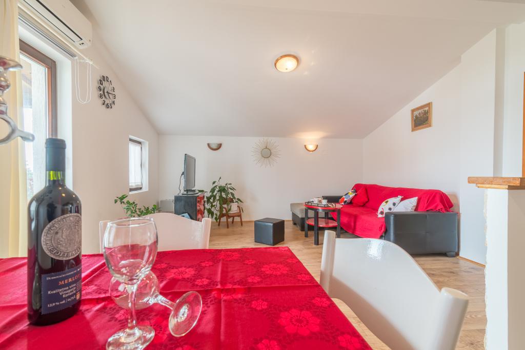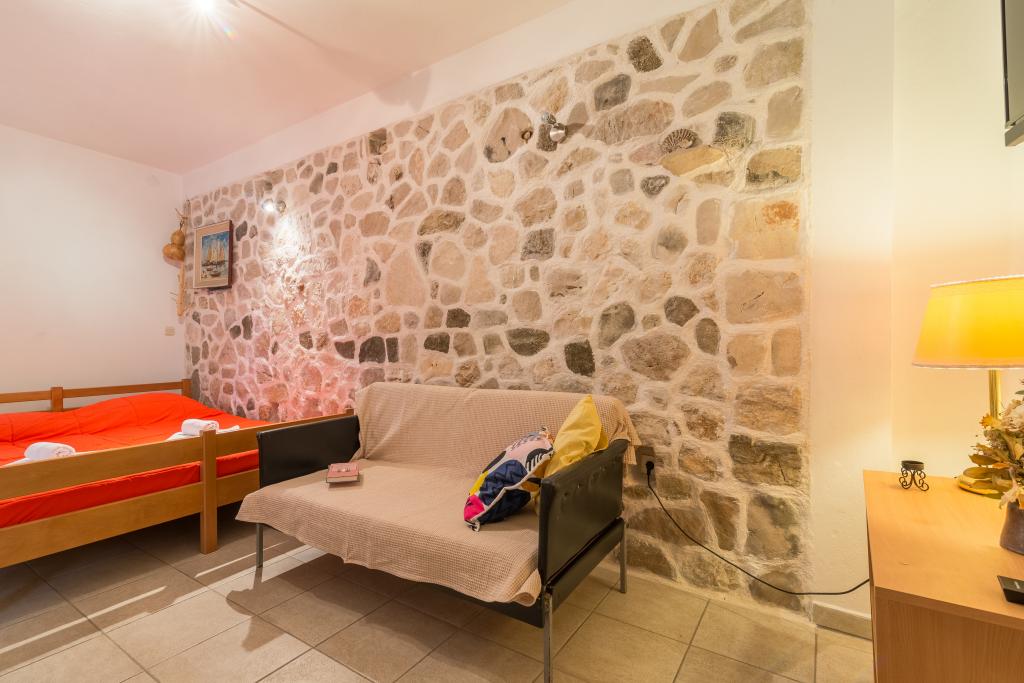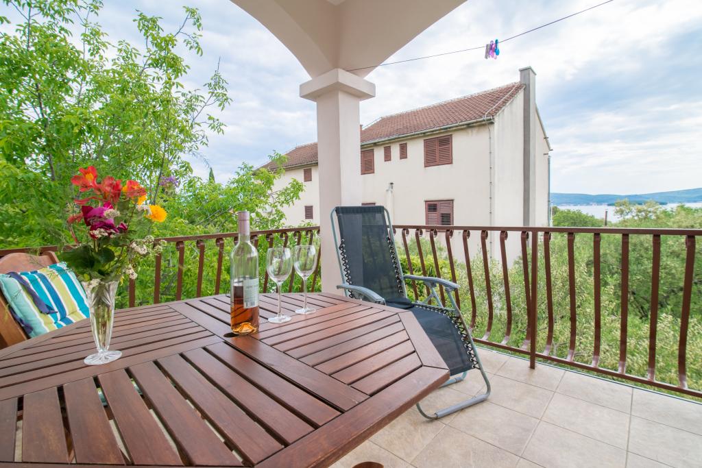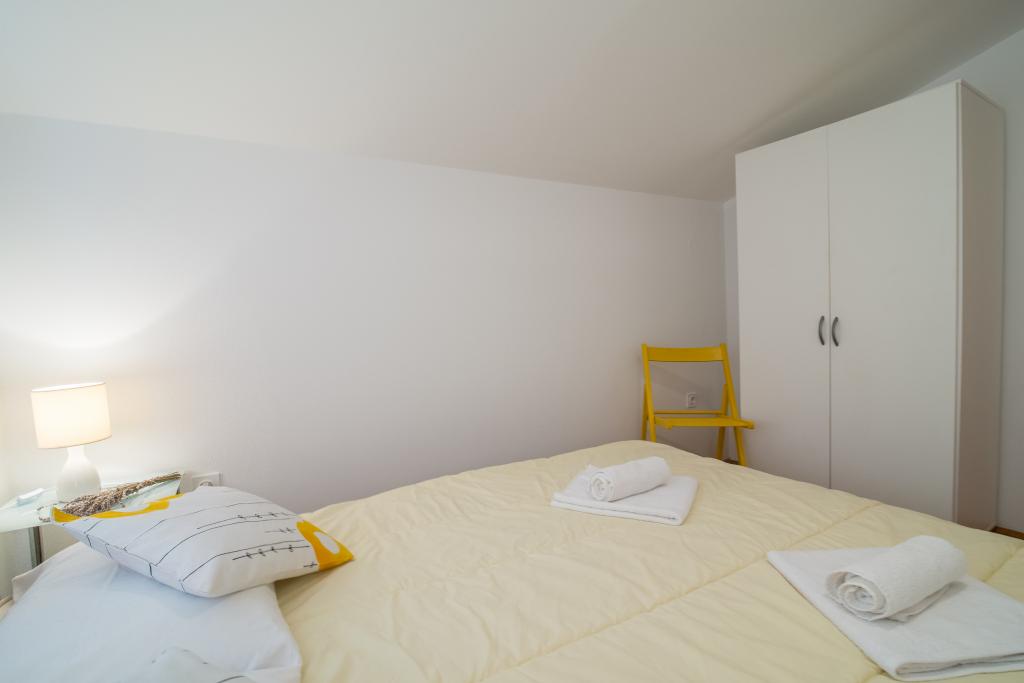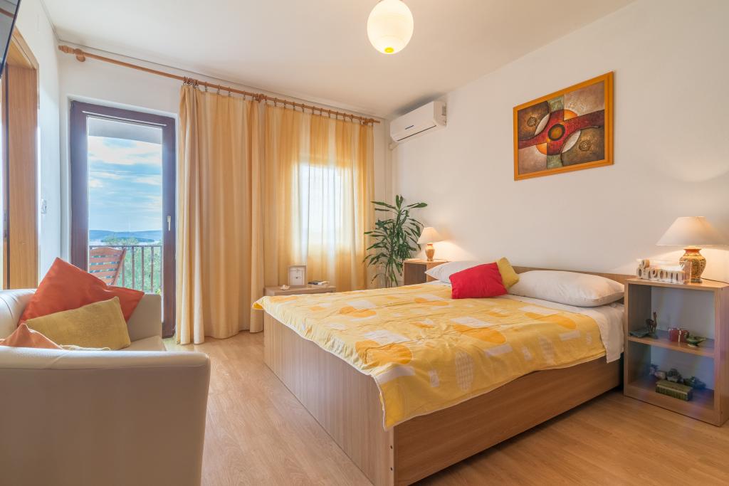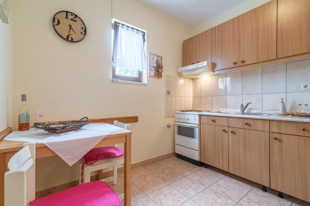 Casa de familie cu două apartamente și o clădire auxiliară cu un apartament. Apartament A2 smješšten este la primul etaj și este format din bucatarie, dormitor, baie si terasa cu vedere la mare. Apartament A4 +1 este situat la ultimul etaj, cu aer condiționat, două dormitoare cu paturi duble, baie, bucatarie si living, terasa cu vedere la mare. A2 +1 situat în clădirea auxiliară la parter, aer conditionat, bucatarie, dormitor (pat dublu cu pat suplimentar), baie, la 50 m de mare.