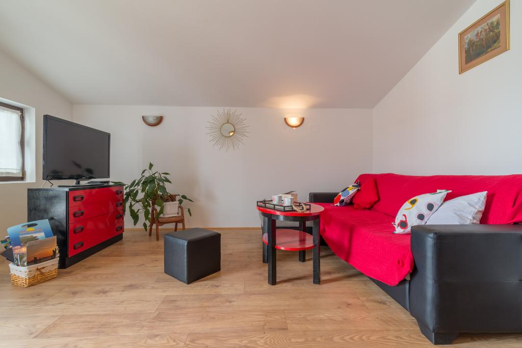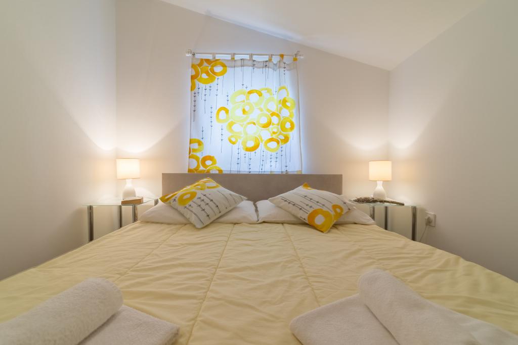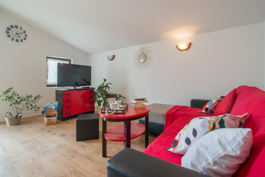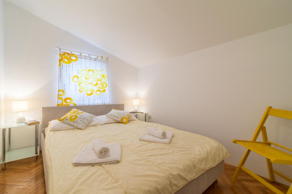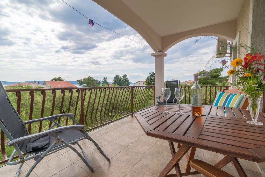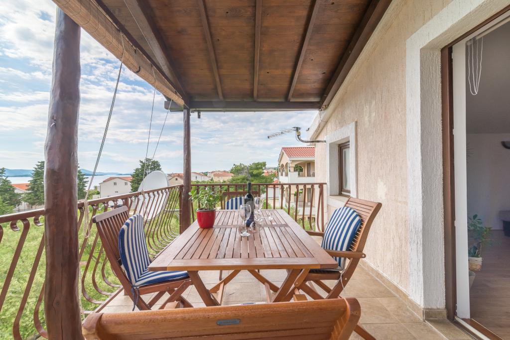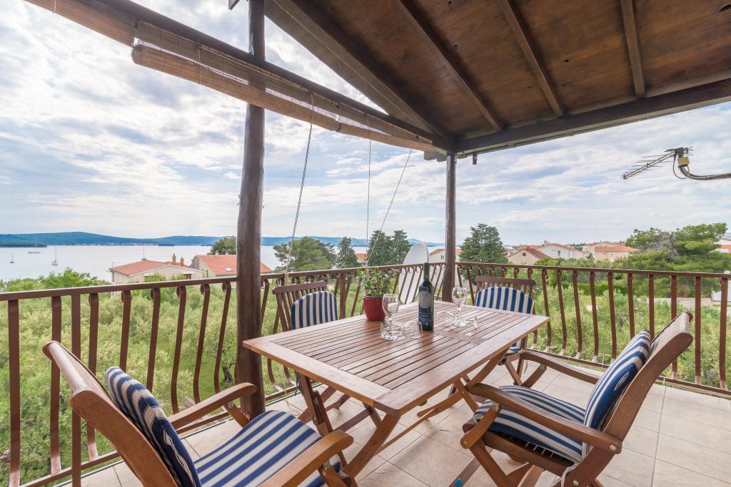 Casa de familie cu două apartamente și o clădire auxiliară cu un apartament. Apartament A2 smješšten este la primul etaj și este format din bucatarie, dormitor, baie si terasa cu vedere la mare. Apartament A4 +1 este situat la ultimul etaj, cu aer condiționat, două dormitoare cu paturi duble, baie, bucatarie si living, terasa cu vedere la mare. A2 +1 situat în clădirea auxiliară la parter, aer conditionat, bucatarie, dormitor (pat dublu cu pat suplimentar), baie, la 50 m de mare.