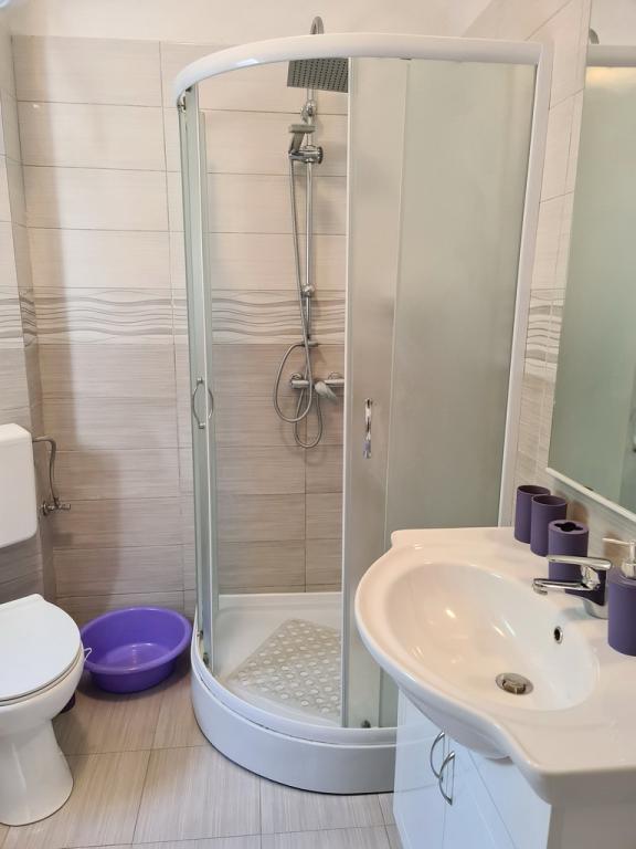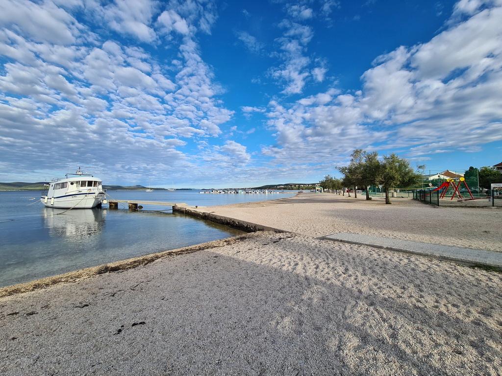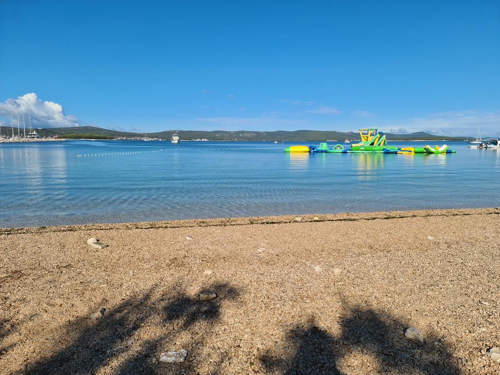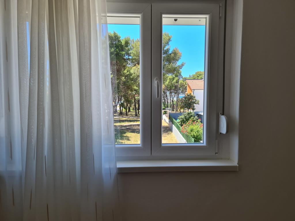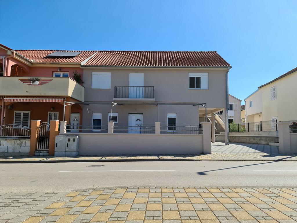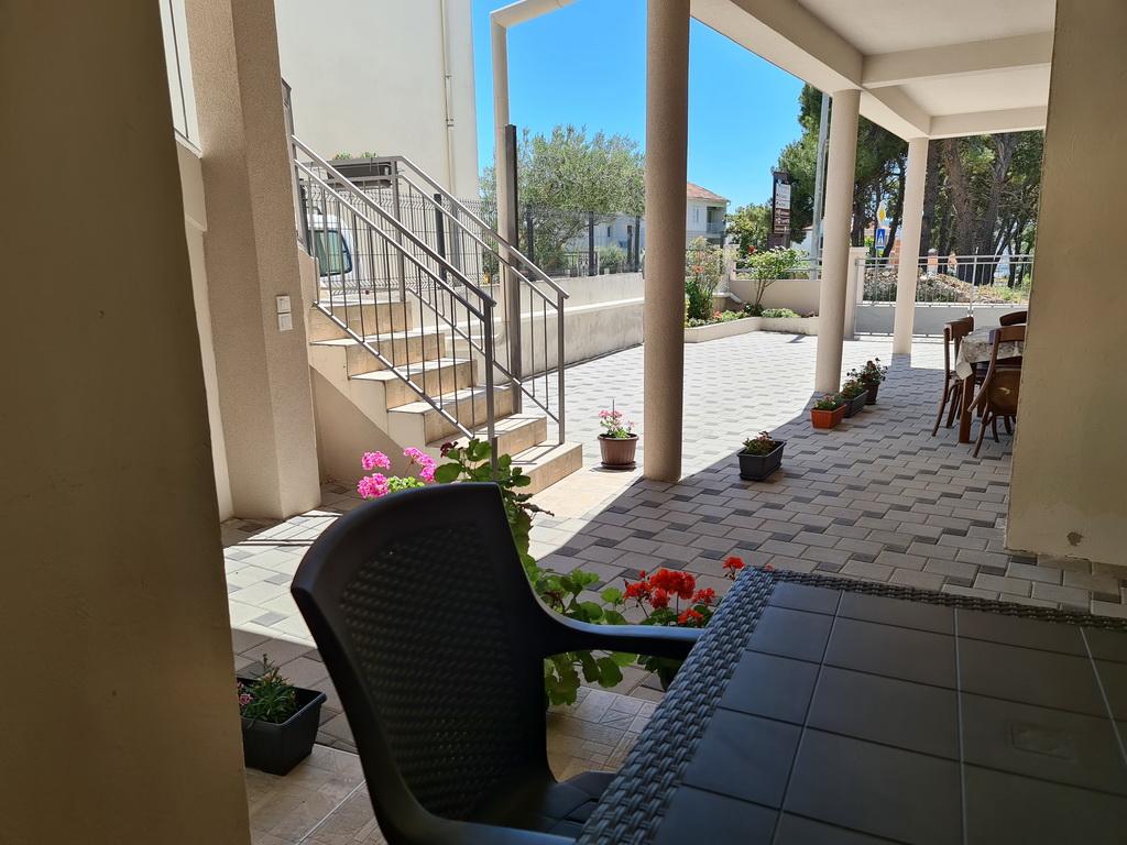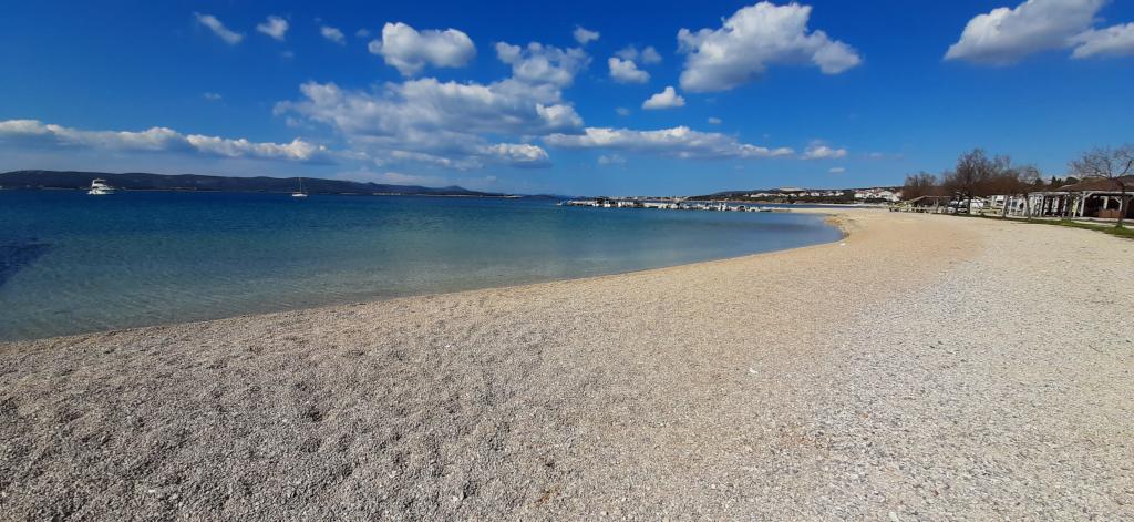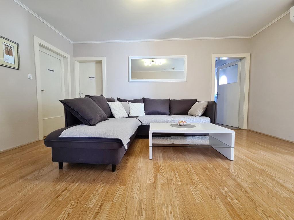Închiriez un apartament situat la primul etaj al unei case de familie. Este format dintr-o bucătărie cu zonă de luat masa, două dormitoare, fiecare având o baie mică, cămară și hol. Sala de mese are acces la o terasă spațioasă cu vedere la grădină, care oferă oaspeților liniște și intimitate. Parcarea este într-o curte împrejmuită, la umbra viței de vie. Casa este la trei minute de mers pe jos de plaja cu pietricele, la un minut de magazin, la aproximativ zece minute de centru și de malul apei.