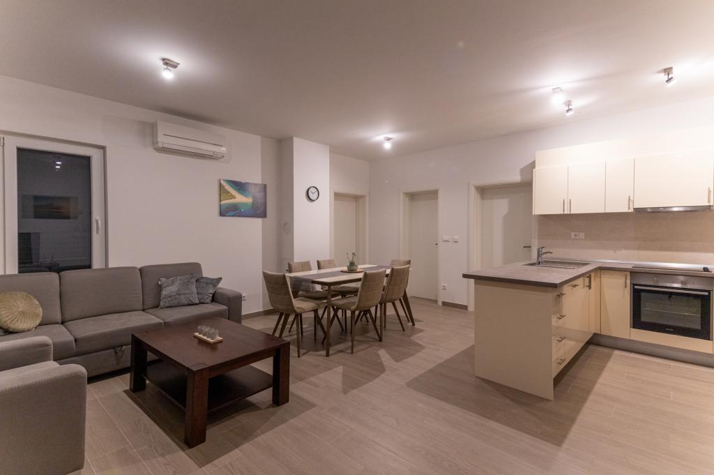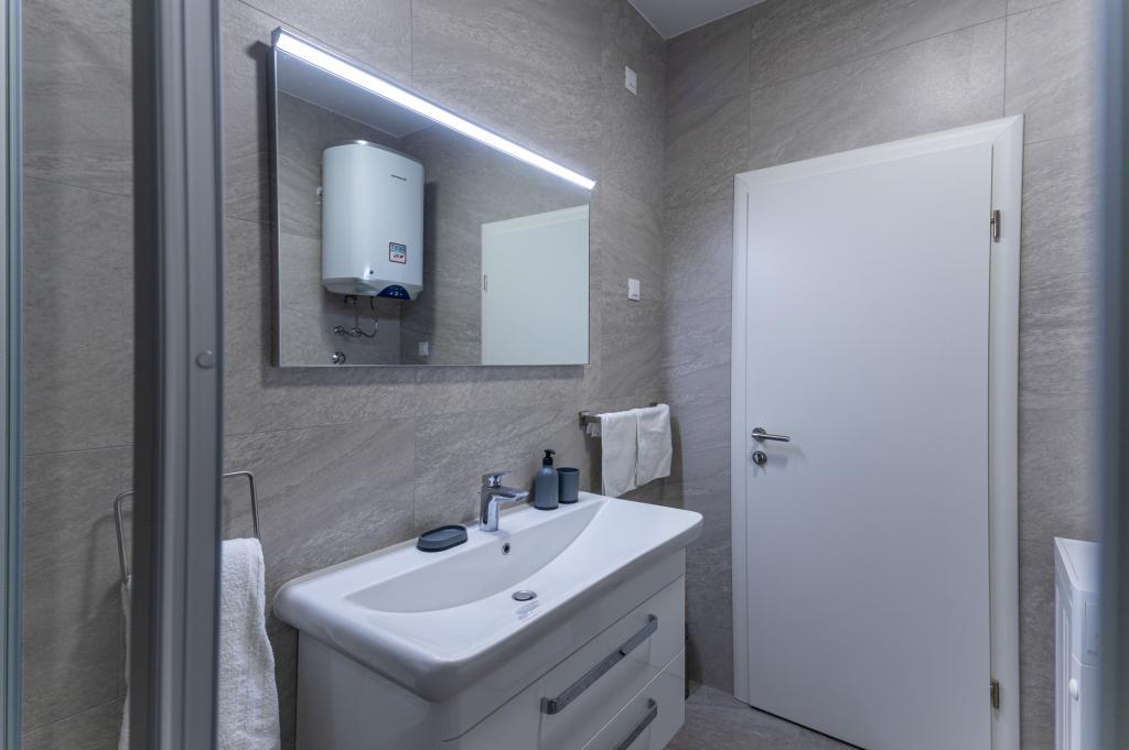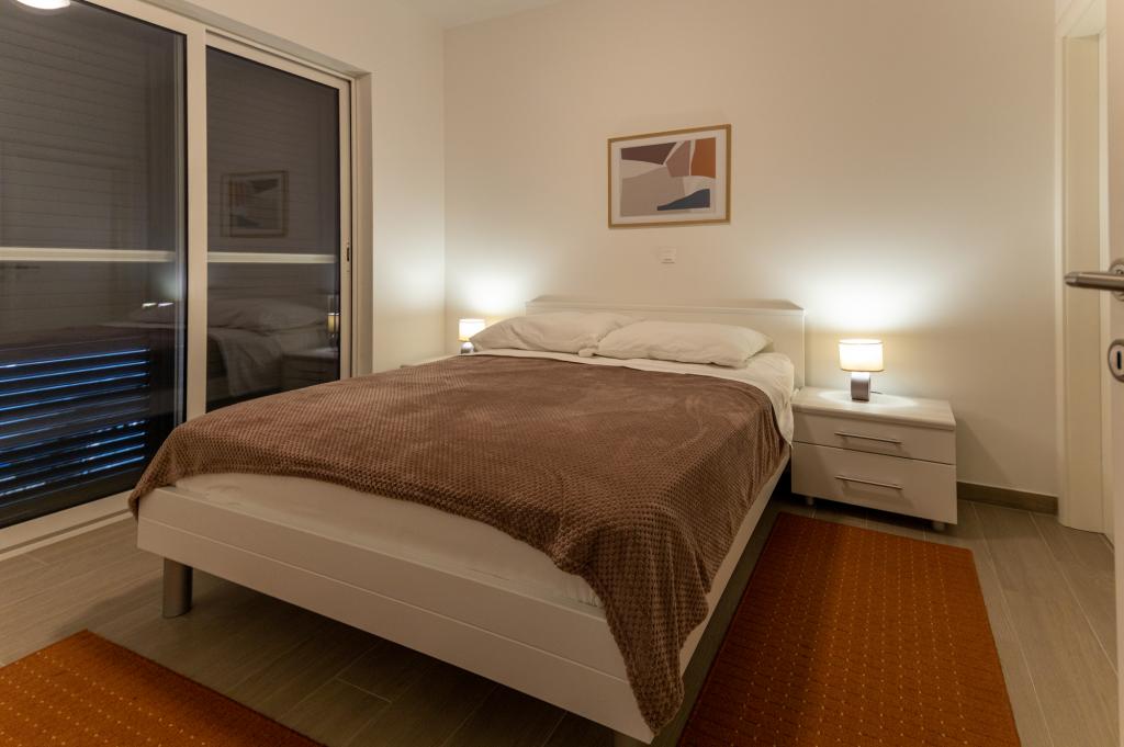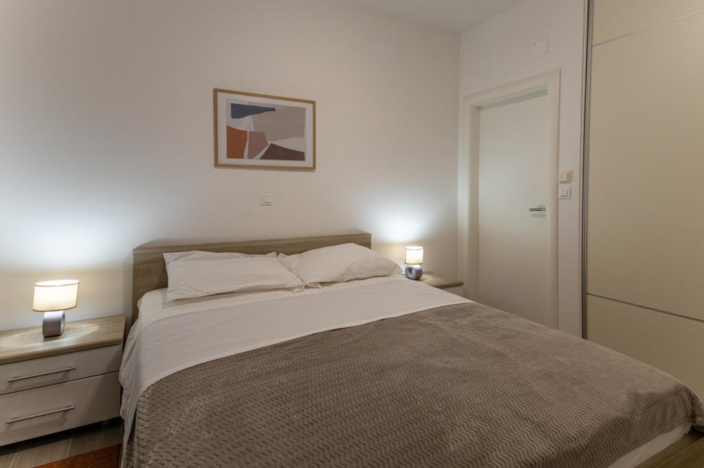 Apartament dotat modern într-o zonă liniștită a orașului, la doar 60 de metri de plaja principală a orașului Dražica și de centrul acvatic Ilirija (piscina). Apartamentul a fost construit in 2018, fiecare camera dispune de o baie moderna cu dus. În apartament există și o mașină de spălat, iar un grătar mare și confortabil este în zona comună a curții. Parcarea este in curtea comuna, care este imprejmuita. Mai avem două apartamente la Prominska 1. și oferim parcare gratuită la Tina Ujevića 37. https://www.apartmanija.hr/apartmani/biograd-na-moru/apartmani-lu-i-lu/32186