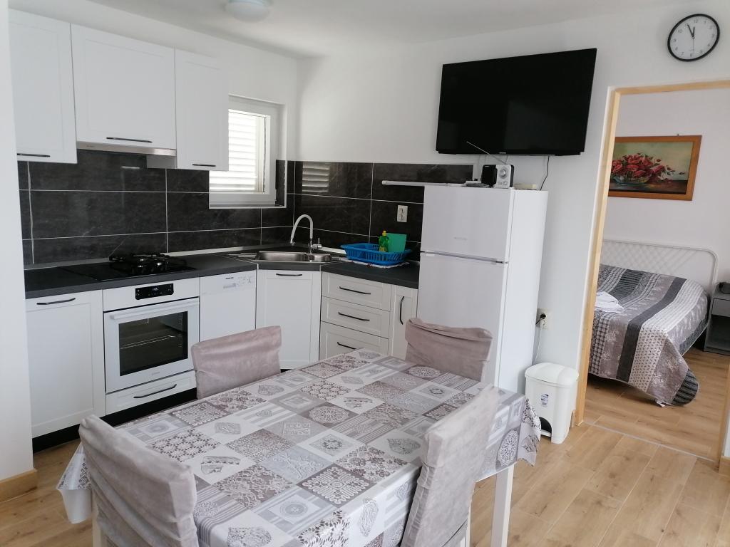 Apartamentul este situat în centrul orașului, aproape de plaja Dražice, magazine, autogară. Apartamentul A4+2 are două dormitoare (dimensiunile patului 180*190 și 160*200), iar în living există o canapea (dimensiunile patului 140x200), are o baie și o toaletă. Apartamentul este situat la etajul al doilea și are o suprafață de 115 metri pătrați, are două balcoane. De pe balcon se poate vedea insula Pašman. Parcare în curte, wi-fi, TV, aer condiționat, mașină de spălat vase, mașină de spălat rufe, plase de țânțari... Apartamentul A2+1 are un dormitor (dimensiunile patului 160*200), baie și bucătărie cu living (canapea 120*190). În apartament aveți aer condiționat, mașină de spălat rufe, mașină de spălat vase, plase de țânțari, TV, parcare în curte. Terasa este în fața apartamentului.