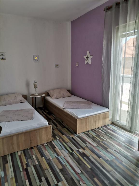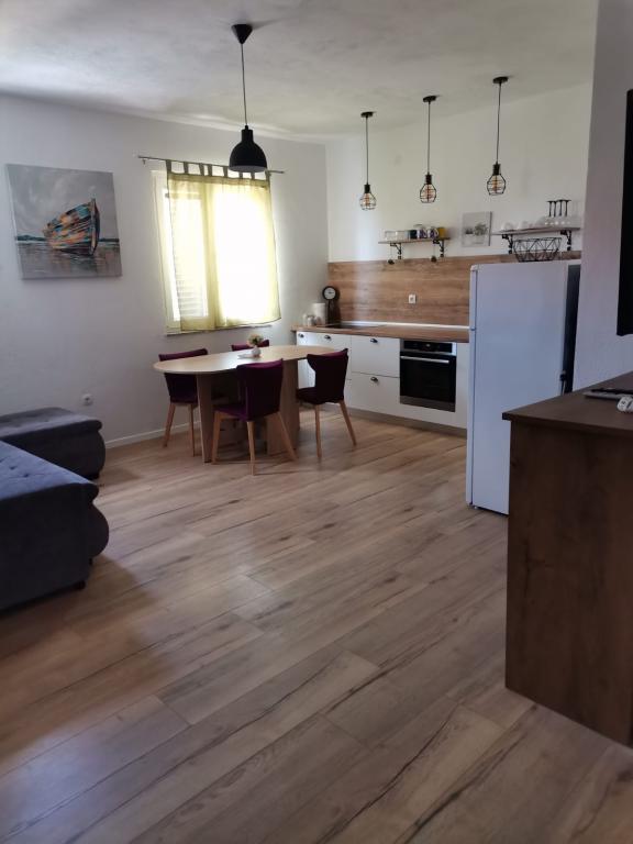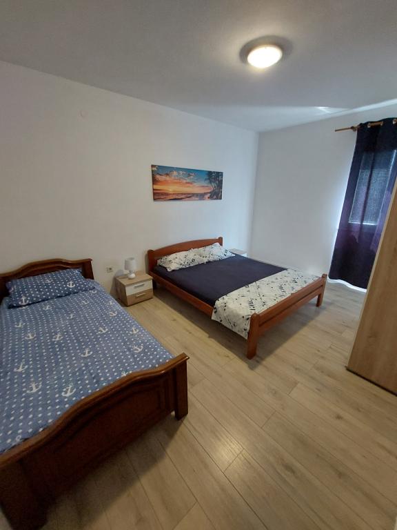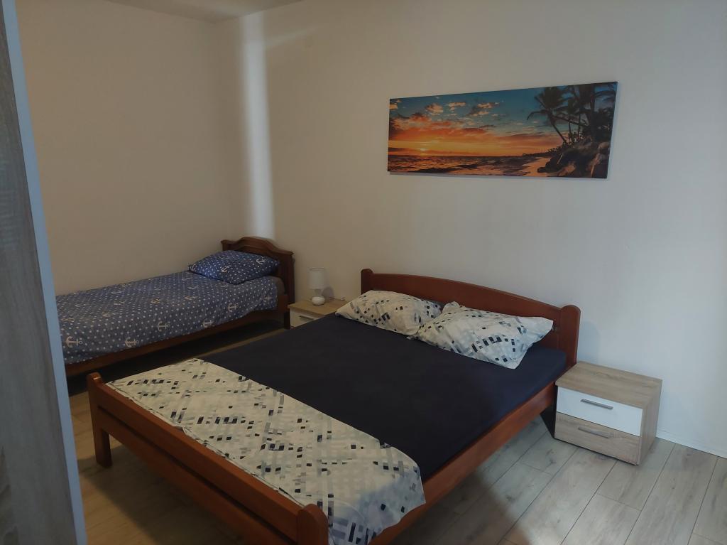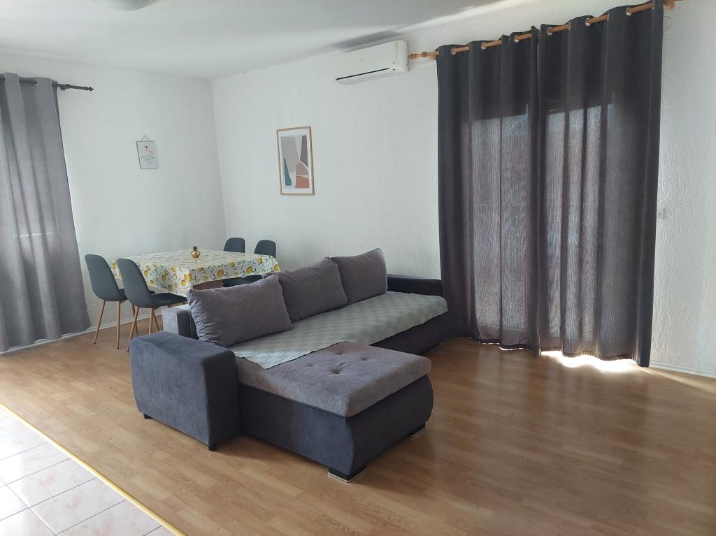 Apartamentele sunt situate la 10 minute de centru până la plajă, în doar 3 minute. De asemenea, în apropiere sunt Centrul comercial Bure și Konzum. Apartamentele sunt echipate cu toate lucrurile necesare pentru o ședere plăcută (aer condiționat, toate aparatele de bucătărie). Parcarea este situată în fața apartamentului, iar terasa mare oferă o vedere la mare. Fiecare apartament are un balcon mare, iar în fiecare dormitor fiecare cameră are balcon propriu și vedere la mare. Locația apartamentului se află într-o zonă liniștită a orașului, departe de zgomotul și muzica puternică a cluburilor de noapte. Apartamentul este spațios și oferă tot ce aveți nevoie pentru o vacanță plăcută și plăcută în inima Dalmației.