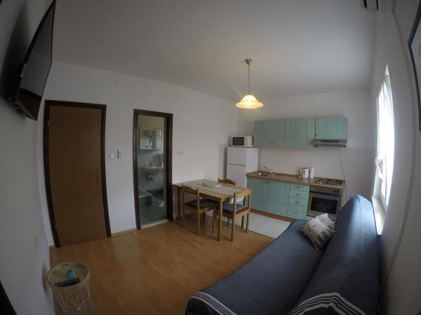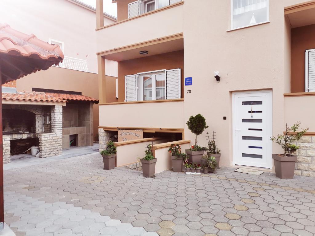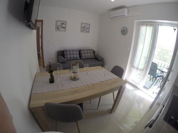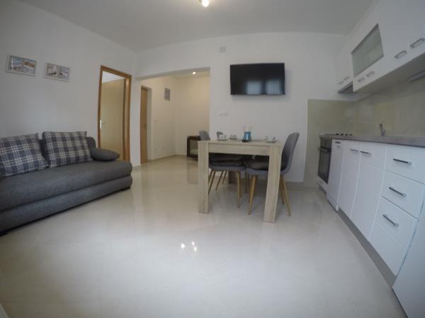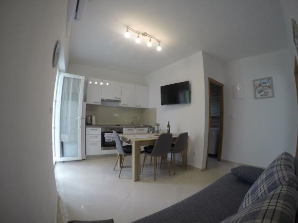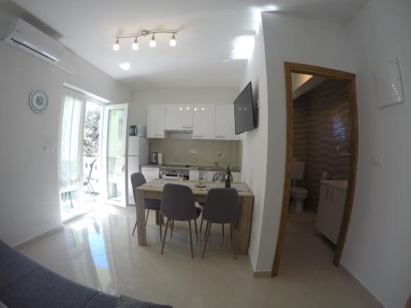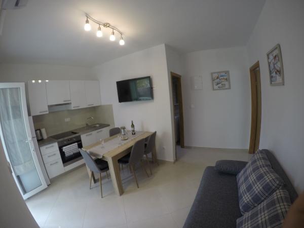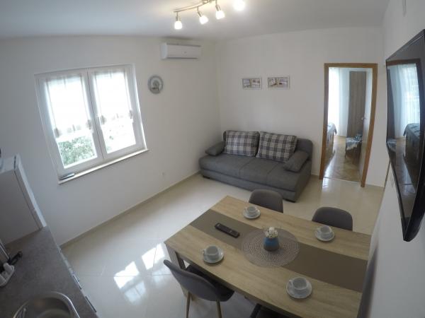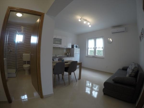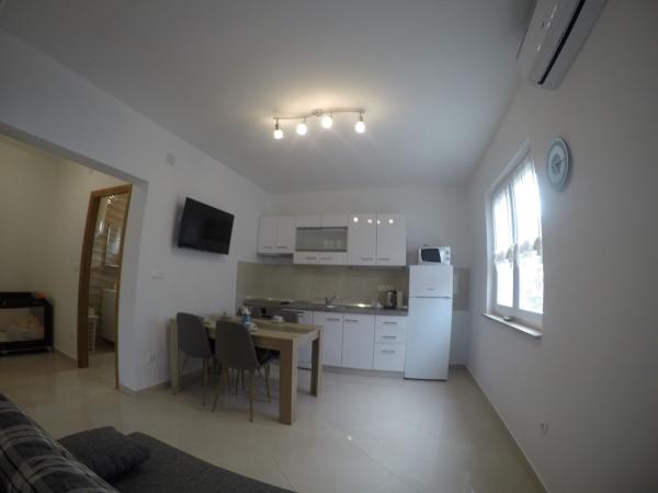 Apartamentele Maslina sunt situate într-o parte liniștită a orașului, la aproximativ 10 minute de mers pe jos până la cea mai apropiată plajă Soline. Casa are 4 apartamente, 3 x dimensiuni 40 m2 cu balcoane și terase, 1 x 45 m2 cu balcon. Toate apartamentele sunt dotate cu aer condiționat, WIFI gratuit, sat, / TV, loc de parcare și grătar în curte și facilități potrivite pentru copii mici. Pentru familiile mai mari este posibil să închiriați mai multe apartamente vacante simultan, iar pentru un număr mai mic de persoane prețul este mai favorabil.