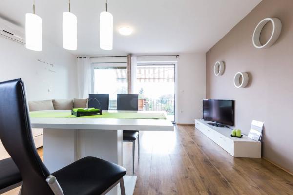 Apartamentul este incredibil de frumos și confortabil, cu echipamente atât de mult noi și utile (masina de spalat vase, filtru de cafea, cuptor, frigider mare cu congelator, aer condiționat, TV, Wi-Fi ...). Totul este curat și frumos decorate. Există, de asemenea doua balcoane spațioase. Locul de amplasare a apartamentului este mare - se poate ajunge în centrul orașului în 5 minute de mers pe jos, portul de agrement și plajă Bosana sunt, de asemenea, foarte aproape, dar nu există nici un zgomot, astfel încât să puteți bucura de vacanța dumneavoastră în pace prin zi și noapte. Magazin alimentar este chiar după colț. Proprietarii sunt foarte amabili, ele oferă prosoape curate la fiecare două sau trei zile. Vă recomandăm stau aici!