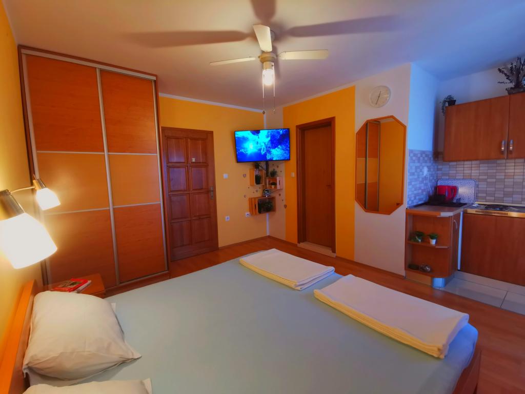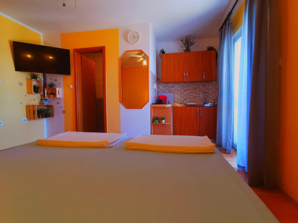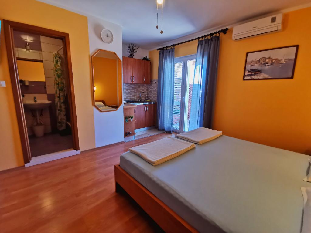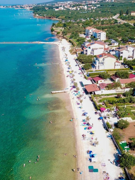 Apartamente pe plajă Roza situate pe primul rând de plaja Bošana într-o curte plină de verdeață, aproape de toate facilitățile. Magazine, restaurante și baruri sunt situate în imediata apropiere, centrul orașului este la mai puțin de 10 minute de mers pe jos. Parcare securizata in curte pentru vehicule de dimensiuni standard.