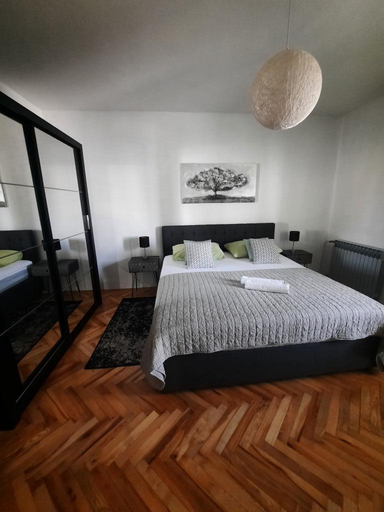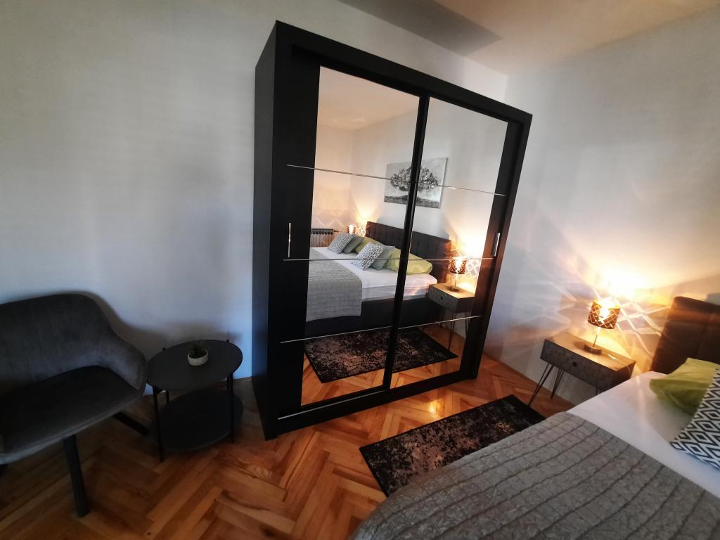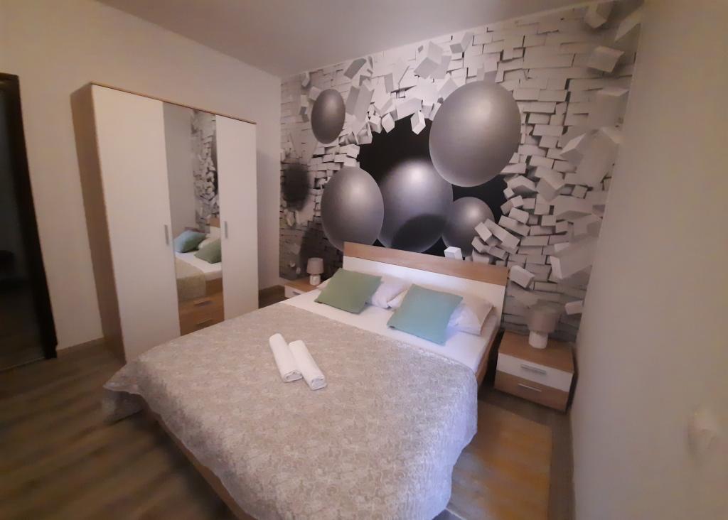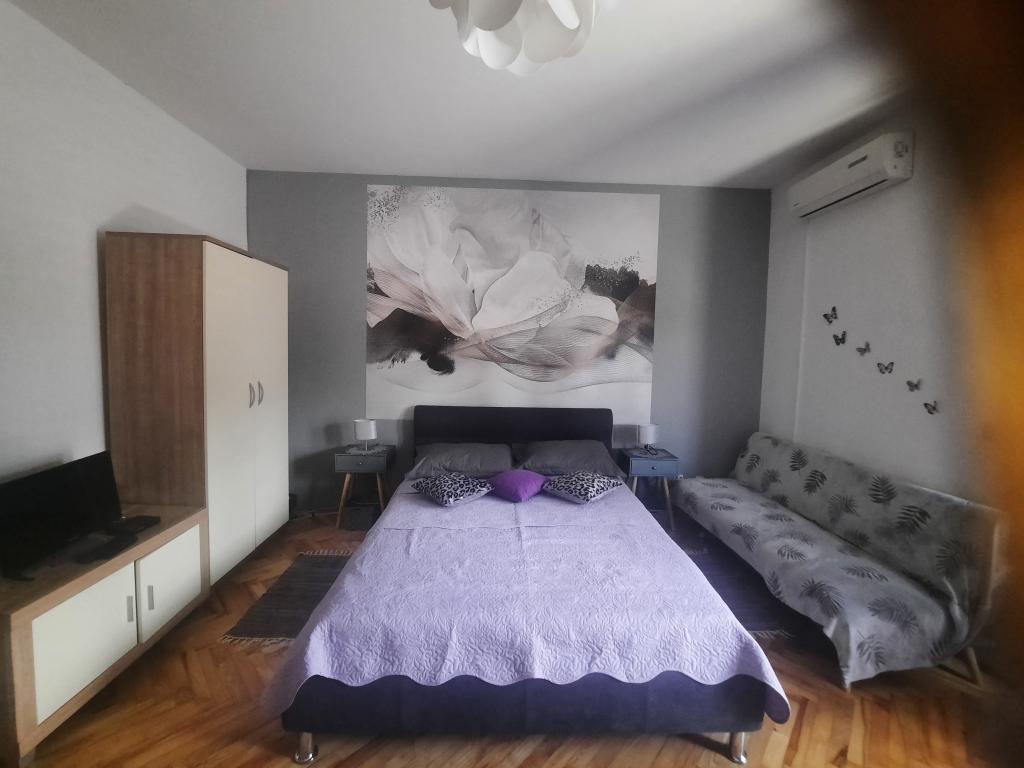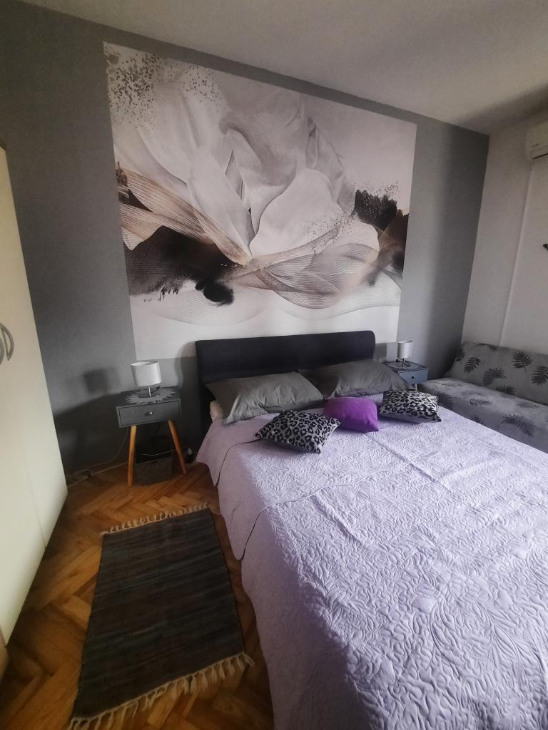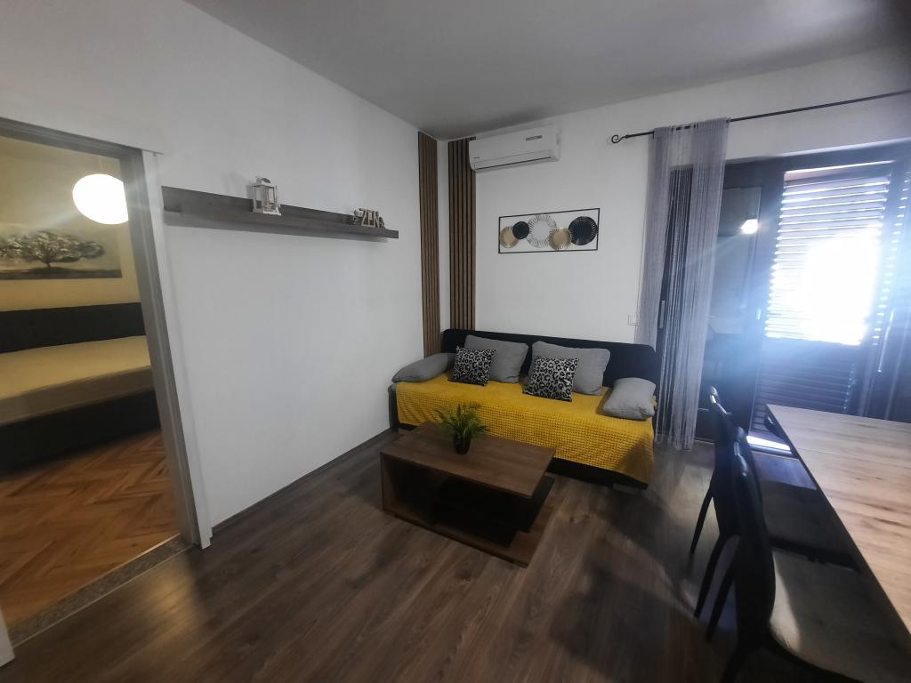 Apartamentele sunt situate într-o casă privată cu grădină și parcare împrejmuită pentru fiecare vehicul și posibilitatea de a folosi un grătar Sub aplicație, la 3,4 minute, sunt plaje cu o pădure de pini bine întreținută, o promenadă lungă și toate celelalte. (parc de distractii, cluburi de noapte, standuri, magazine, locuri de joaca) , centar..) totul este la o distanta de max 5 minute de mers usor. Așadar, nu va trebui să porniți mașina, cu excepția principalelor cumpărături din centre precum Lidl, Kaufland etc., care se află la intrarea în oraș. 1.Aplicația A4-apartament cu două camere cu balcon în living care poate fi extins la nevoie, și o terasă de 30 m2, dispune de mașină de spălat vase și mașină de spălat rufe și două aparate de aer condiționat 2.Aplicația 2+2-constă dintr-un dormitor și o cameră de zi cu o canapea extensibilă cu spumă cu memorie și doi adulți pot dormi confortabil acolo și are acces la două balcoane. 3. Apartamentul A2+1, un apartament confortabil cu un pat dublu și, la nevoie, o canapea extensibilă, are și balcon. Toate aplicațiile sunt complet echipate (vase și accesorii complete, hârtie igienică, săpun lichid, detergent pentru vase, bureți, prosoape...