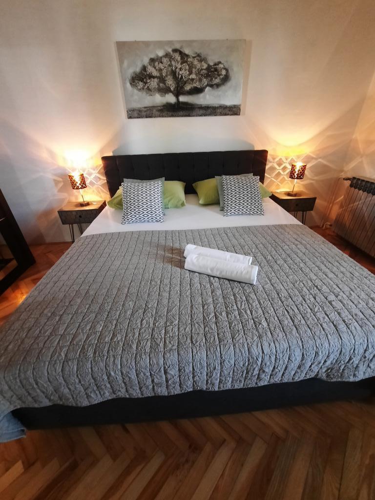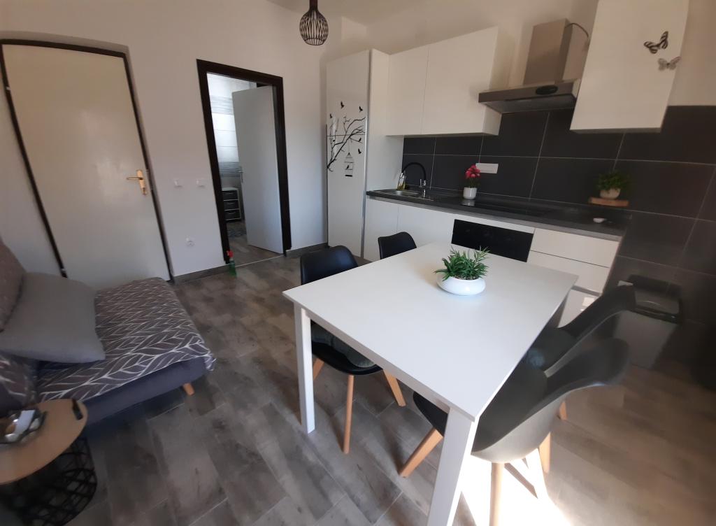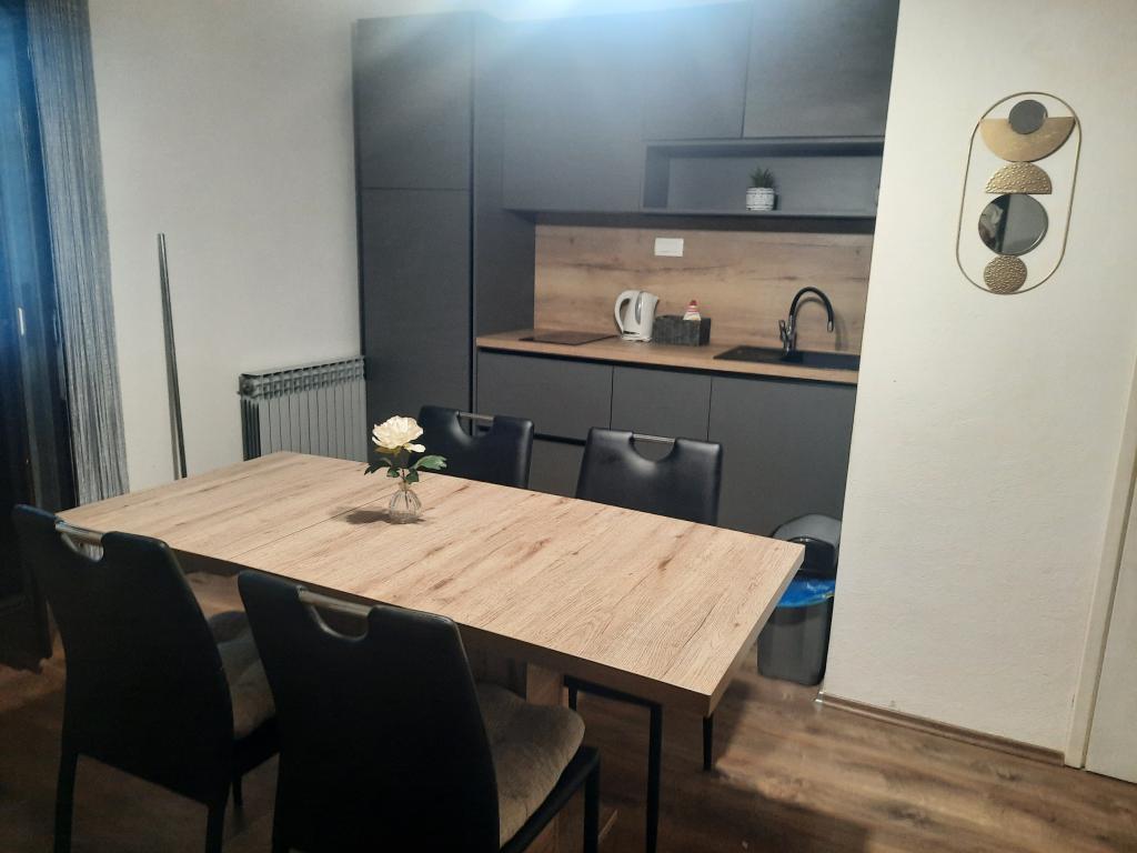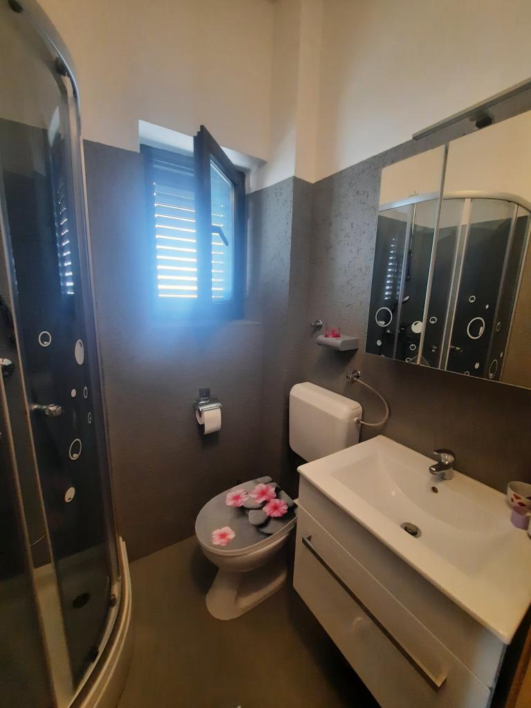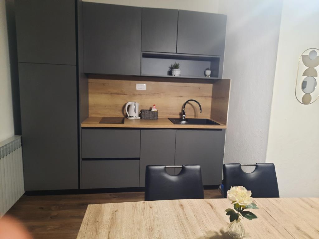 Apartamentele sunt situate într-o casă privată cu grădină și parcare împrejmuită pentru fiecare vehicul și posibilitatea de a folosi un grătar Sub aplicație, la 3,4 minute, sunt plaje cu o pădure de pini bine întreținută, o promenadă lungă și toate celelalte. (parc de distractii, cluburi de noapte, standuri, magazine, locuri de joaca) , centar..) totul este la o distanta de max 5 minute de mers usor. Așadar, nu va trebui să porniți mașina, cu excepția principalelor cumpărături din centre precum Lidl, Kaufland etc., care se află la intrarea în oraș. 1.Aplicația A4-apartament cu două camere cu balcon în living care poate fi extins la nevoie, și o terasă de 30 m2, dispune de mașină de spălat vase și mașină de spălat rufe și două aparate de aer condiționat 2.Aplicația 2+2-constă dintr-un dormitor și o cameră de zi cu o canapea extensibilă cu spumă cu memorie și doi adulți pot dormi confortabil acolo și are acces la două balcoane. 3. Apartamentul A2+1, un apartament confortabil cu un pat dublu și, la nevoie, o canapea extensibilă, are și balcon. Toate aplicațiile sunt complet echipate (vase și accesorii complete, hârtie igienică, săpun lichid, detergent pentru vase, bureți, prosoape...