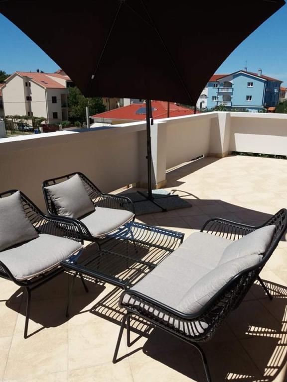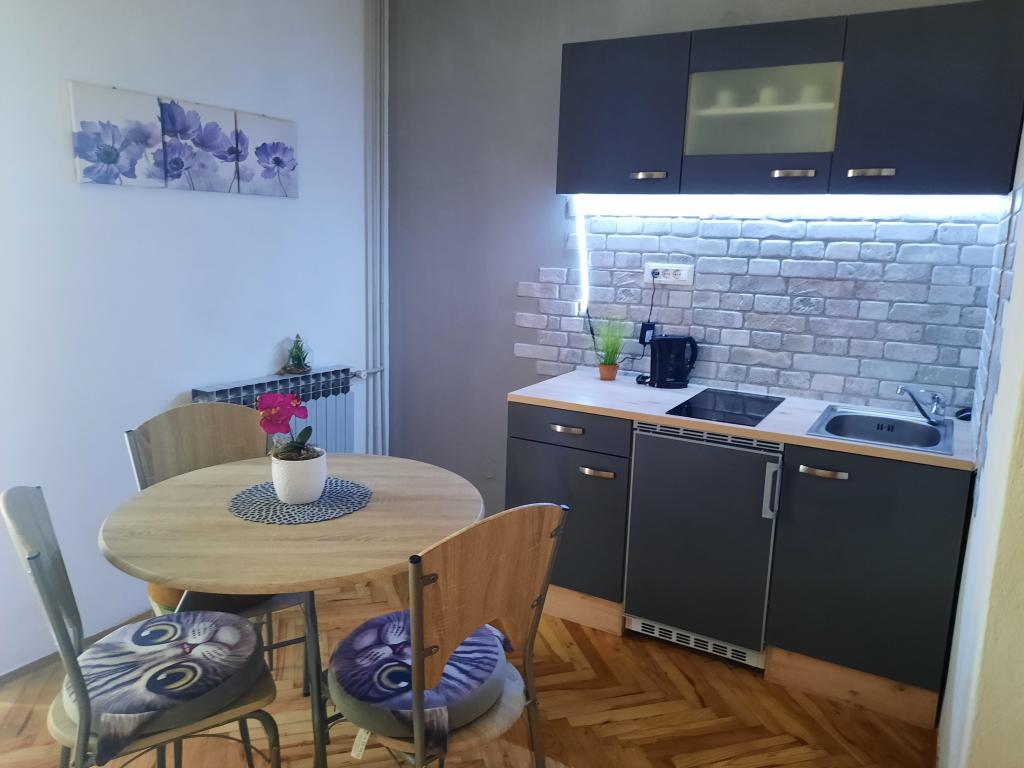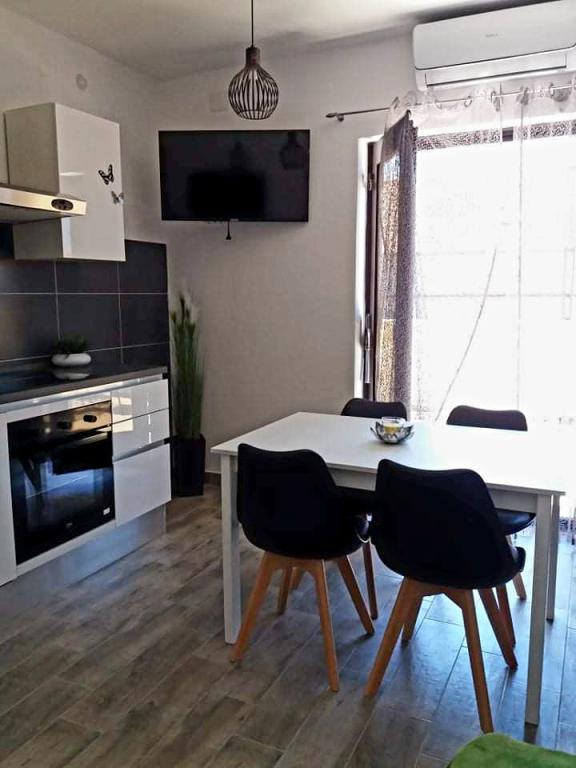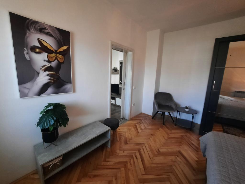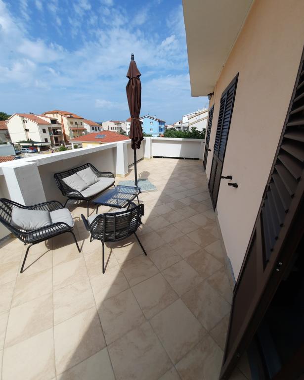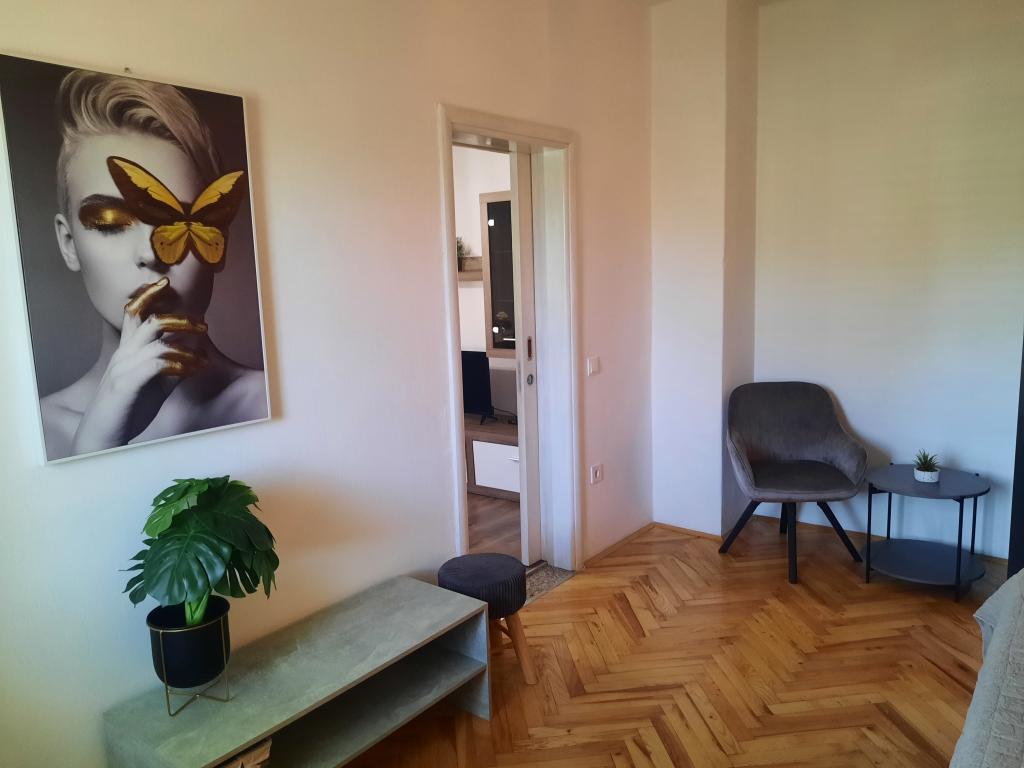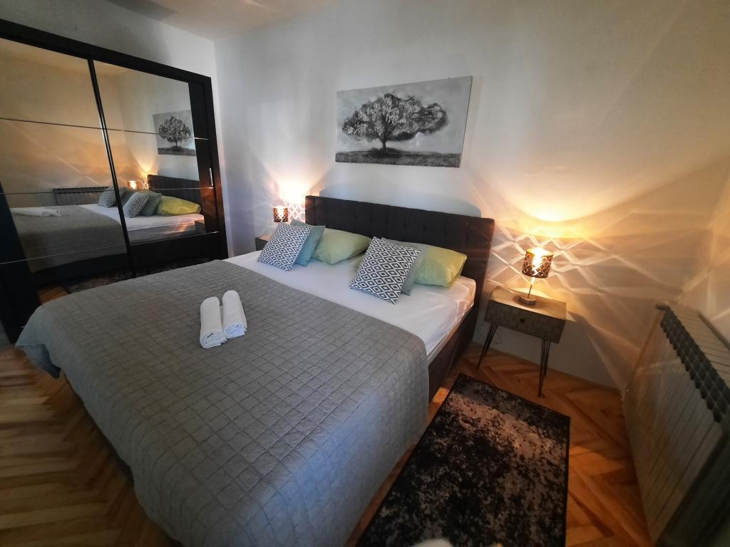 Apartamentele sunt situate într-o casă privată cu grădină și parcare împrejmuită pentru fiecare vehicul și posibilitatea de a folosi un grătar Sub aplicație, la 3,4 minute, sunt plaje cu o pădure de pini bine întreținută, o promenadă lungă și toate celelalte. (parc de distractii, cluburi de noapte, standuri, magazine, locuri de joaca) , centar..) totul este la o distanta de max 5 minute de mers usor. Așadar, nu va trebui să porniți mașina, cu excepția principalelor cumpărături din centre precum Lidl, Kaufland etc., care se află la intrarea în oraș. 1.Aplicația A4-apartament cu două camere cu balcon în living care poate fi extins la nevoie, și o terasă de 30 m2, dispune de mașină de spălat vase și mașină de spălat rufe și două aparate de aer condiționat 2.Aplicația 2+2-constă dintr-un dormitor și o cameră de zi cu o canapea extensibilă cu spumă cu memorie și doi adulți pot dormi confortabil acolo și are acces la două balcoane. 3. Apartamentul A2+1, un apartament confortabil cu un pat dublu și, la nevoie, o canapea extensibilă, are și balcon. Toate aplicațiile sunt complet echipate (vase și accesorii complete, hârtie igienică, săpun lichid, detergent pentru vase, bureți, prosoape...