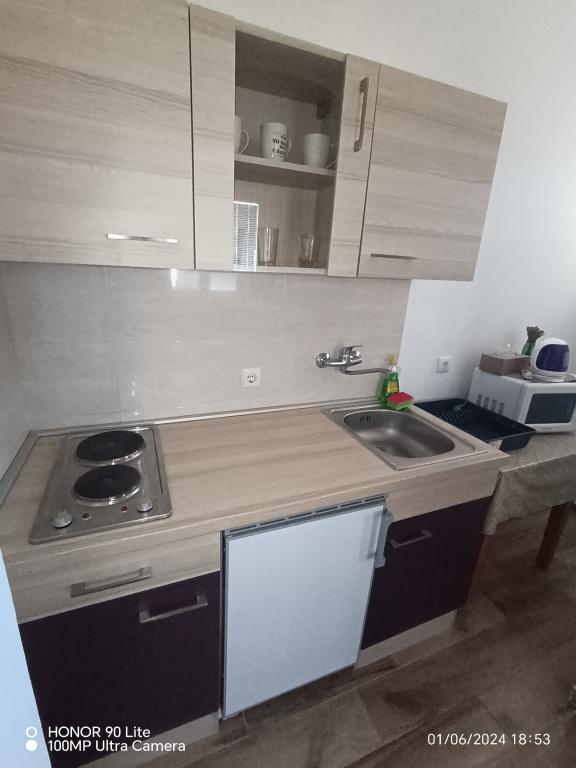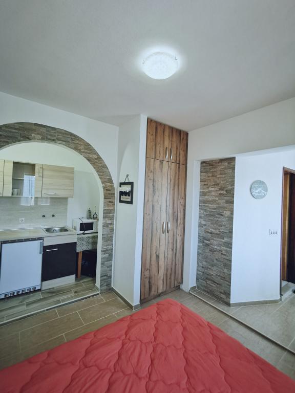 Apartamentul în sine nu este nimic deosebit. Al doilea dezastru pe canapea dormitor. Prea scump pentru ceea ce oferă. De pe terasă, o vedere directă a unui fel de cinema de vară, care este prea zgomotos și durează până la miezul nopții. Proprietarul nu este prietenos, în loc de o băutură de bun venit, m-a întâmpinat cu o întrebare să-i dau bani imediat (deși plăteam în mod regulat un avans). Singurul pozitiv este locația. Nu o recomand.