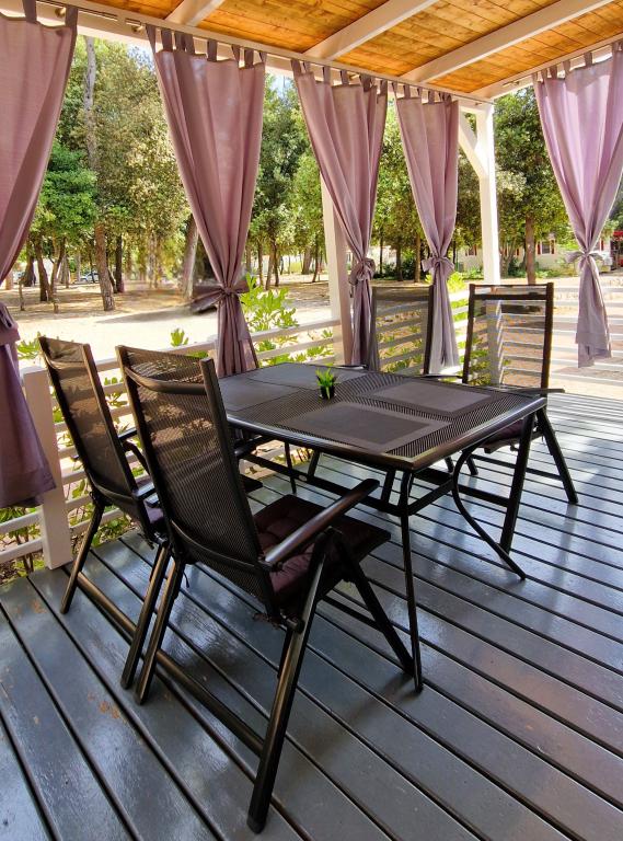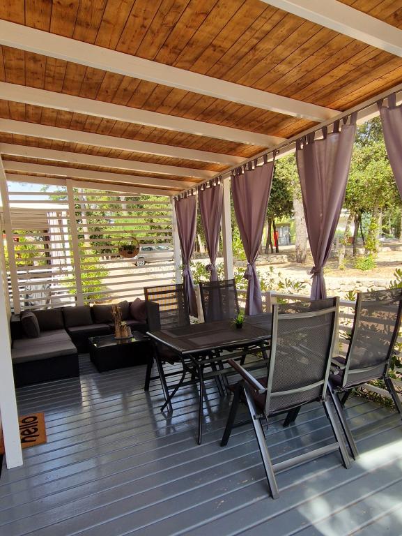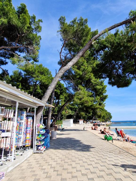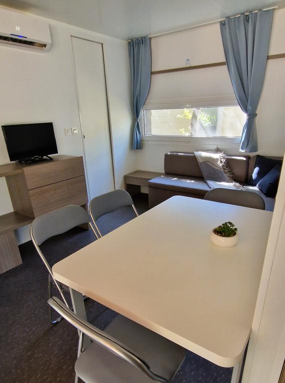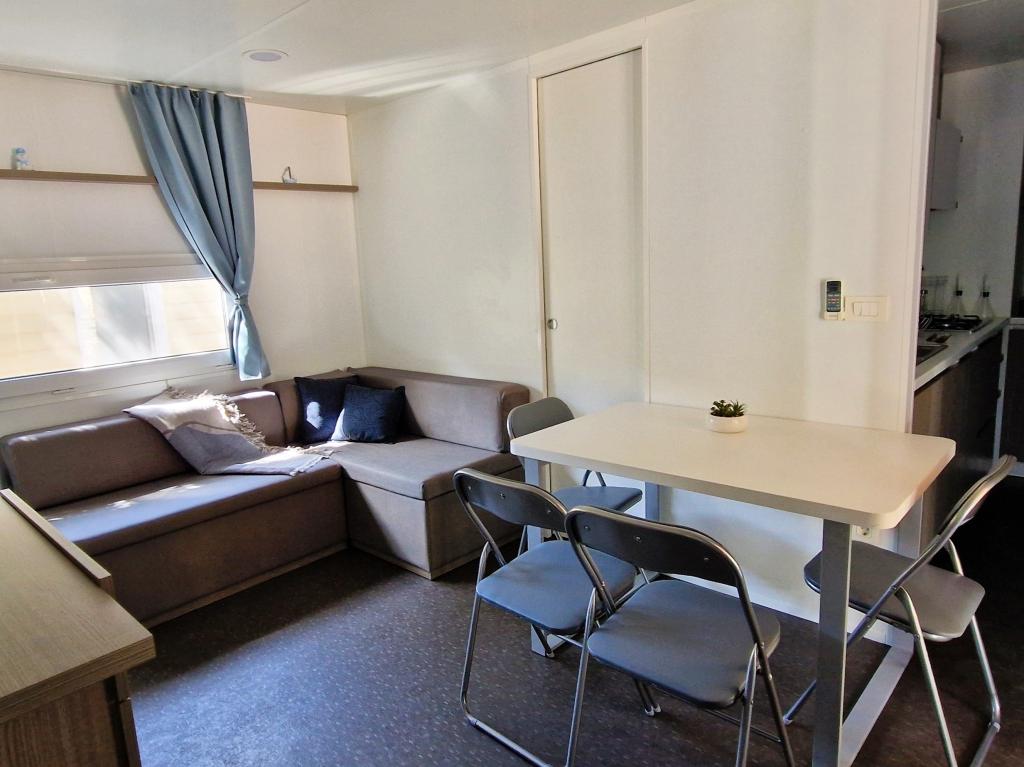 Bun venit la rulota ARIA, situată în frumosul camping Soline Park, la umbra unei păduri dense de pini, chiar lângă una dintre cele mai frumoase coaste ale Mării Adriatice. Locația oferă o combinație ideală de liniște naturală și apropierea de toate facilitățile - centrul orașului Biograd poate fi accesat în doar 15 minute printr-o plimbare relaxantă de-a lungul promenadei de coastă bine întreținute. De-a lungul întregii coaste a campingului există plaje cu pietriș și nisip, precum și numeroase cafenele, restaurante, magazine și alte atracții turistice. Rulota ARIA este situată la numărul 693 și este complet echipată pentru un sejur plăcut și lipsit de griji în familie. Conține două dormitoare separate, un living cu pat extensibil, o bucătărie cu zonă de luat masa și o terasă spațioasă, sigură pentru copii. Aer condiționat, TV, loc de parcare privat, mașină de spălat. Cazarea este potrivită în special pentru familiile cu copii - terasa este împrejmuită, iar împrejurimile sunt liniștite și naturale. Campingul are, de asemenea, un parc de distracții, un loc de joacă pentru copii, un club pentru copii și diverse animații în timpul zilei și al serii.