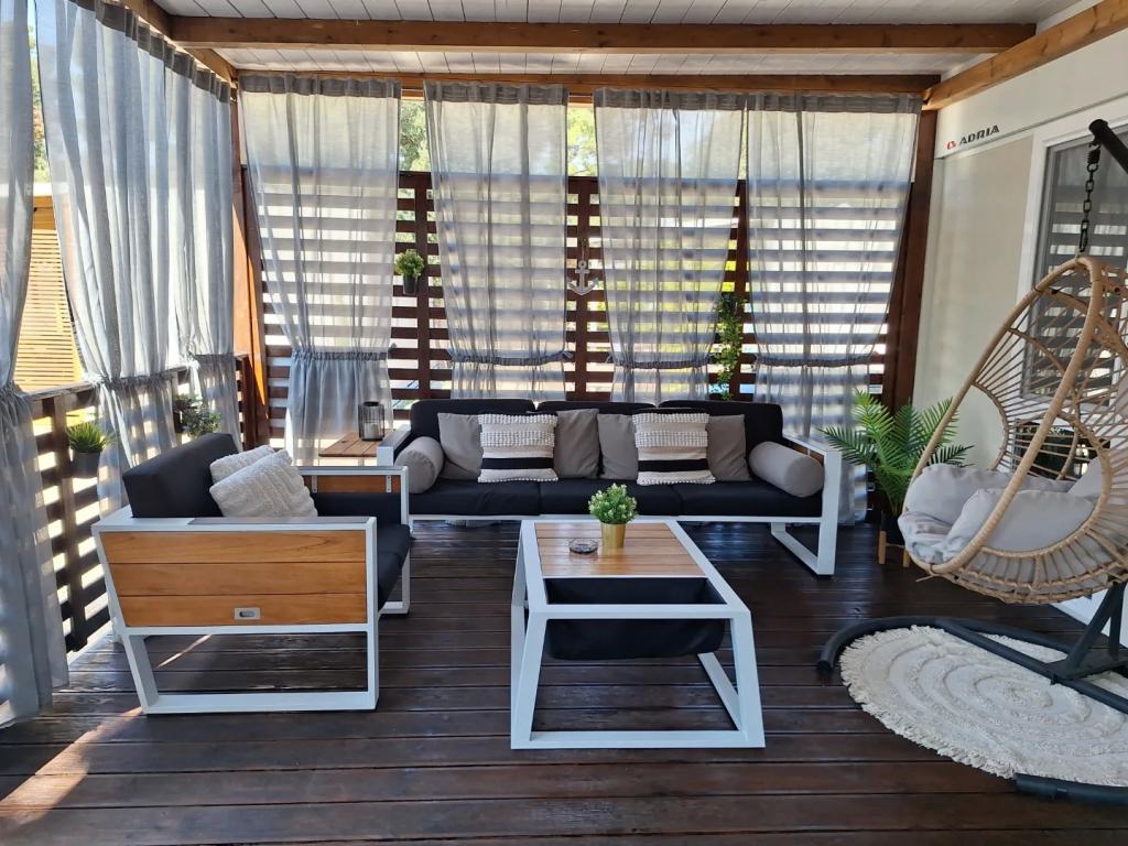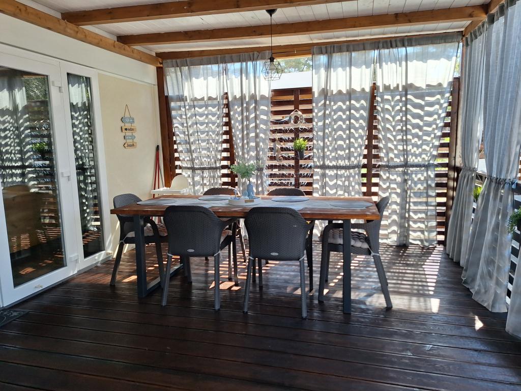 Casa conține Blue Lagoon (Camping Park Soline, Biograd na moru) 2 dormitoare, Bucătărie (complet utilată, fierbător, uscător de păr cu aer cald, blender, mixer manual, vase complete și echipamente pentru grătar, cuptor cu microunde cu opțiunea de coacere mai lungă, prăjitor de pâine, aparat de cafea Dolce Gusto...), Sufragerie și living, Baie, Terasă acoperită complet utilată 32m2, Pachet pentru bebeluși (scaun înalt și pătuț de călătorie pentru copii până la 3 ani, Fier și masă de călcat, Uscător de păr, Prosoape și lenjerie, TV SAT WIFI Aer condiționat Loc de parcare lângă casă Grătar pe gaz Duș solar... Rulotă Blue Wave (Oaza Lučica, Drage) 2 dormitoare 2 băi (uscător de păr 2x) Sufragerie și living Bucătărie complet utilată (cuptor cu microunde, prăjitor de pâine, aragaz, blender, aparat de cafea, vase complete și tacâmuri...) Terasă acoperită complet utilată 34m2 Grătar pe gaz Duș solar Loc de parcare lângă casă TV SAT WIFI Aer condiționat Pachet pentru bebeluși (scaun înalt și pătuț de călătorie pentru copii până la 3 ani)