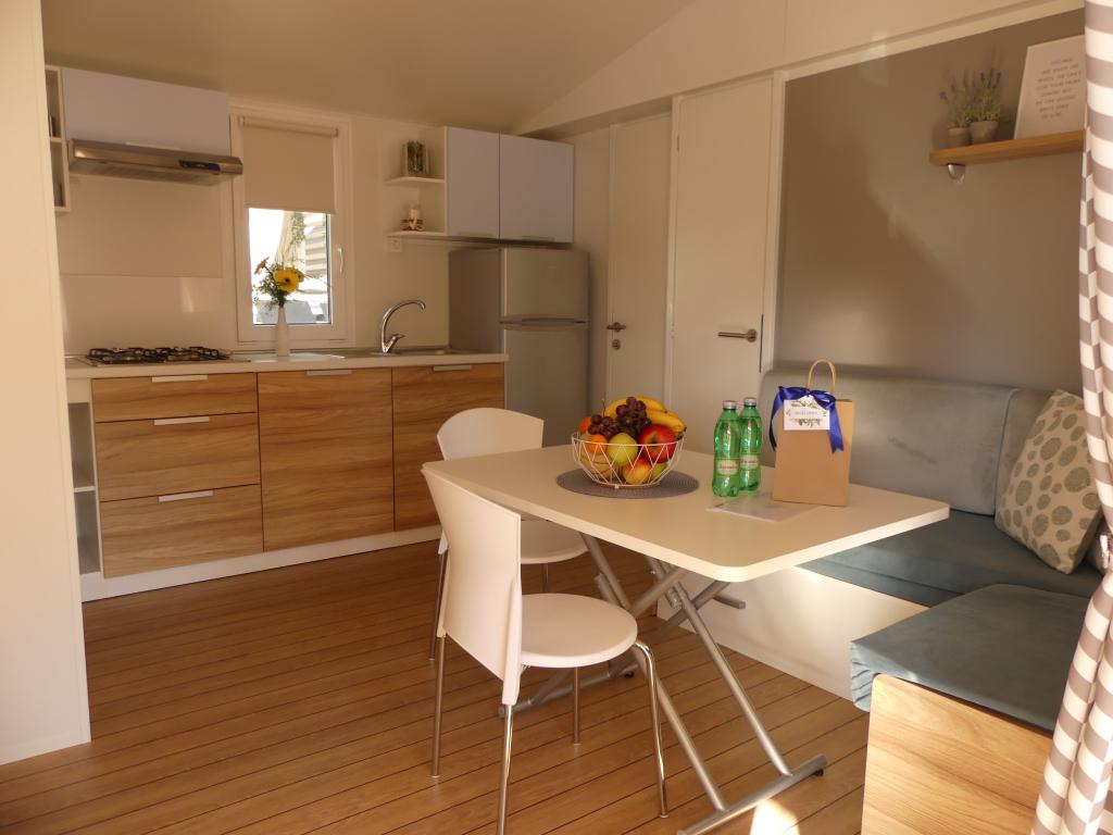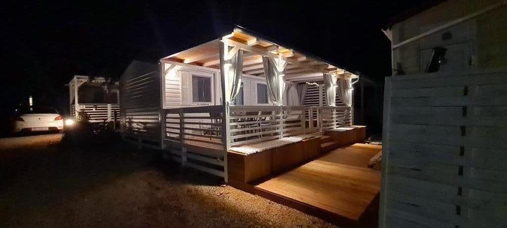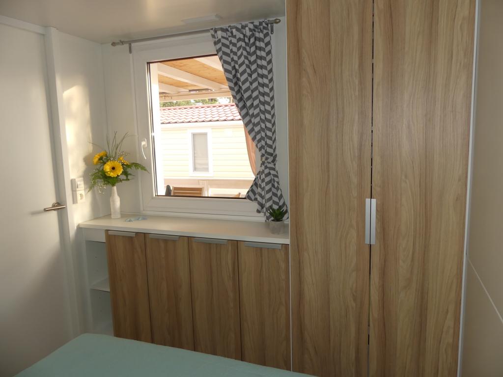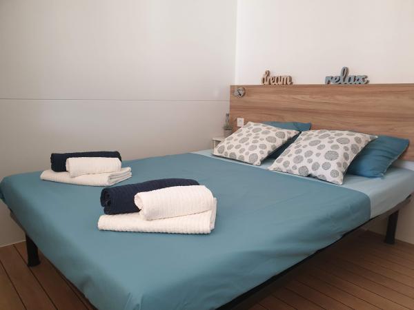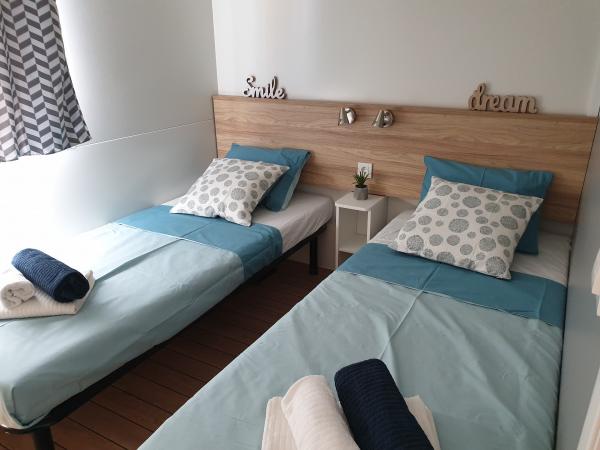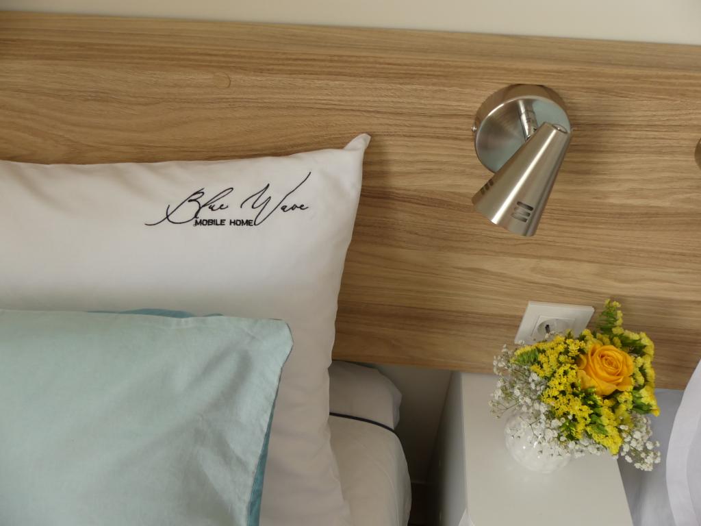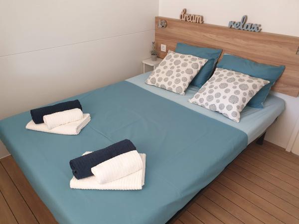 Blue Wave este o casă mobilă nouă, modernă și complet utilată, cu două dormitoare (unul cu pat dublu și celălalt cu două paturi de o persoană), dulapuri, două băi cu duș, un living cu un pat extensibil suplimentar (135x180cm), o bucătărie complet utilată, cu aer condiționat și o terasă mare. Terasa este dotată cu masă, grătar electric și două șezlonguri confortabile. Accesul la internet wireless este disponibil gratuit în întreaga proprietate. Blue Wave este situat în pădurea liniştită de pini de la campingul Soline din Biograd na moru. Facilitatea se află la 2-3 minute de mers pe jos de plajă, cafenea și restaurant. Tabăra are mașini de spălat și uscătoare, bancomat, magazin, brutărie, loc de joacă pentru copii și tot ce ai nevoie pentru o ședere plăcută! În imediata apropiere a taberei, la aproximativ 10 minute de mers pe jos de-a lungul promenadei recent renovate de-a lungul mării, se află centrul orașului Biograd, care are diverse facilități, precum și portul de agrement Kornati. Dalmaland Fun & Water Park nu este departe de distracție.
