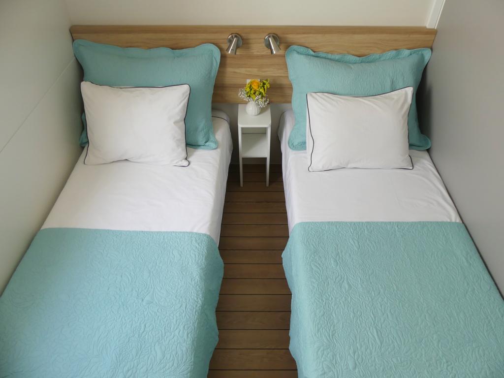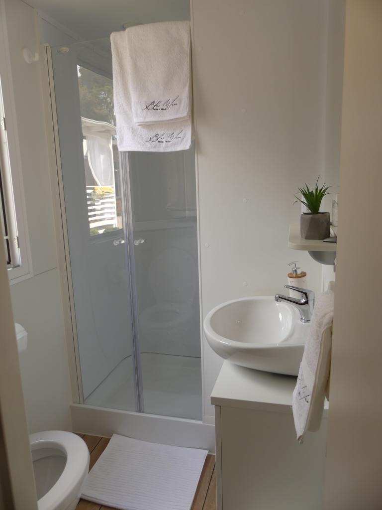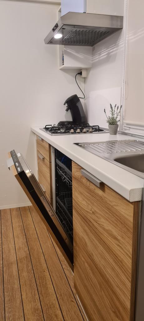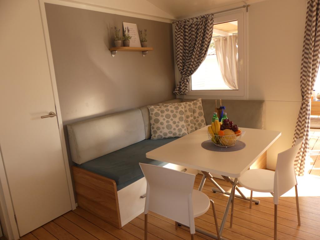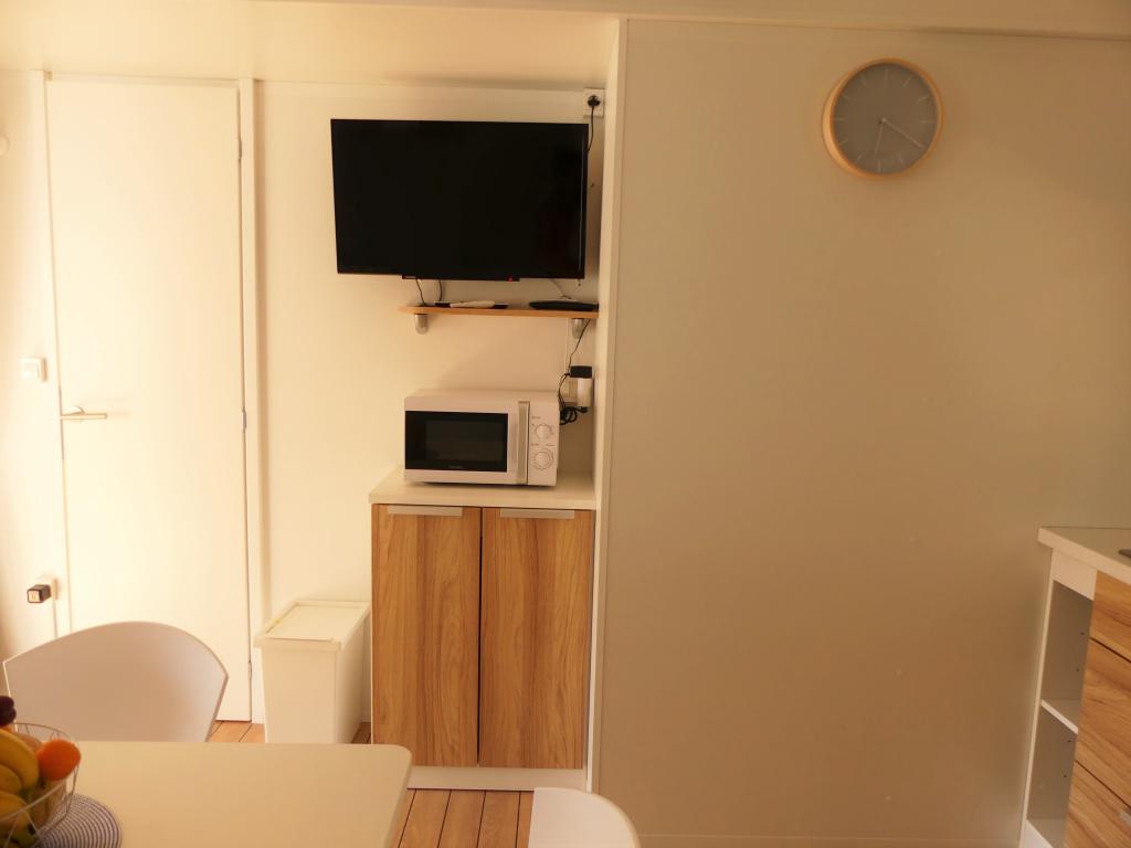Blue Wave este o casă mobilă nouă, modernă și complet utilată, cu două dormitoare (unul cu pat dublu și celălalt cu două paturi de o persoană), dulapuri, două băi cu duș, un living cu un pat extensibil suplimentar (135x180cm), o bucătărie complet utilată, cu aer condiționat și o terasă mare. Terasa este dotată cu masă, grătar electric și două șezlonguri confortabile. Accesul la internet wireless este disponibil gratuit în întreaga proprietate. Blue Wave este situat în pădurea liniştită de pini de la campingul Soline din Biograd na moru. Facilitatea se află la 2-3 minute de mers pe jos de plajă, cafenea și restaurant. Tabăra are mașini de spălat și uscătoare, bancomat, magazin, brutărie, loc de joacă pentru copii și tot ce ai nevoie pentru o ședere plăcută! În imediata apropiere a taberei, la aproximativ 10 minute de mers pe jos de-a lungul promenadei recent renovate de-a lungul mării, se află centrul orașului Biograd, care are diverse facilități, precum și portul de agrement Kornati. Dalmaland Fun & Water Park nu este departe de distracție.
