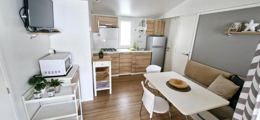 Mobile Home Korina se află în Biograd na Moru, la 200 de metri de plaja Soline și la 750 de metri de plaja Dražica. Oaspeții beneficiază de un loc de joacă pentru copii și de o recepție deschisă nonstop. Această proprietate de pe malul mării oferă acces la o terasă, parcare privată gratuită și WiFi gratuit. Apartamentul are 2 dormitoare (unul cu pat dublu și celălalt cu 3 paturi), un living cu o canapea extensibilă și un pătuț, dacă este necesar. Un TV cu ecran plat cu canale prin satelit, o chicinetă utilată cu frigider și mașină de spălat vase și 2 băi cu duș și duș exterior. Prosoapele și lenjeria de pat sunt disponibile în această proprietate. Oaspeții apartamentului pot folosi facilitățile de grătar. Printre punctele de interes populare din apropierea unității de cazare se numără plaja Lumbrak, Muzeul Patrimoniului Biograd na Moru și Marina Kornati, precum și parcul acvatic Dalmaland. Cel mai apropiat aeroport este Aeroportul Zadar, situat la 20 km de Mobile Home Korina.