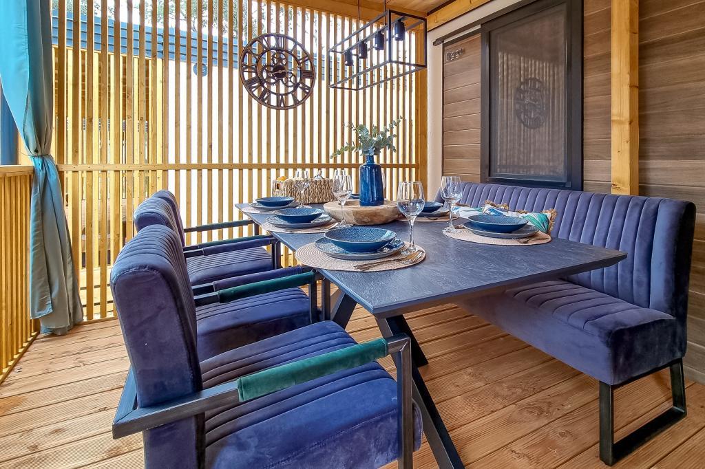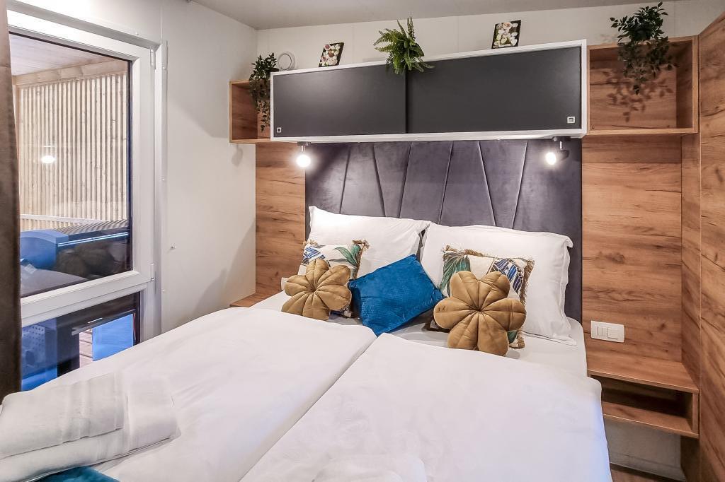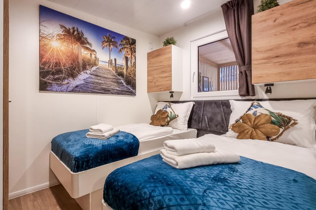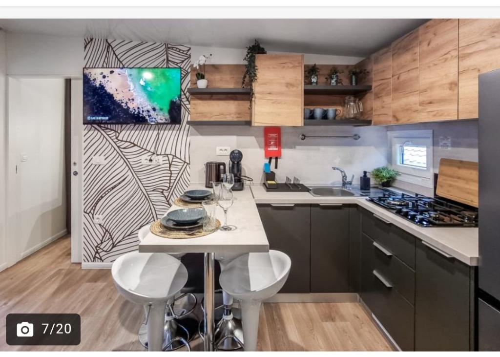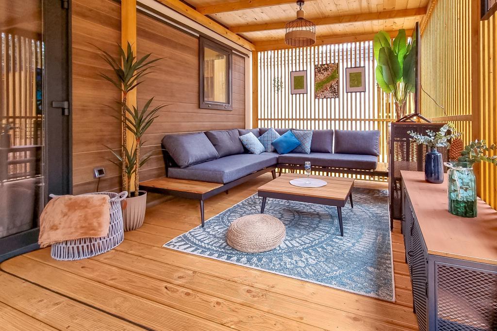Casa noastră mobilă modern utilată oferă cazare confortabilă pentru până la 6 persoane, cu 2 dormitoare spațioase, un living cu o canapea extensibilă și 2 băi. Bucurați-vă de terasa mare acoperită, dotată cu o zonă de luat masa și un living exterior, ideal pentru întâlniri lungi de seară. Aici vă puteți bucura de darts sau vă puteți relaxa în fața televizorului mare, în timp ce faceți grătar pe grătarul nostru mare pe gaz și pe aragazul exterior. Terasa acoperită este înconjurată de pini și de o briză ușoară de la mare. Pe o parte a terasei există o zonă de luat masa spațioasă, dotată cu o canapea confortabilă și fotolii și mai confortabile, în timp ce pe cealaltă parte, livingul nostru exterior oferă o zonă de relaxare confortabilă, unde nu numai că vă puteți relaxa, ci și vă puteți bucura de emisiunile TV preferate pe televizorul imens cu canale TV prin satelit disponibile, Netflix și HBO GO. Casa este situată la 3 minute de frumoasa plajă.