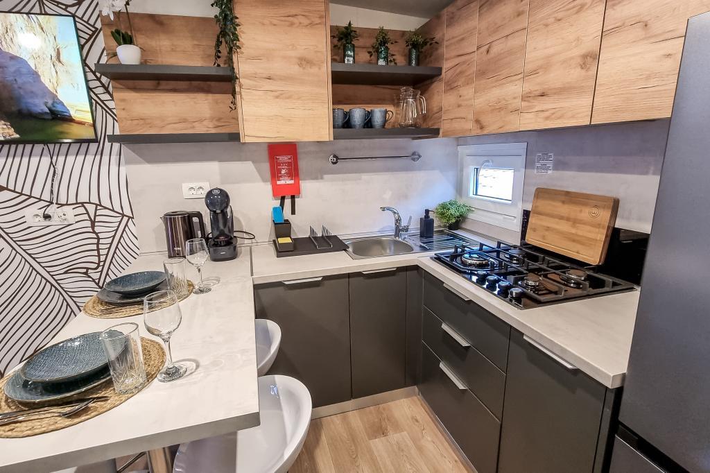 ️Terasă mare acoperită cu zonă de luat masa și living în aer liber cu televizor mare și darts ️Grătar mare pe gaz + aragaz ️Bucătărie complet utilată (frigider, cuptor cu microunde, aragaz, fierbător, aparat de cafea, mașină de spălat vase, prăjitor de pâine, toate vesela necesară) ️Living cu televizor mare ️WI-FI gratuit, TV prin satelit, aer condiționat ️Lenjerie de pat și prosoape confortabile din damasc ️Uscător de păr, fier de călcat ️Scaun înalt pentru copii ️1 loc de parcare, al doilea loc de parcare contra cost. Campingul de rulote Pearl House este situat la doar 3 minute de mers pe jos de plaja cu nisip și pietriș și la 10 minute de mers pe jos de centrul orașului Biograd. Campingul și împrejurimile sale au tot ce ai nevoie pentru o vacanță relaxantă - de la magazine și restaurante la terenuri de sport și locuri de joacă pentru copii. Iar cea mai mare plăcere este să te bucuri de soare și mare, precum și de posibilitatea de a merge în excursii în parcuri naționale atractive, cum ar fi Parcul Național Krka, Parcul Național Kornati, Parcul Național Paklenica sau orașe istorice precum Zadar și Šibenik.