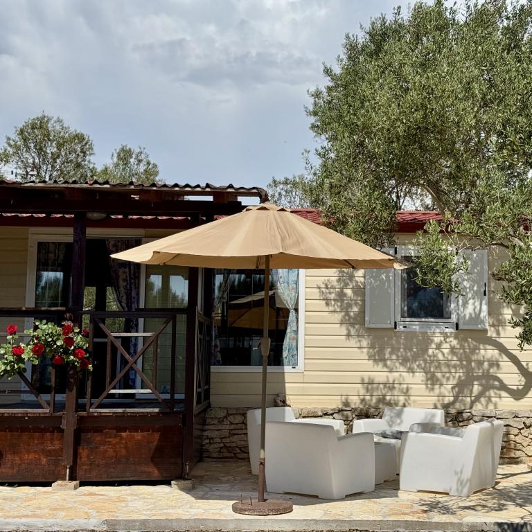 Casa mobila este situata in cadrul taberei Bakija, la 40m de mare, cu acces usor la plaja Nu departe de plaja Soline, la 2-3 minute de mers pe jos, la 1 minut de mers pe jos pana la piata Studenac si la 7-8 minute. picior spre centru Complet utilat cu gradina, bucatarie, living confortabil. Propriul grătar în aer liber în cabană și propriul duș în aer liber. Facilitatea este pentru 4 persoane, 2 camere, 2 bai, dintre care una este o baie cu cada cu masaj. O terasă spațioasă, perfectă pentru un sejur plăcut cu vedere la mare și apusuri frumoase.