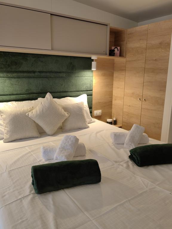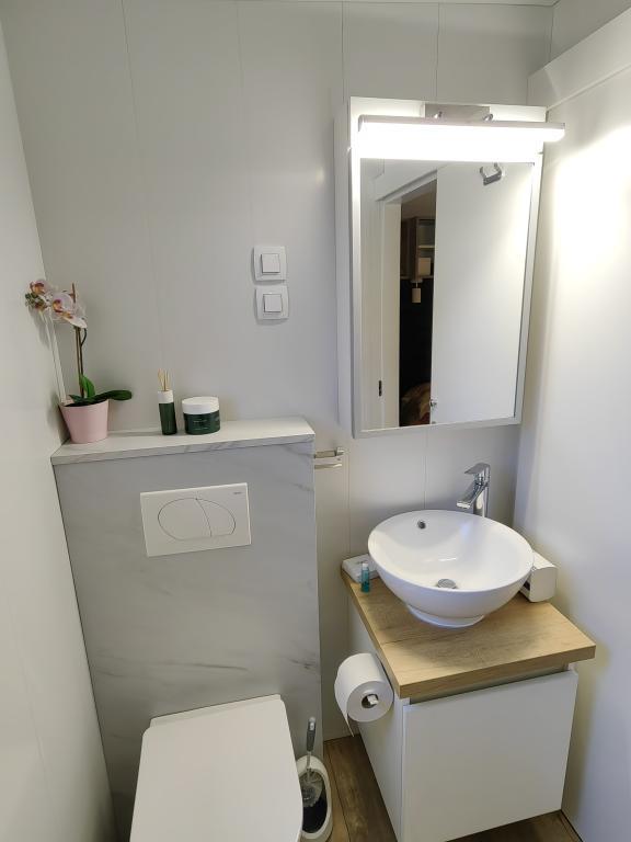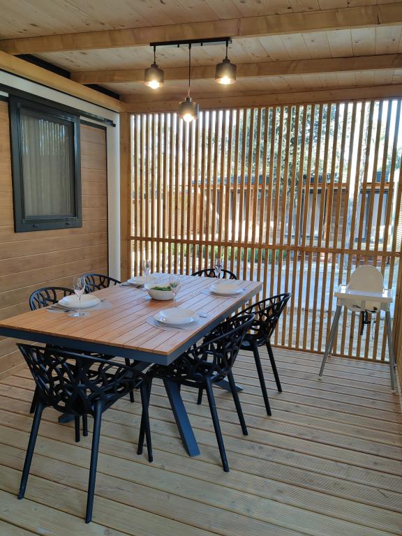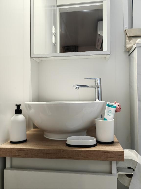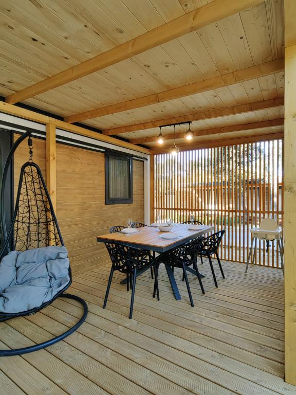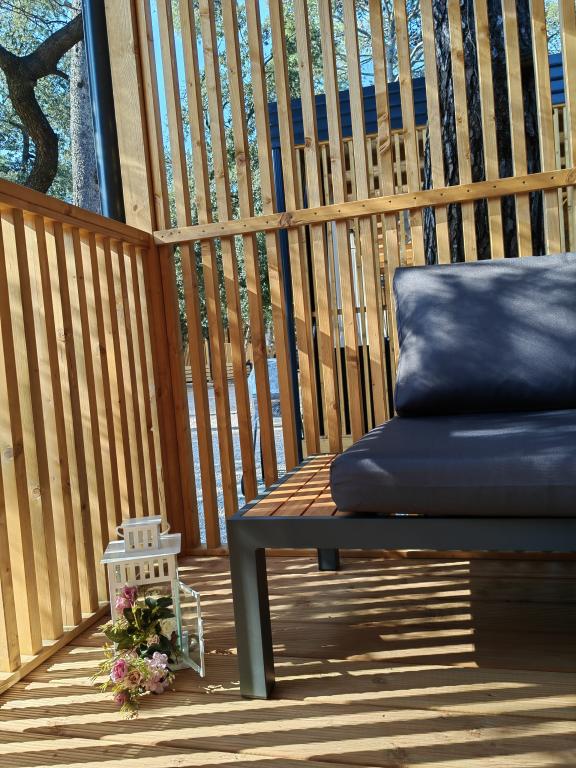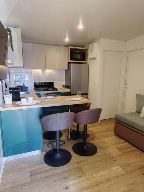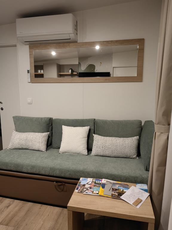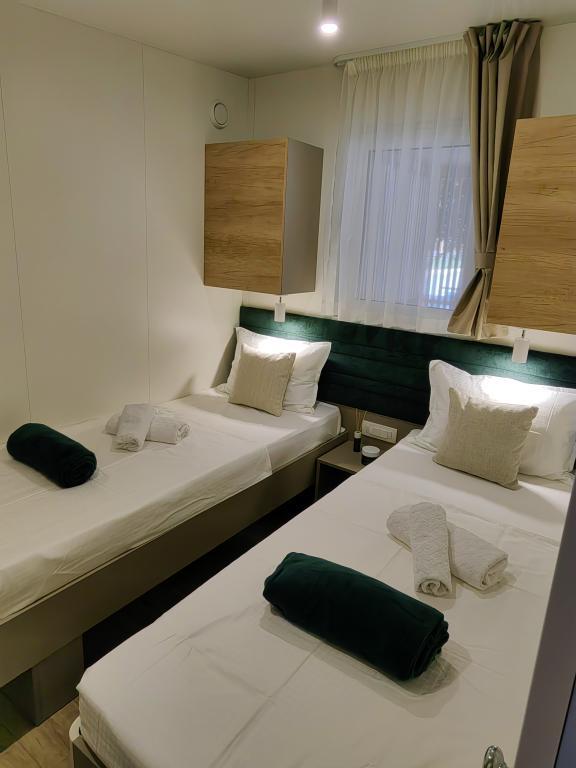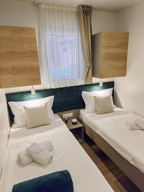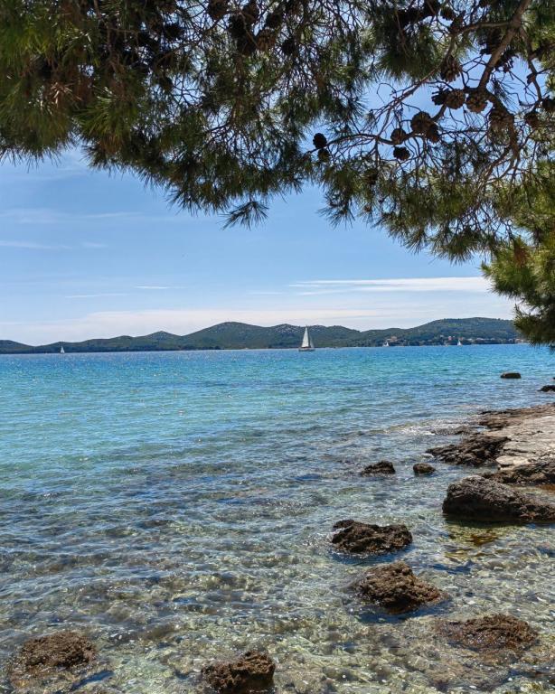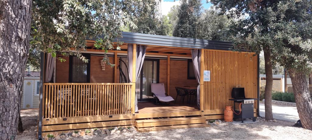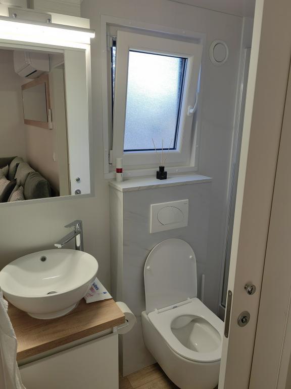 TONKA este o casă mobilă complet utilată cu două camere [una cu pat dublu și cealaltă cu trei paturi separate], dulapuri, baie cu duș, living cu pat extensibil suplimentar [130 x 180 cm], bucătărie complet utilată. , aer condiționat, și o terasă mare care este dotată cu un grătar cu gaz și o masă, mobilier de terasă cu o măsuță, două șezlonguri confortabile și un șezlong suspendat cu o pernă, un leagăn suspendat, acces la internet wireless disponibil în întreaga zonă gratuit. Casa mobilă este situată în liniștea pădurii de pini din tabăra parcului Soline din Biograd na moru. TONKA se află la 2-3 minute de mers pe jos de restaurant, plajă și cafenea. În tabără există mașini de spălat și uscat rufe, un magazin, un bancomat, o brutărie, un loc de joacă pentru copii și tot ce ai nevoie pentru un sejur plăcut.În imediata apropiere a taberei se află o promenadă la malul mării, centrul de Biograd, portul de agrement Kornati și toate acele cc 10 minute de mers pe jos...